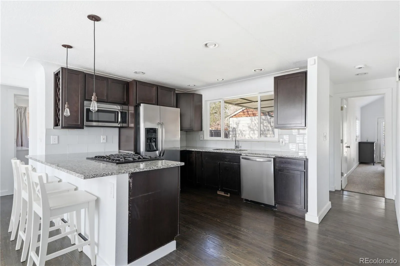 www.2949Krameria.com.Nestled in the heart of Park Hill, this charming and thoughtfully updated home offers the perfect blend of classic character and modern convenience. Located a stone’s throw from the Denver Zoo, the Museum of Nature and Science in City Park, and the vibrant shops and restaurants that define the neighborhood, the location is truly unbeatable. Inside, the home offers a smart, open-concept floor plan with hardwood flooring that flows effortlessly from the inviting living room to the kitchen and dining room. The updated kitchen is a chef’s dream, featuring sleek stainless steel appliances, bar seating, and ample counter space for both meal prep and casual gathering. The home’s layout includes three remarkably spacious bedrooms and two beautifully updated bathrooms. The standout feature is the dedicated primary suite, which serves as a true private retreat with soaring vaulted ceilings and double doors that open directly onto the back patio. This seamless indoor-outdoor connection continues throughout the property, which is fully fenced in both the front and back. With expansive spaces for entertaining in both yards and the added convenience and storage of a newer two-car garage, this home is an ideal sanctuary offering the very best of Denver living.