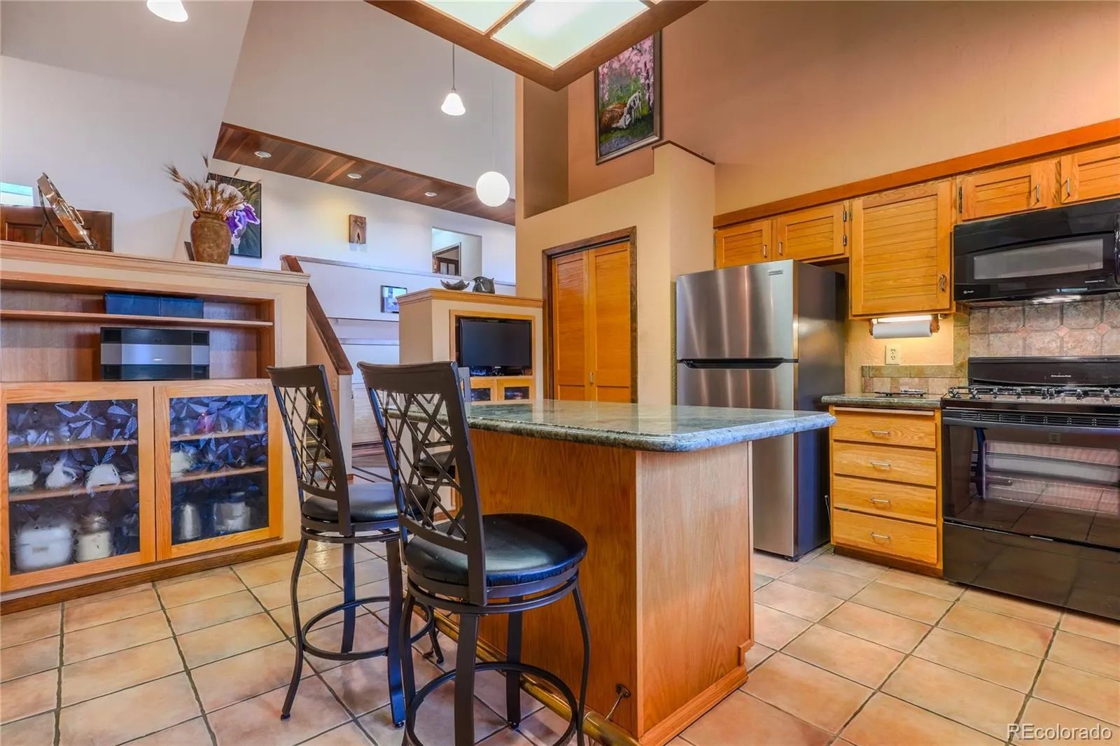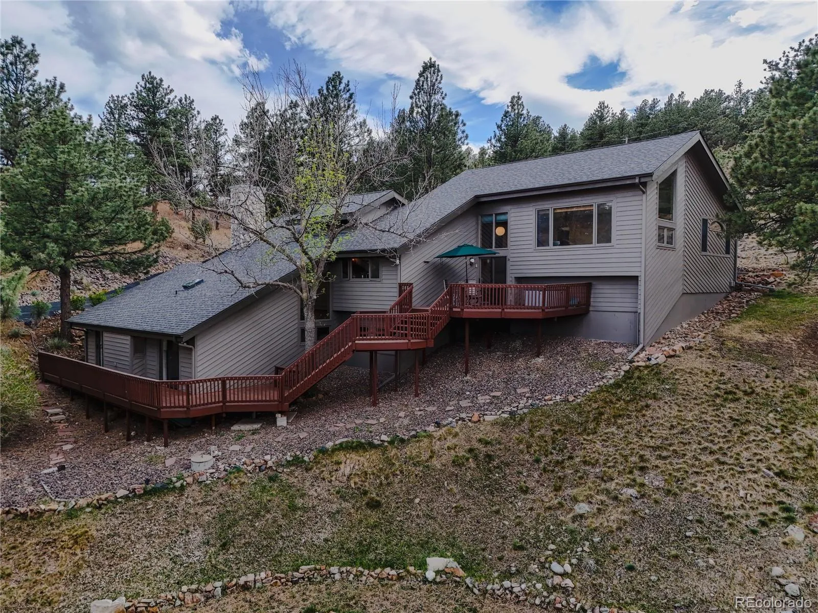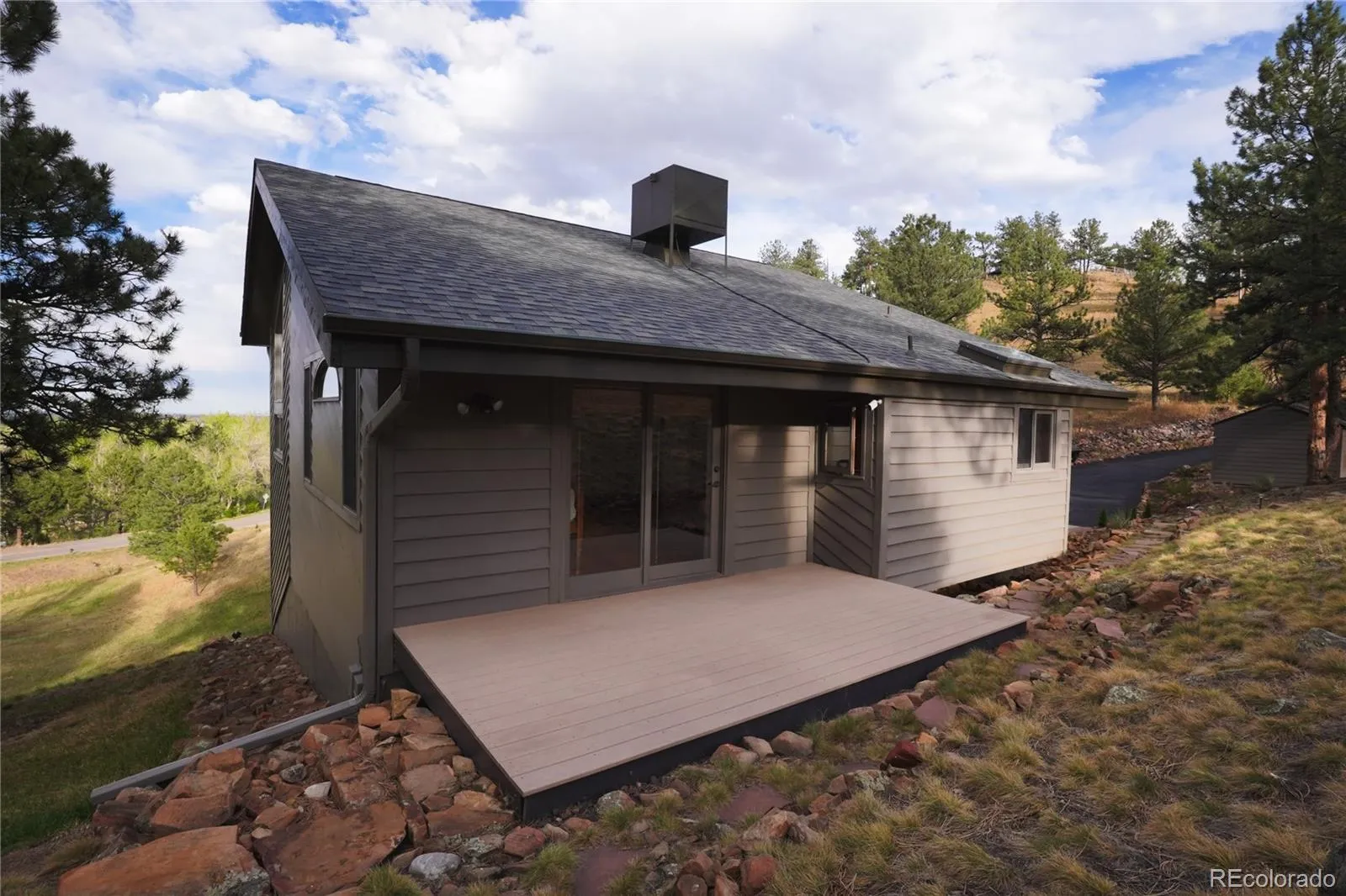 The home is warm, inviting, and full of mountain character, with comfortable living spaces designed for slowing down and taking in the setting. Stone fireplace detail, granite kitchen counters, a KitchenAid gas range, updated skylights, and a primary bath with Jacuzzi tub add charm and function, while the expansive three-level rear deck is a standout feature. With multiple outdoor living areas that follow the natural slope of the property, the deck beautifully extends the home into its mountain setting and creates inviting spaces for morning coffee, evening wine, gardening, wildlife watching, entertaining, and easy Colorado living.