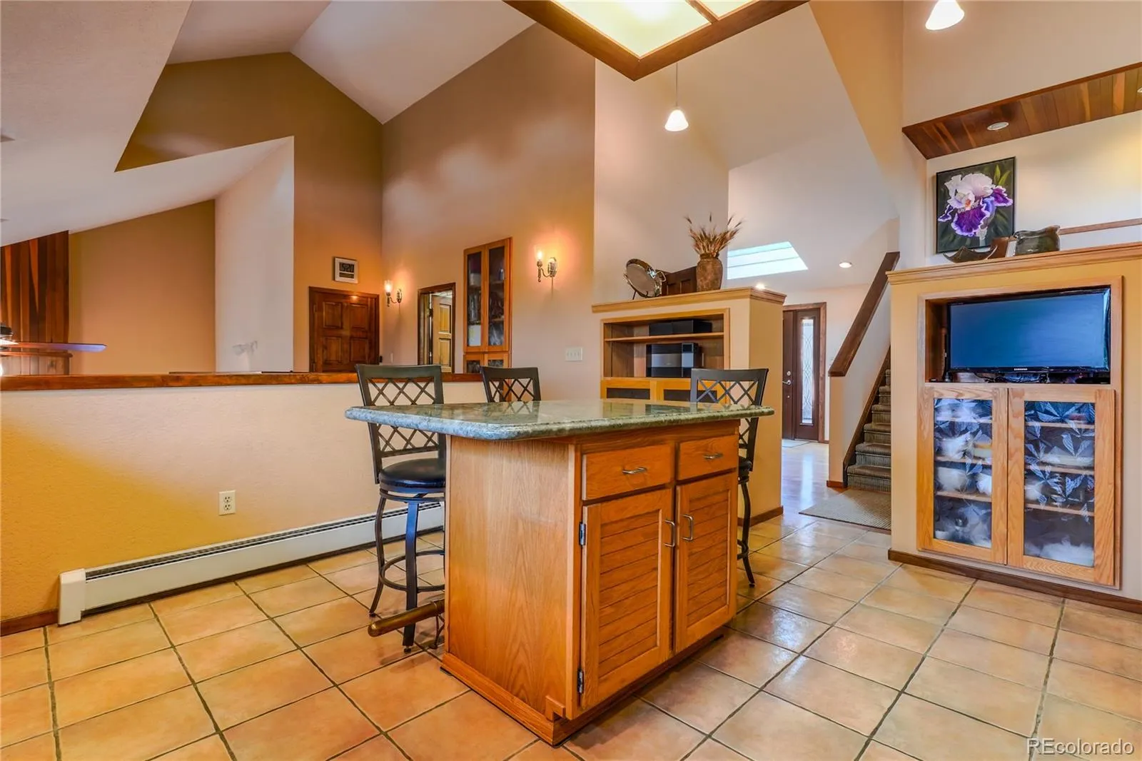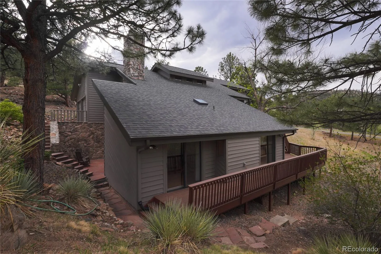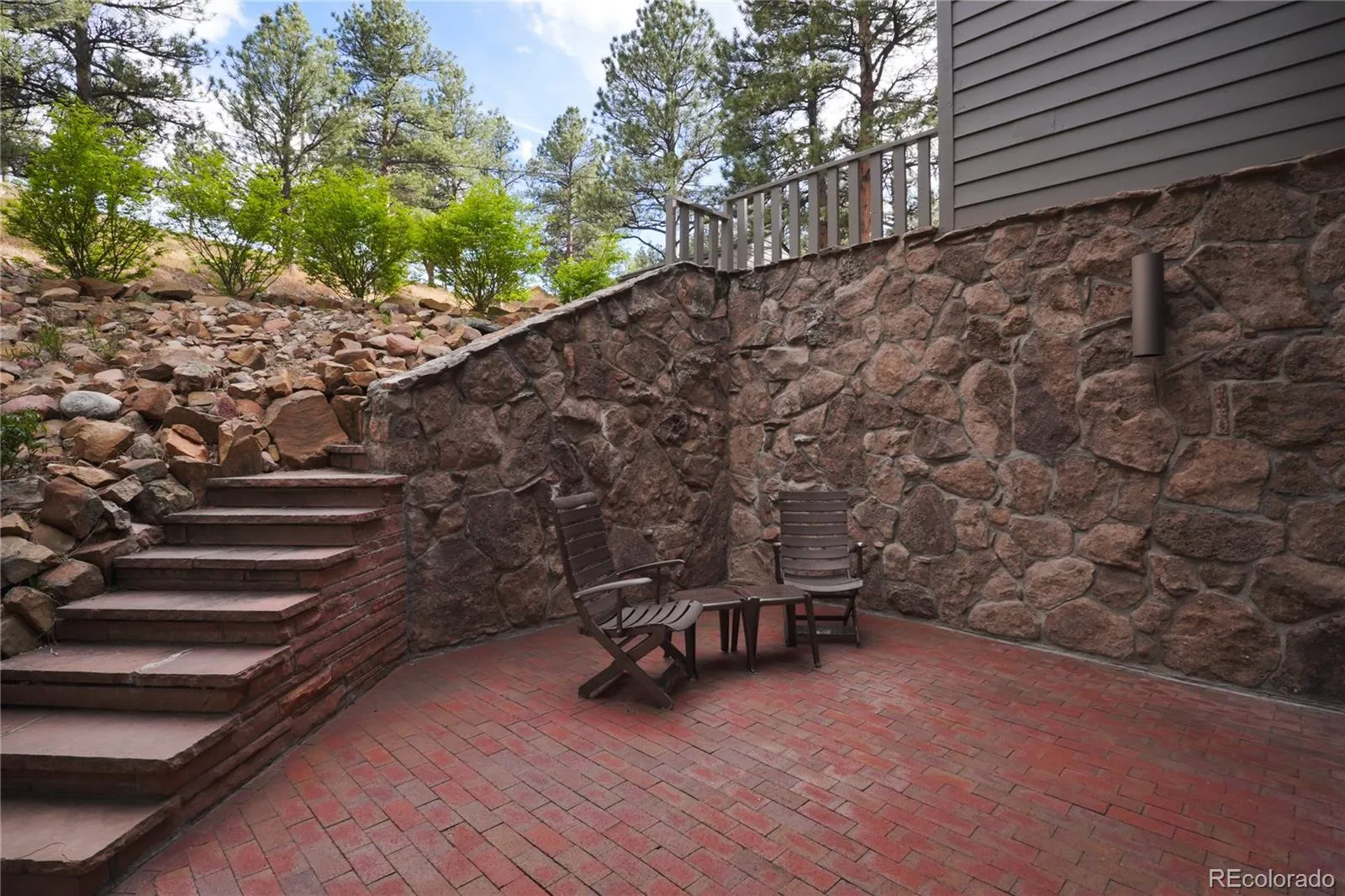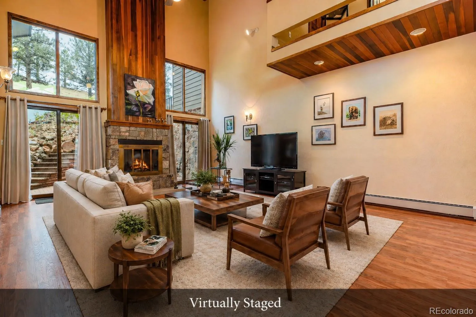 The home is warm, inviting, and full of mountain character, with comfortable living spaces designed for slowing down and taking in the setting. Stone fireplace detail, granite kitchen counters, a KitchenAid gas range, updated skylights, and a primary bath with Jacuzzi tub add charm and function, while the expansive three-level rear deck is a standout feature. With multiple outdoor living areas that follow the natural slope of the property, the deck beautifully extends the home into its mountain setting and creates inviting spaces for morning coffee, evening wine, gardening, wildlife watching, entertaining, and easy Colorado living.