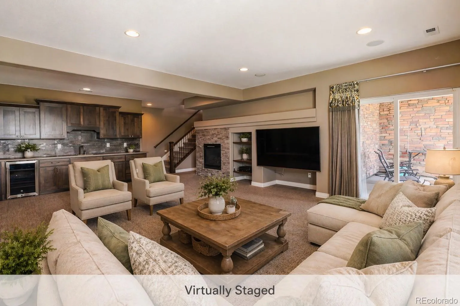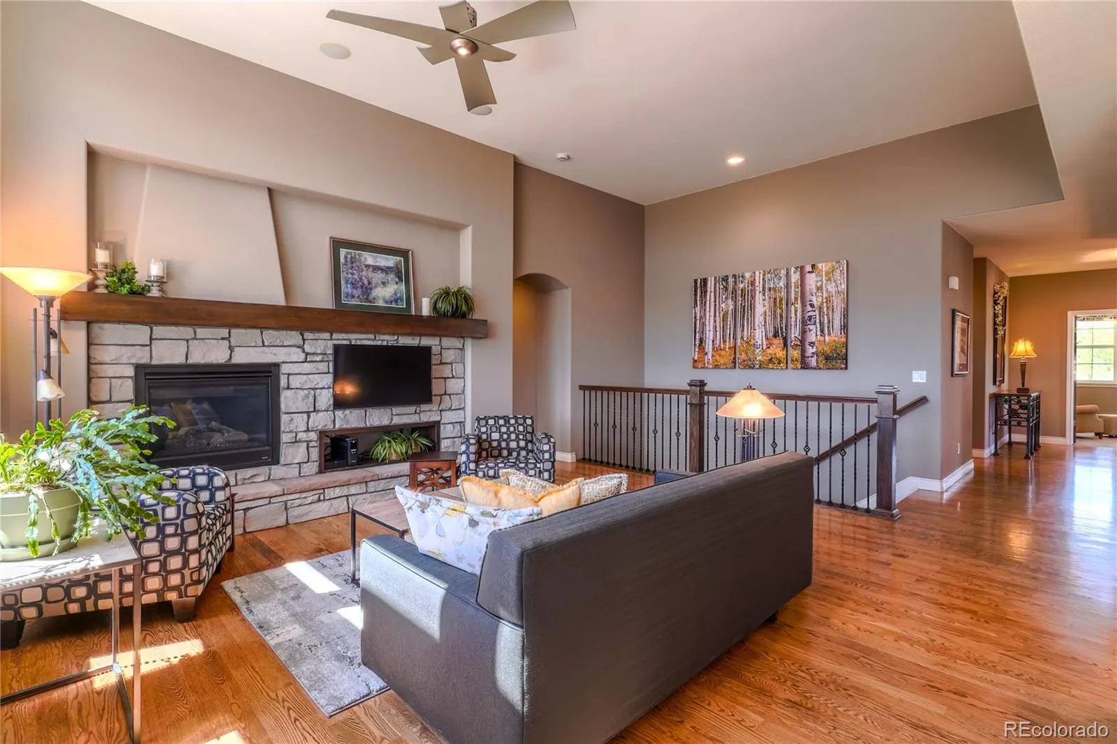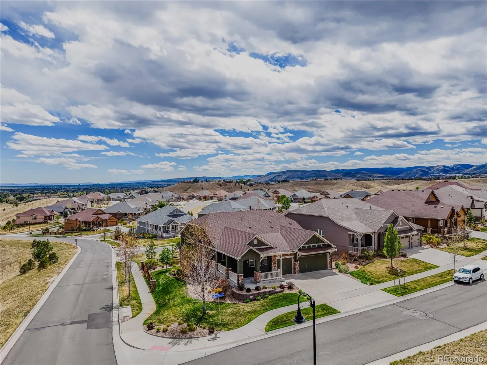 Experience elevated Colorado living in this exceptional former Remington Homes model in Leyden Rock, where thoughtful design, extensive upgrades, and sweeping city views create a home that feels both refined and effortless. Extra-wide windows in the great room and kitchen nook frame a remarkable backdrop, while the stone-and-stucco exterior, coffered ceilings, upgraded alder cabinetry by Tharpe Cabinetry, and in-wall speakers add warmth, polish, and architectural presence throughout. Dual gas fireplaces with blower upgrades bring comfort to both levels, and the walk-out lower level offers extra-height ceilings, abundant natural light, a wide staircase, a media room with 80-inch TV, wet bar, and beverage fridge for easy entertaining.