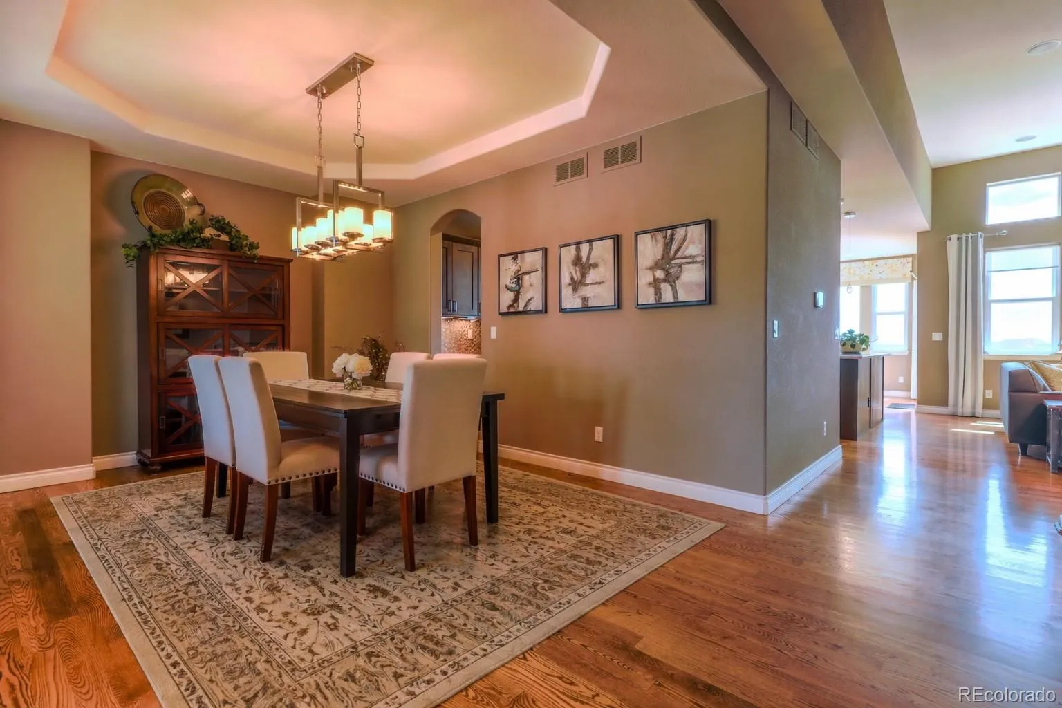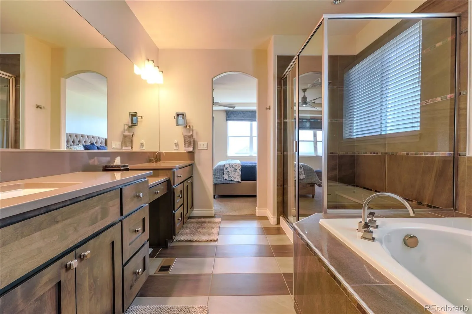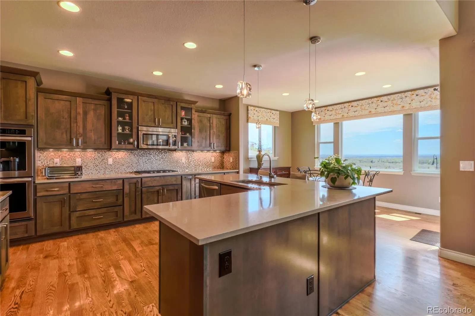 Experience elevated Colorado living in this exceptional former Remington Homes model in Leyden Rock, where thoughtful design, extensive upgrades, and sweeping city views create a home that feels both refined and effortless. Extra-wide windows in the great room and kitchen nook frame a remarkable backdrop, while the stone-and-stucco exterior, coffered ceilings, upgraded alder cabinetry by Tharpe Cabinetry, and in-wall speakers add warmth, polish, and architectural presence throughout. Dual gas fireplaces with blower upgrades bring comfort to both levels, and the walk-out lower level offers extra-height ceilings, abundant natural light, a wide staircase, a media room with 80-inch TV, wet bar, and beverage fridge for easy entertaining.