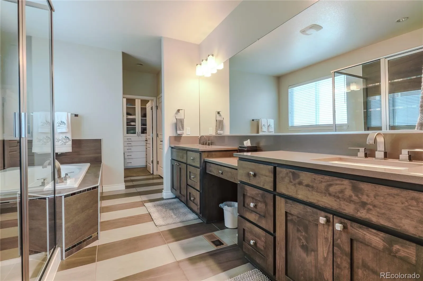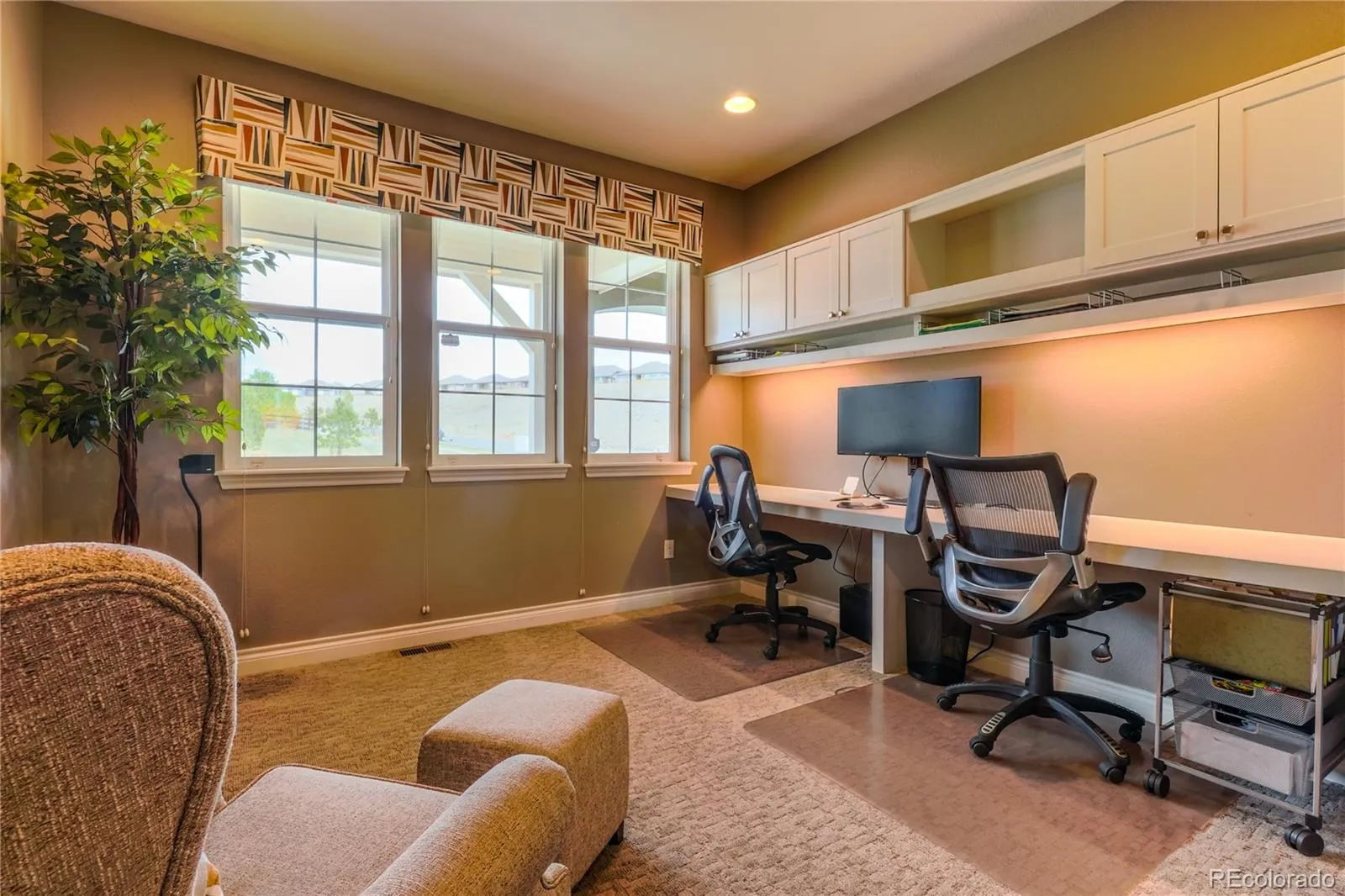 Owner enhancements further elevate the home’s appeal, including custom closets and dressers by The Closet Factory, a custom partner’s desk with CAT-5 in the study, Lutron smart switches and dimmers, UV window tinting in the dining room, great room, and primary bedroom, a retractable deck awning, under-deck dry ceiling for year-round covered enjoyment, replacement higher-capacity Carrier HVAC in 2017, 220 electric in the third garage bay, hail-resistant roof in 2022, and exterior paint in 2022. The front entry ramp and comfort-height powder room add convenience without compromising style.