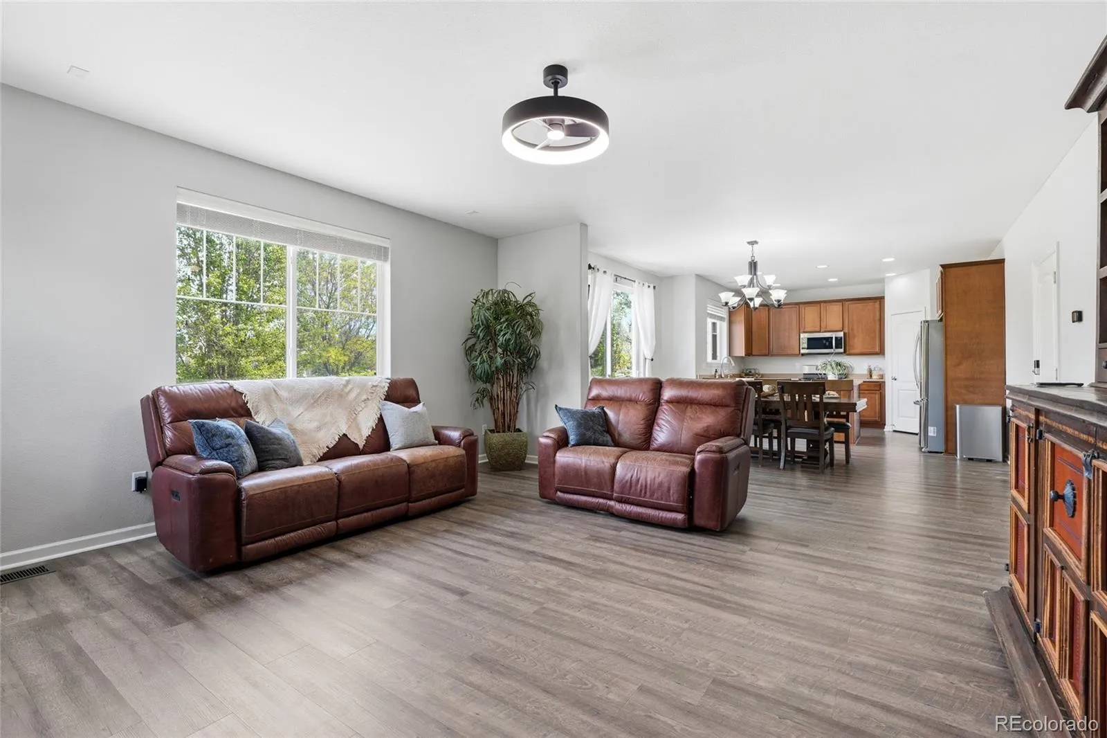 Discover the perfect harmony of space, style, and suburban tranquility at 11232 Columbine Street, an impressive residence perched on a sprawling 0.23-acre corner lot in the heart of Firestone. This beautifully maintained home offers 2,665 finished square feet of thoughtfully designed living space, delivering the functionality and location discerning buyers demand. The sun-drenched main level welcomes you with luxury vinyl plank flooring and a seamless flow anchored by an open living room featuring a cozy gas fireplace and an abundance of natural light. A dedicated den with custom built-in features offers the ultimate quiet workspace, while the eat-in kitchen stands ready for any occasion with a convenient walk-in pantry. Upstairs, all four spacious bedrooms are privately situated to ensure a peaceful separation of space. The expansive primary retreat serves as a true sanctuary, complete with a large walk-in closet and a five-piece en suite bath featuring a soaking tub and walk-in shower. An upper-level loft provides a secondary lounge or play area, and the laundry room is conveniently located near the bedrooms for maximum efficiency. For those seeking even more room to grow, the 1,117-square-foot full unfinished basement stands ready for your vision, whether it be a home gym, theater, or guest suite. Outside, enjoy a fully fenced backyard and a charming front porch ideal for Colorado’s sunny days. Nestled in the acclaimed St. Vrain Valley School District with effortless access to I-25, you are perfectly positioned for a smooth commute to Denver, Boulder, or Fort Collins. At $610,000, this rare Mountain Shadows gem offers a lifestyle of comfort and convenience.