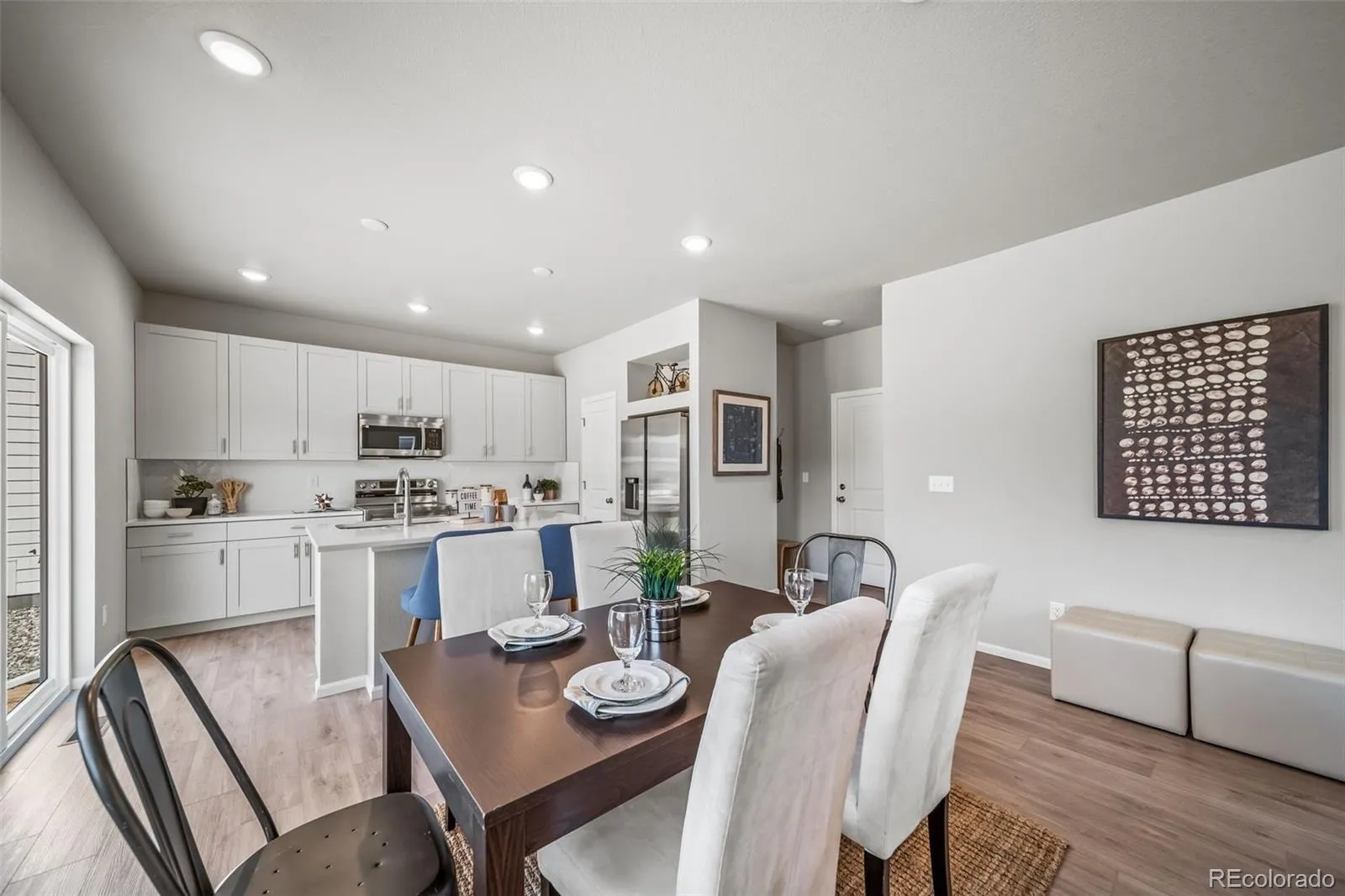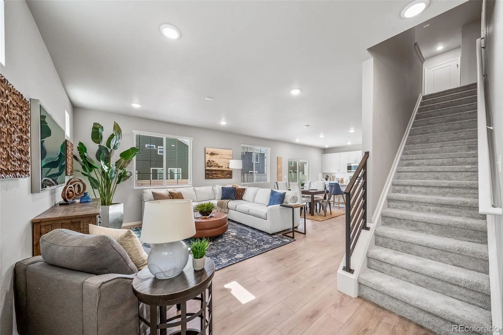 This home has plenty of curb appeal featuring a multi-textural exterior, front porch, and 5’ privacy fencing. The main level is bright with oversized windows, 9’ ceilings, and an expansive “heart of the home” great room. Enjoy designer LVP flooring, Shaw carpeting, and Sherwin-Williams paint throughout. The kitchen is complete with a dining island, designer countertops, stainless-steel sink, and large pantry. The spacious primary suite offers a large walk-in closet, double vanity sink, and a tiled spa shower. The 2nd floor also features a laundry room and 2 additional bedrooms each with walk-in closets. Set in the desirable location of Green Valley Ranch, enjoy life in this amenity-rich community with acres of parks and trails, a championship golf course, and top-rated schools. Actual home may vary from artist’s renderings or photography shown.