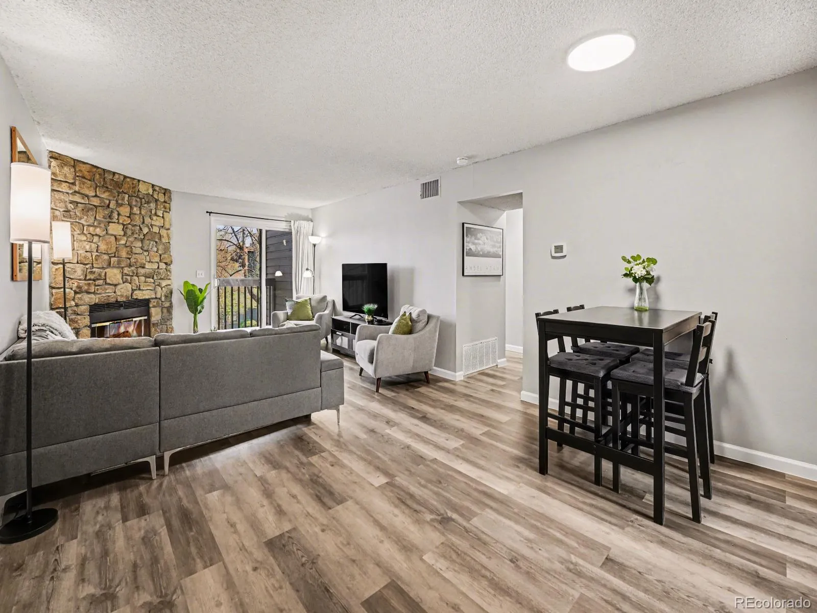 Welcome to this beautifully updated, move-in ready condo in the popular Telluride West community of Lakewood plus low HOA fee! This well maintained home features an open floor plan with seamless flow between the living, dining, and kitchen areas, perfect for both everyday living and entertaining. A stunning and cozy floor-to-ceiling stone fireplace anchors the space, while new flooring, new upgraded baseboards and window coverings add a fresh, modern feel. The kitchen has been thoughtfully updated with new countertops and newer appliances. The large Primary Bedroom easily accommodates a king-size bed and offers an En-Suite Bathroom for privacy. Both bedrooms feature two closets each, offering exceptional storage. Other upgrades include a new dishwasher and hood vent, new cabinet hardware, freshly painted doors with new hinges and hardware, and newer hot water heater (4 yrs!) plus a private deck with bike hooks and storage closet! Step outside to enjoy nearby outdoor space at the newly renovated Wright Park (around the corner to the north), Green Mountain’s Hayden Park trailhead just down the street (2nd Ave), Green Mountain Rec Center or take advantage of the community’s two pools and two hot tubs, along with grassy areas, gazebos and grills! This unit also includes two designated parking spaces, one conveniently right outside your front door. Located just minutes from the Red Rocks Lightrail Station and 6th Ave, commuting is a breeze. You’re also conveniently close to the vibrant Union corridor and Colorado Mills Mall with an abundance of dining, shopping, and medical facilities nearby. Enjoy quick access to Golden, just minutes away, and reach either downtown Denver or the mountains in minutes.Whether you’re looking for a primary residence, a low-maintenance lifestyle, or an investment opportunity, this condo offers the perfect blend of comfort, convenience, and Colorado living. Downpayment and Closing Cost grants up to $17,500 are available to eligible Buyers!