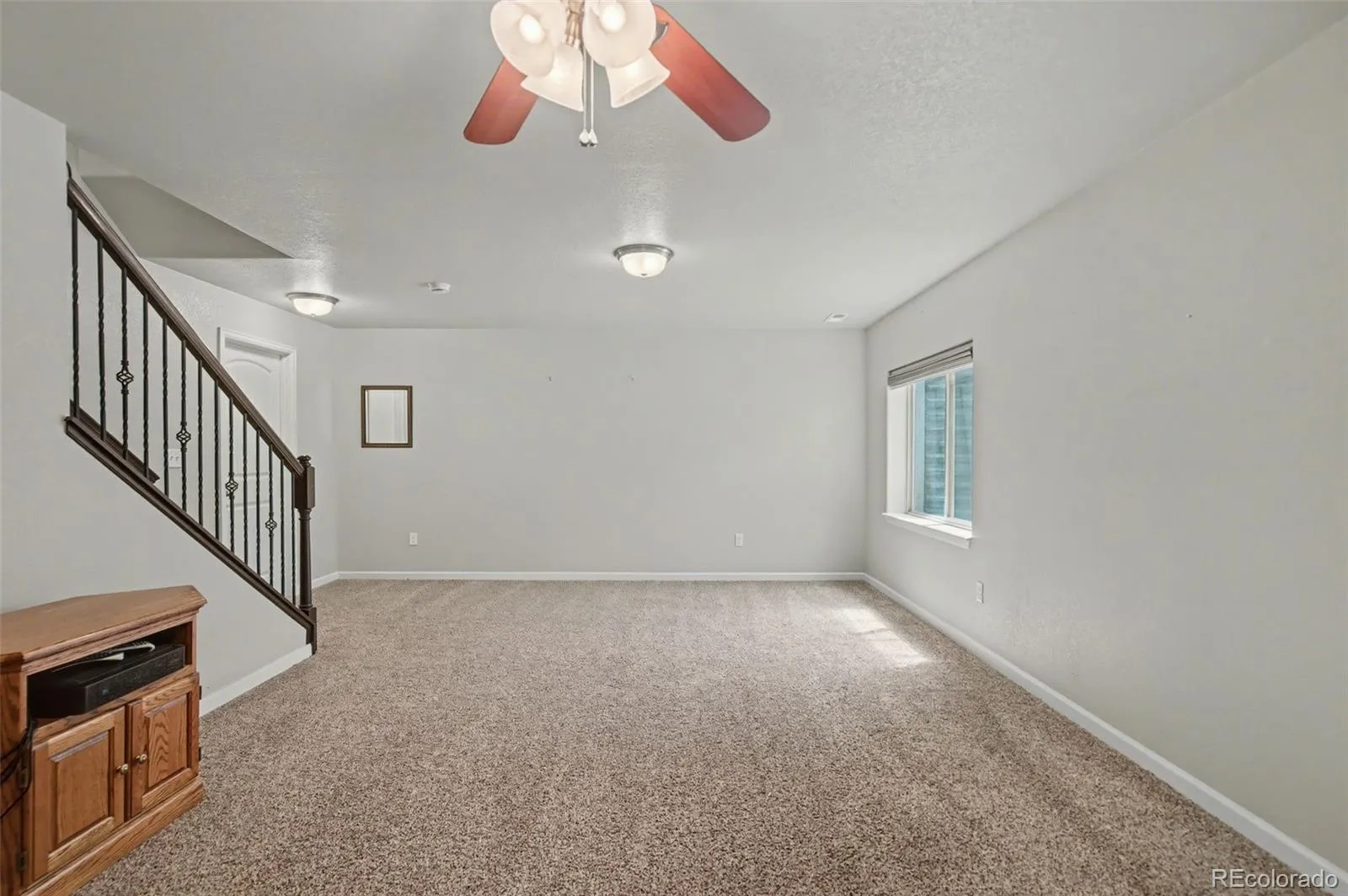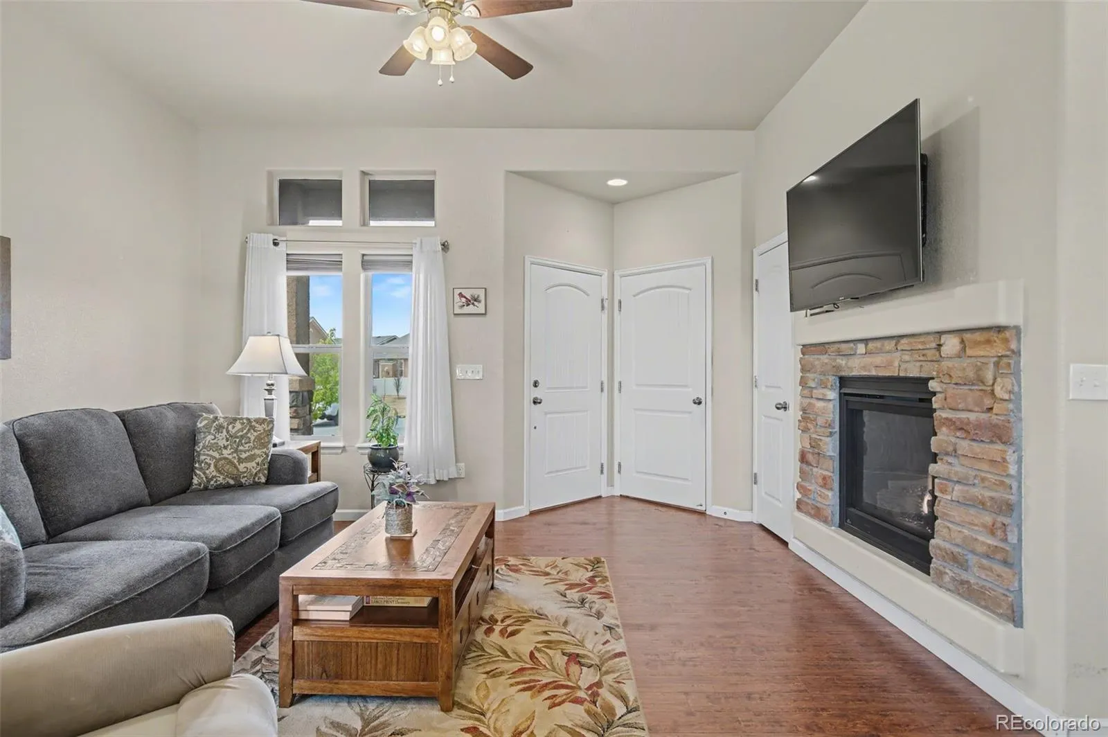 Welcome to this beautifully maintained ranch-style patio home in the desirable Trails East community, offering low-maintenance living with a spacious and functional layout. Featuring 3 bedrooms, 3 bathrooms, and nearly 1,900 finished square feet, this home combines comfort, convenience, and style. The main level showcases an open-concept design with a bright living room featuring a gas fireplace, a dining area, and a well-appointed kitchen with granite countertops, breakfast bar, pantry, and walk-out access. The primary suite is conveniently located on the main level, offering a walk-in closet and adjoining bath with double vanity and freestanding shower, along with main-level laundry for added ease. The finished basement expands your living space with a large family room and two additional bedrooms, including one with an adjoining bath—ideal for guests or flexible use. Enjoy outdoor living on the covered patio and take advantage of the fully landscaped yard. Additional highlights include central A/C, a two-car attached garage, and end-unit privacy. The HOA covers exterior maintenance, insurance, snow removal, trash, and more—making for easy, low-maintenance living. Conveniently located near shopping, dining, and major roadways, this home offers the perfect combination of comfort and convenience.