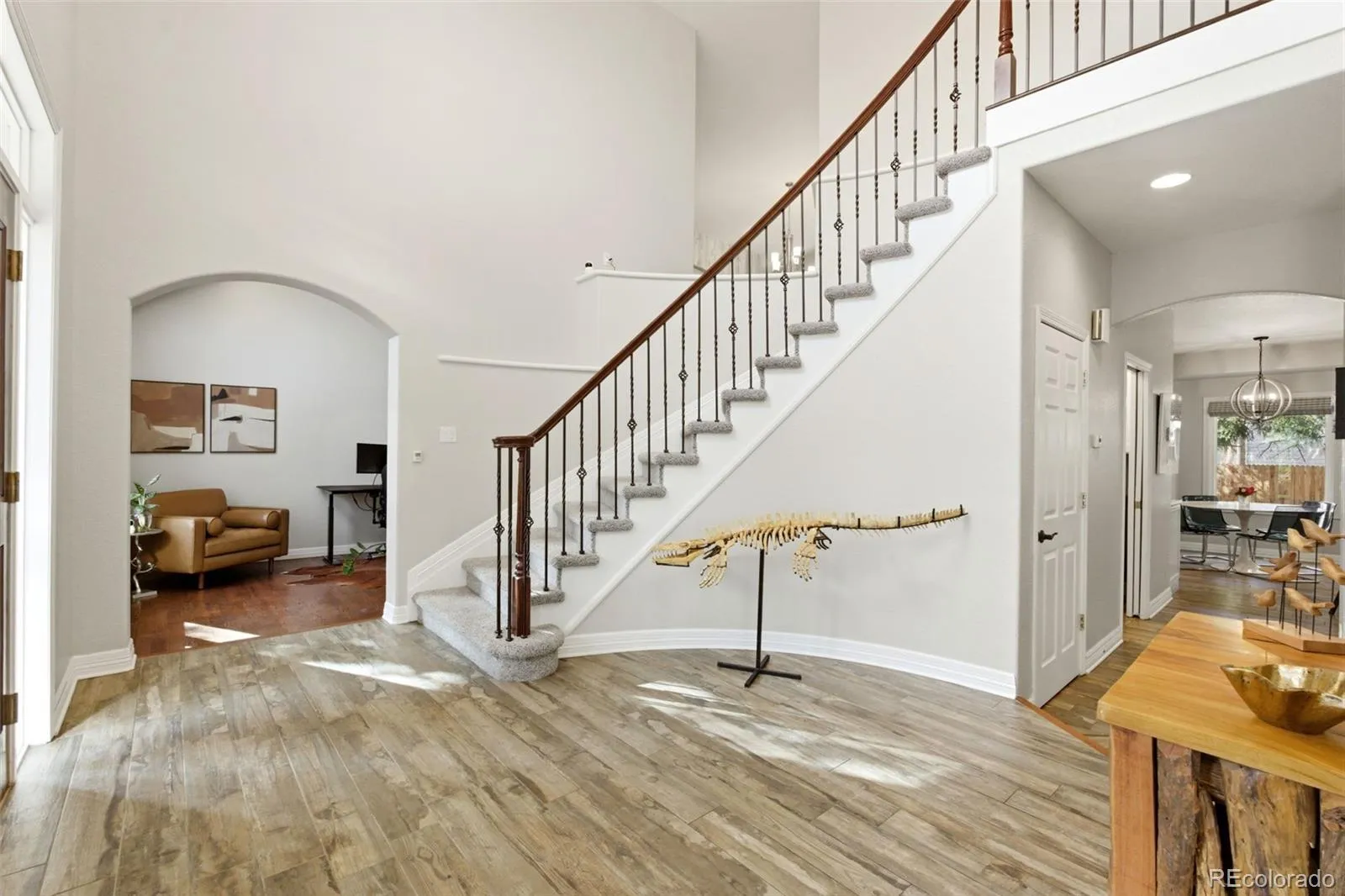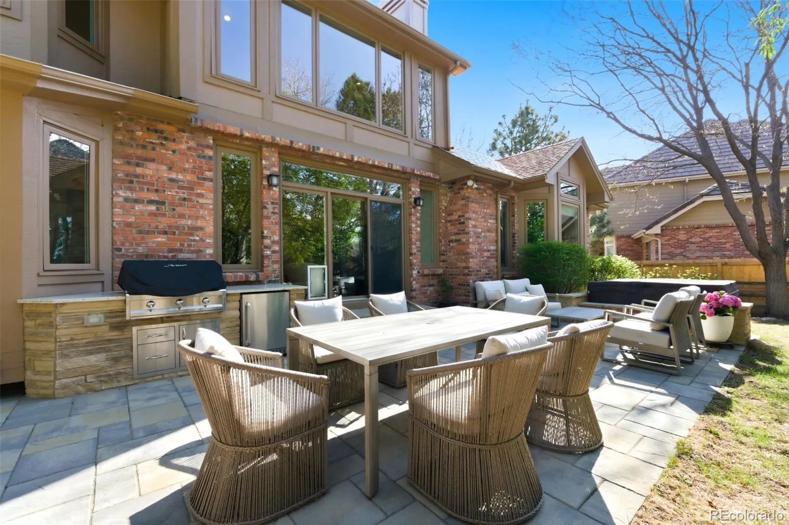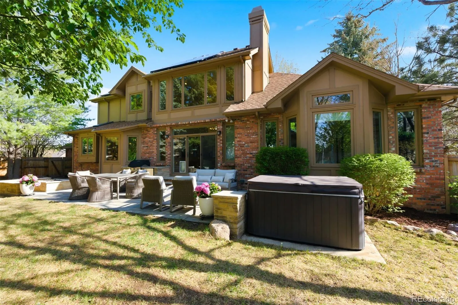 Situated on a quiet cul-de-sac on a 1/4-acre lot, the backyard offers exceptional privacy with mature trees, along with a beautiful water feature, patio, outdoor kitchen setup, fire pit, and hot tub—perfect for enjoying Colorado outdoor living. Solar panels are fully owned, helping reduce monthly utility costs. Conveniently located near parks, trails, and DTC, with award-winning Cottonwood Creek Elementary School just a short walk away.