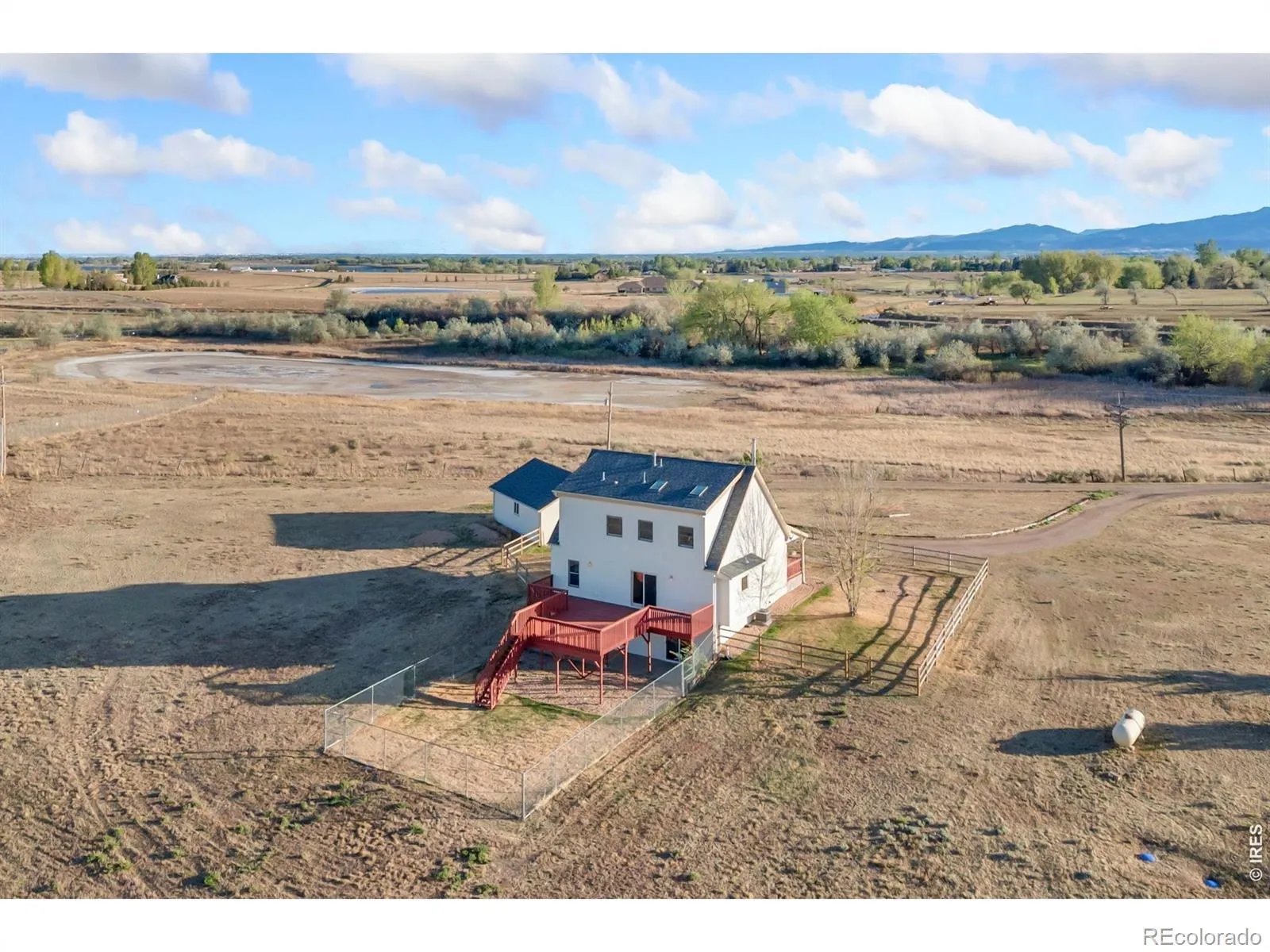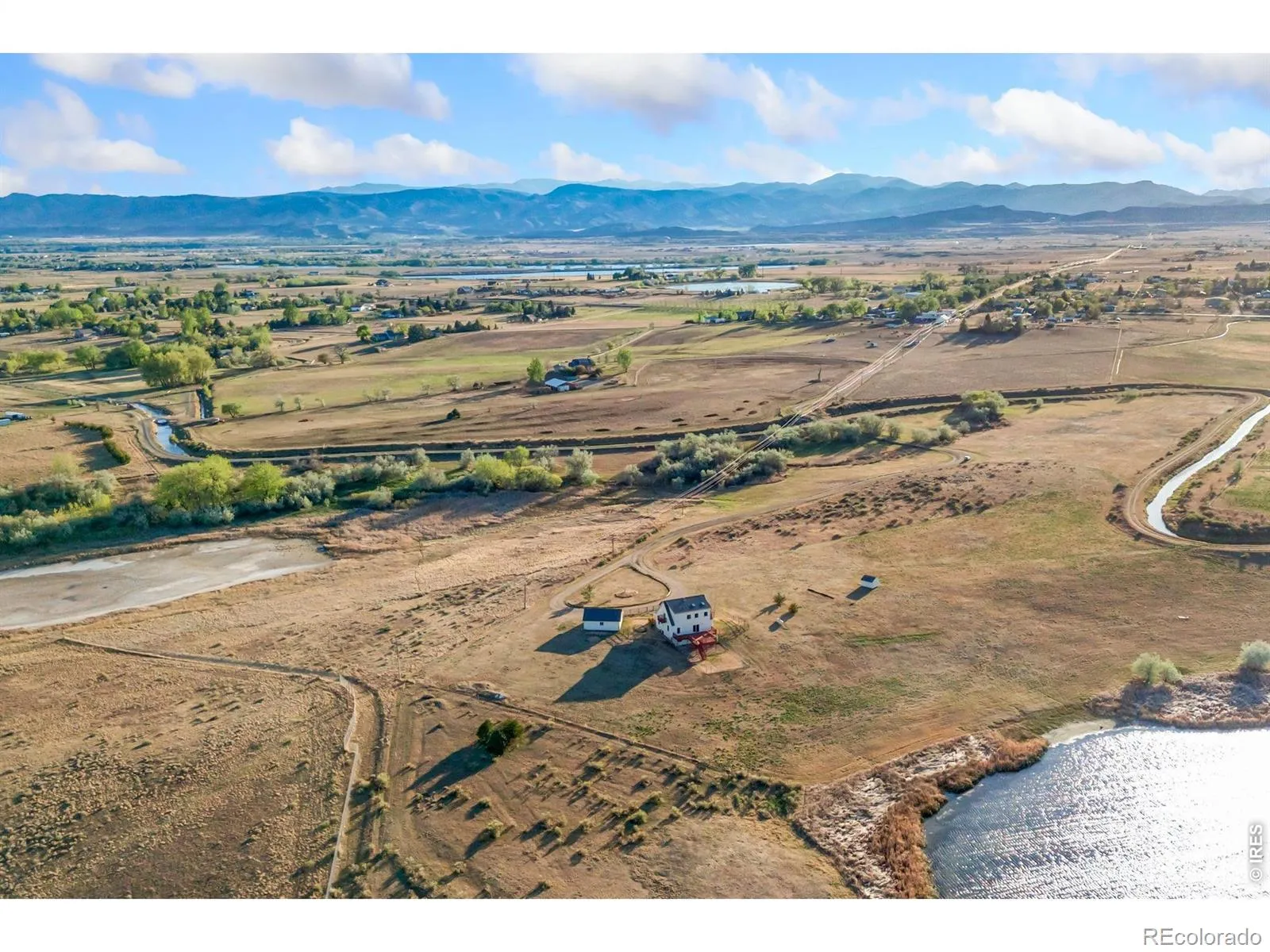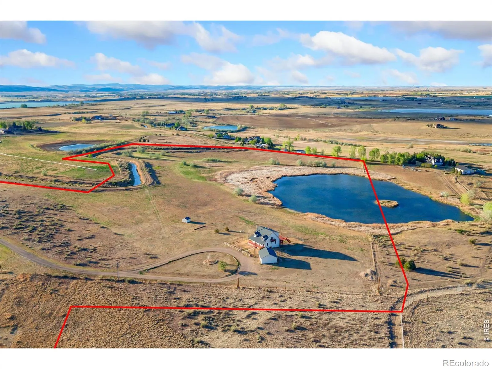 Experience true Colorado country living on this exceptional 45.3 acre waterfront property, where privacy, wide-open views, and abundant wildlife create a one-of-a-kind setting. Ideal for outdoor enthusiasts, the land offers excellent bird hunting, expansive grass and hay pasture, and peaceful water access that attracts native wildlife year-round. With no HOA, bring and store all of your weekend hobby toys as well. The home is equally impressive, blending rustic charm with modern updates. A welcoming front porch invites you in, while a massive back deck provides the perfect space to take in the surrounding scenery. Inside, you’ll find a beautifully remodeled kitchen featuring granite countertops, 48″ cabinetry, a large center island, and a spacious dining area-perfect for entertaining. Warm wood floors flow throughout the main living areas, complemented by a freestanding fireplace that adds comfort and character. This four-bedroom, four-bathroom home offers a functional and inviting layout, including a finished walkout basement for additional living or guest space. Vaulted ceilings and abundant natural light create an open, airy feel, while new carpet upstairs enhances comfort. The upper-level loft serves perfectly as a home office or flex space. Retreat to the private primary suite, complete with its own deck to enjoy quiet mornings and sweeping views. A detached oversized garage provides ample room for vehicles, equipment, and storage. Whether you’re seeking a working pasture, recreational retreat, or private homestead, this rare property delivers the best of rural living with space, beauty, and versatility.