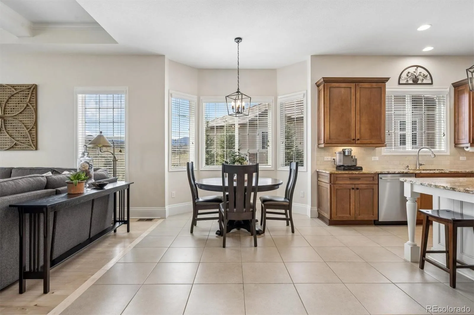 We are proud to present this lovely sprawling luxury ranch style home backing to open space in one of West Arvada’s most desirable neighborhoods, Candelas. This is a stunning suburban area w/ ample green space & amazing mountain views. Stunning front entrance! Welcome to this open floorplan with hardwood floors and tile on much of the main level & tastefully designed! Living, Dining and Family rooms are pouring w/ natural light, high ceilings, custom woodwork gas log fireplace & VIEWS! Gourmet kitchen features large island, maple & white cabinets w/ slab granite, wine RF, S/S appliances, pantry, double oven & nook/morning room! Home office w/ french doors-ideal for work from home. Main floor laundry, mud room, appliances included, offers great functionality. Private primary bedroom w/ volume ceilings, views of greenbelt and mountains, hardwood, flowing into a gorgeous ensuite 5-piece bath with dual sinks, tile flooring, shower enclosure, soaking tub & huge professionally organized walk-in closet! Great curb appeal, oversized 3 car garage-extra deep. Massive covered rear deck, immaculate grounds, low maintenance pet friendly yard & amazing open space setting, pergola with teak table/chairs included is great for entertaining! 2 very spacious secondary bedrooms, walk-in closets & adjacent full hall bath. Basement offers Mother-in-law/teen suite, 2 large additional bedrooms, full bath, kitchenette, game room in walk-out basement. Candelas designed to encompass all of your daily needs: shopping, dining, outstanding JeffCo K-8 and RV High is 10 of 10! Trails & easy access to Golden/Boulder. Community offers 2 pools, clubhouse, ponds, 6 playgrounds, gazebos, a nature walk, tennis/pickleball courts, baseball diamond & paved walking trails throughout the community. You’re a short ride to Standley Lake regional park, with a small beach area, camping teepees and non-motorized boating for recreation & Standley Lake Library Don’t miss this amazing home in an amazing community!