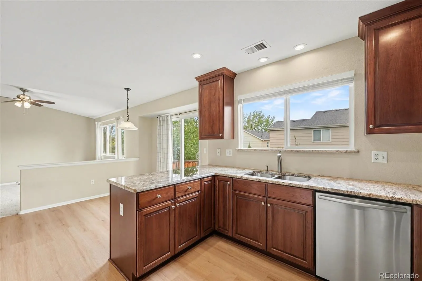 Tucked into one of Highlands Ranch’s most established neighborhoods, this move-in ready two-story offers the space, layout, and updates buyers are looking for. From the moment you walk in, the vaulted ceiling and natural light create an open, welcoming feel, while the dual-sided gas fireplace adds warmth and character to both the living and family spaces.