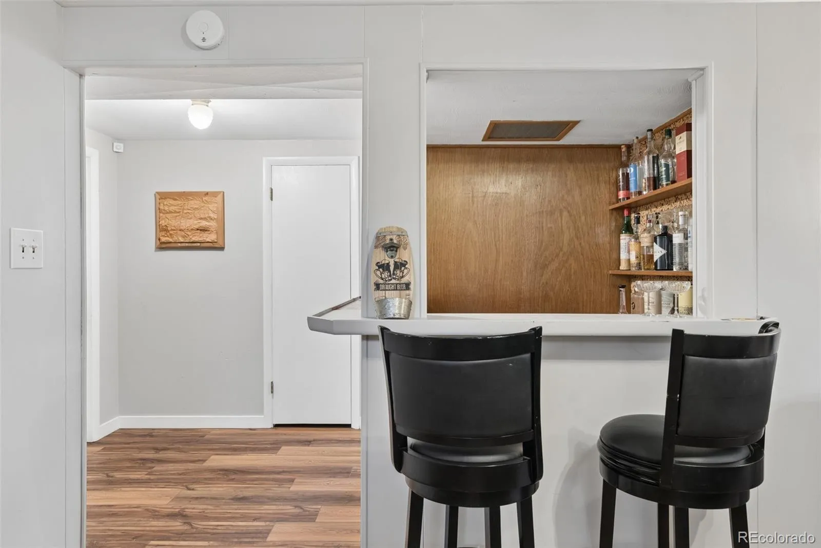 Tastefully updated, this home offers hardwood flooring throughout the main level and LVP in the basement, along with newer windows, updated electrical, and a new roof in 2023. Original 1960s charm remains beautifully intact with scalloped exterior trim, vintage metal kitchen cabinetry, and a retro built-in bar with a hinged bar top in the cozy basement.