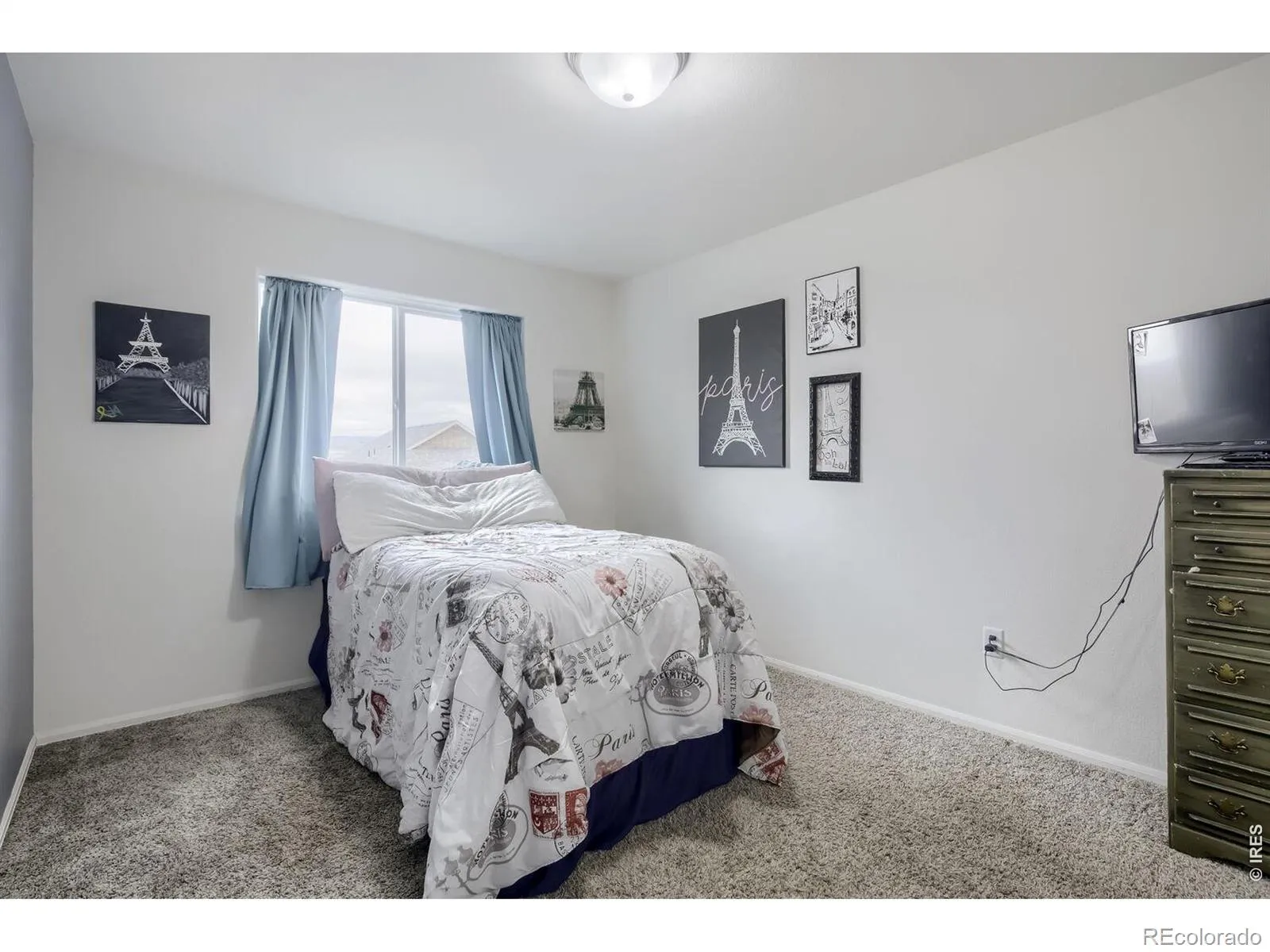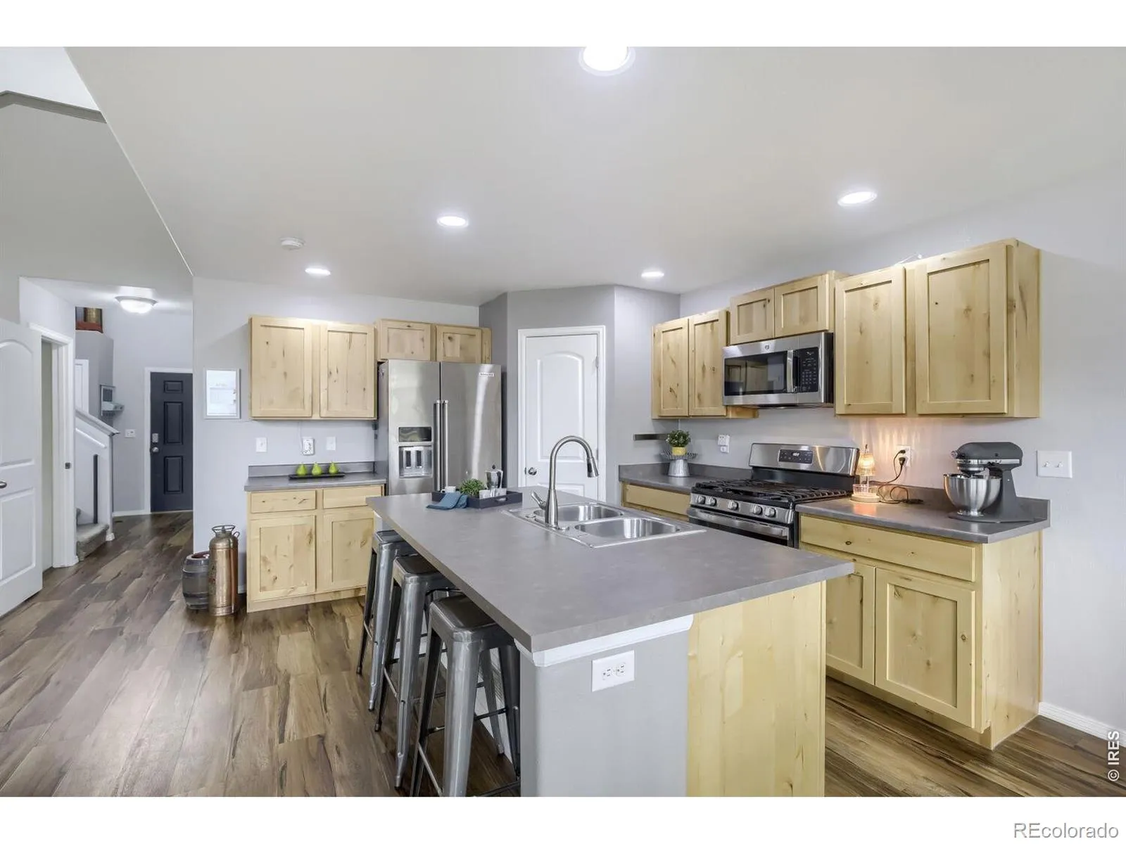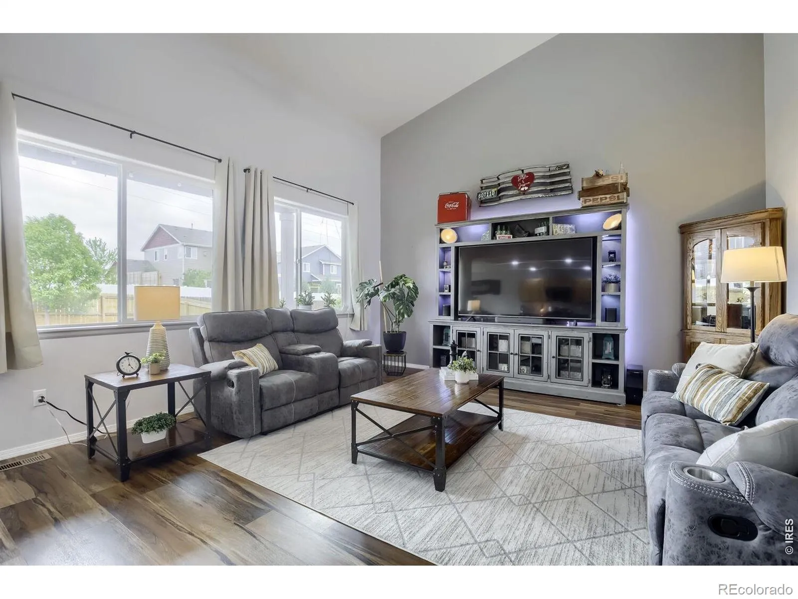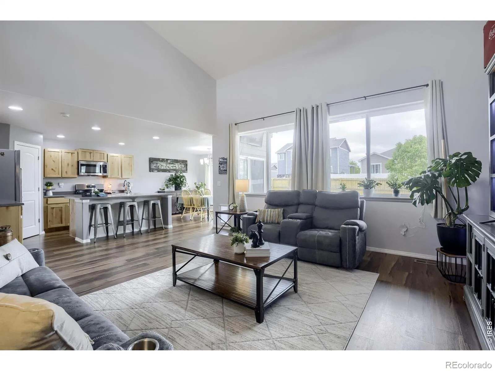 Experience the perfect harmony of luxury and efficiency in this stunning 2 story home that has it all. The open floorplan greets you with soaring ceilings and abundant natural light, creating an airy ambiance across three bedrooms and four bathrooms. Designed for modern living, the galley kitchen boasts stainless appliances, gas cooktop, pantry and the main level features luxury vinyl plank flooring. The upper level is a masterclass in convenience, hosting all bedrooms and a spacious laundry room. Retreat to the expansive primary suite with luxurious bath and generous walk-in closet. The unfinished basement provides a flexible canvas, already featuring a fully finished bathroom and the large 3 car tandem garage offers plenty of storage space. The exterior is a private sanctuary with a covered back porch that backs to a peaceful greenbelt. Enjoy the professional landscaping with full irrigation, water features, garden beds and lighting features. Conveniently located in north Loveland near premier shopping, dining & recreational trails. This home offers a rare opportunity with 30kWh solar panels giving significant energy savings plus an assumable loan at 2.875% interest!