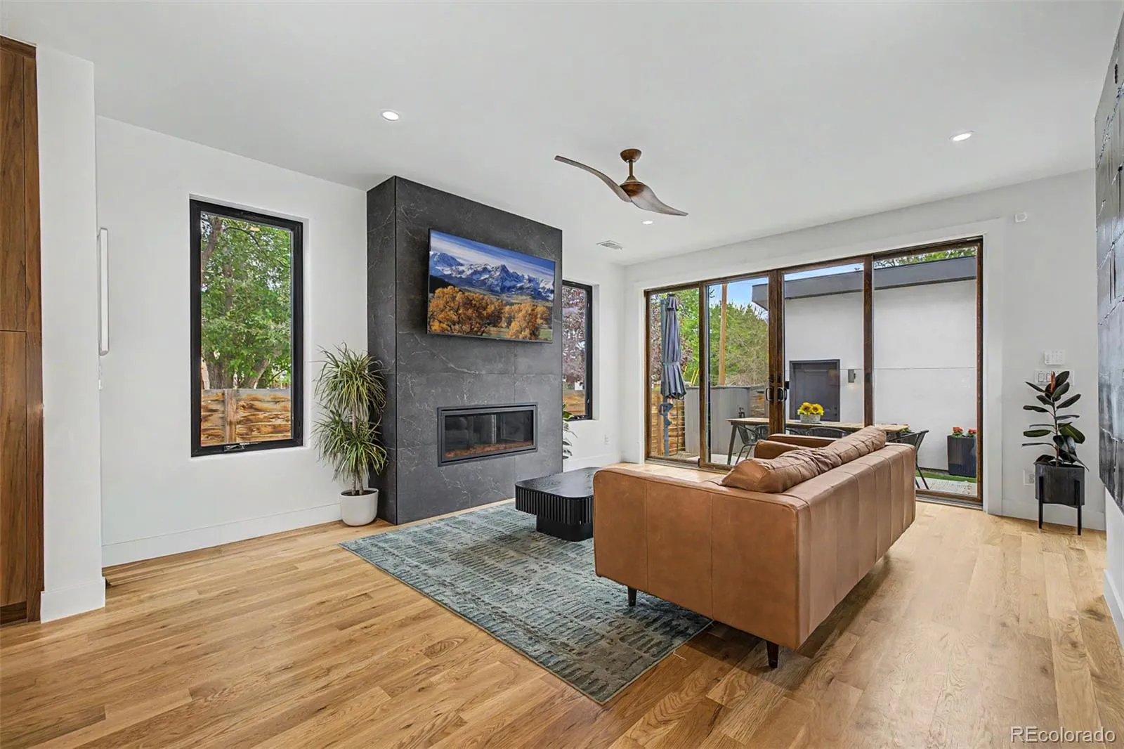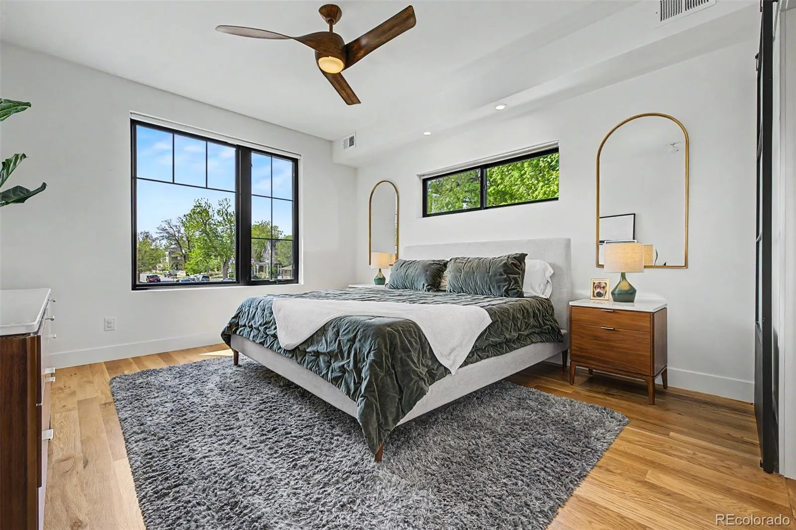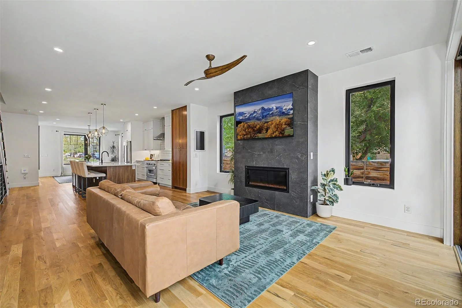 Priced to sell, this newer construction duplex offers 5 bedrooms, 5 bathrooms, and 3,442 square feet in a quiet Sloan’s Lake location on a corner lot that brings in exceptional natural light. Built in 2020, the home features a desirable open floor plan with the kitchen at the center, anchored by a large quartz island, KitchenAid and ZLINE appliances, and seamless flow into the spacious living room with gas fireplace. Double Anderson sliding doors open to a private patio and fenced yard, creating an easy indoor-outdoor connection for everyday living and entertaining. Solid hardwood floors run throughout the main level, and tree-lined streets add to the peaceful setting.