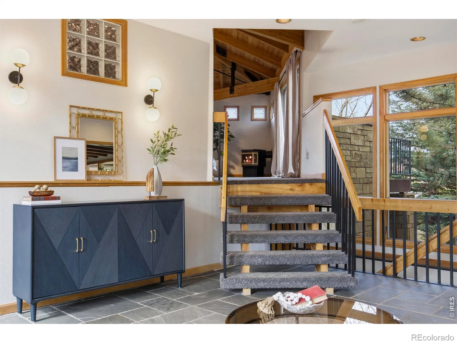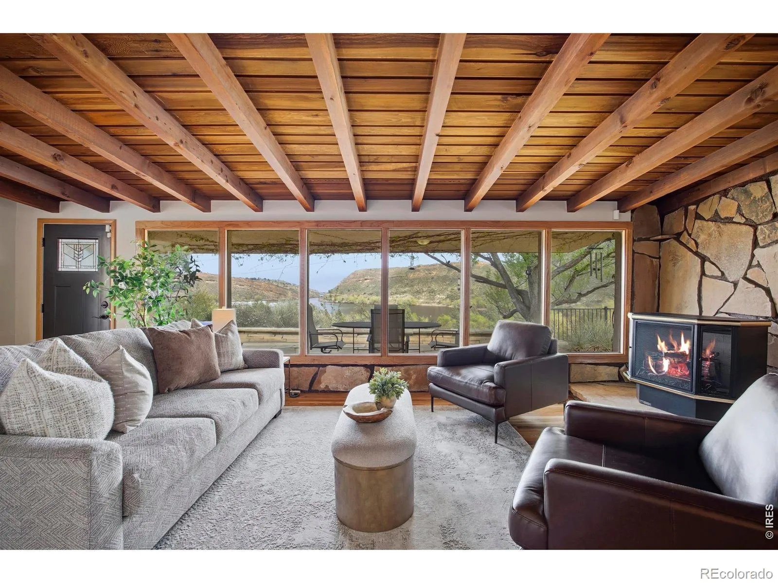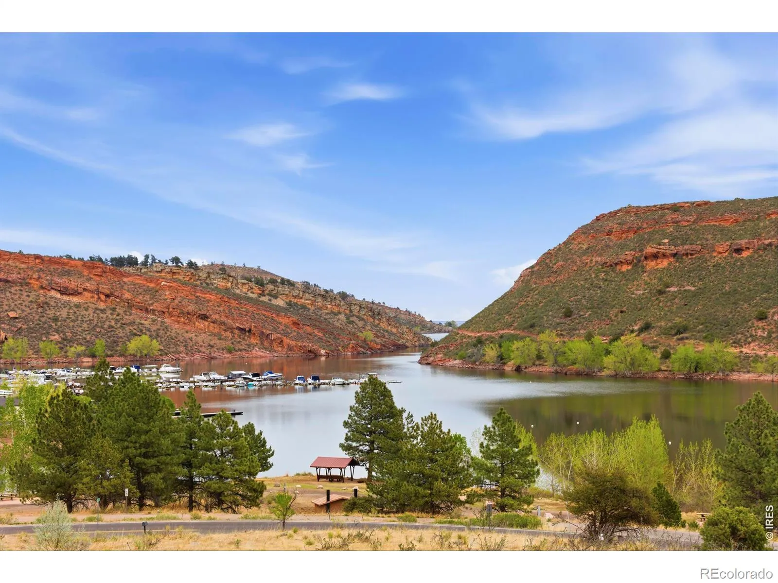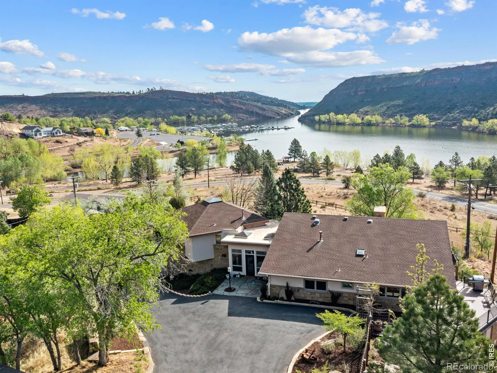 A unique blend of SOUL, CHARACTER, and gorgeous WATER VISTAS! Discover this rare 1.35-acre sanctuary that pairs Frank Lloyd Wright’s organic architecture with vintage mountain cabin charm. Perched above the inlet bay of Horsetooth Reservoir, this 3-bed, 3-bath home offers breathtaking water views and abundant privacy. Inside, restored original old-timber wood floors, rich custom wood finishes, and custom stonework create warm elegance. The primary retreat features a cozy fireplace and private balcony-perfect for morning coffee while watching stunning sunrises. The enchanting outdoor setting with custom landscaping is a masterpiece in and of itself with a serene water feature, imported rare boulders, built-in firepit, expansive deck and patio, and mature landscaping . A true architectural gem for those seeking tranquility and natural beauty. Escape the city’s ambient light and enjoy spectacular star gazing and the occasional meteor shower.