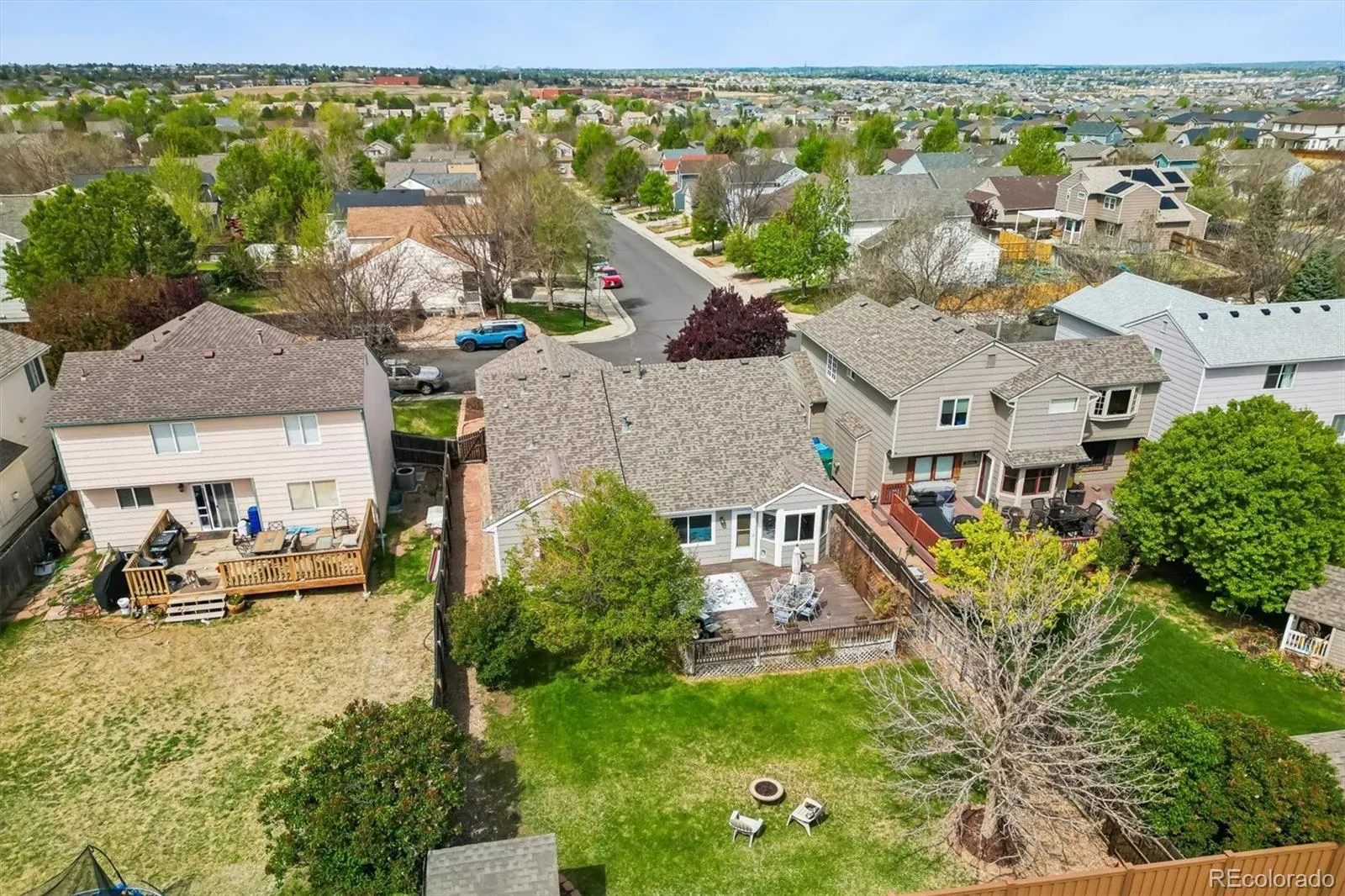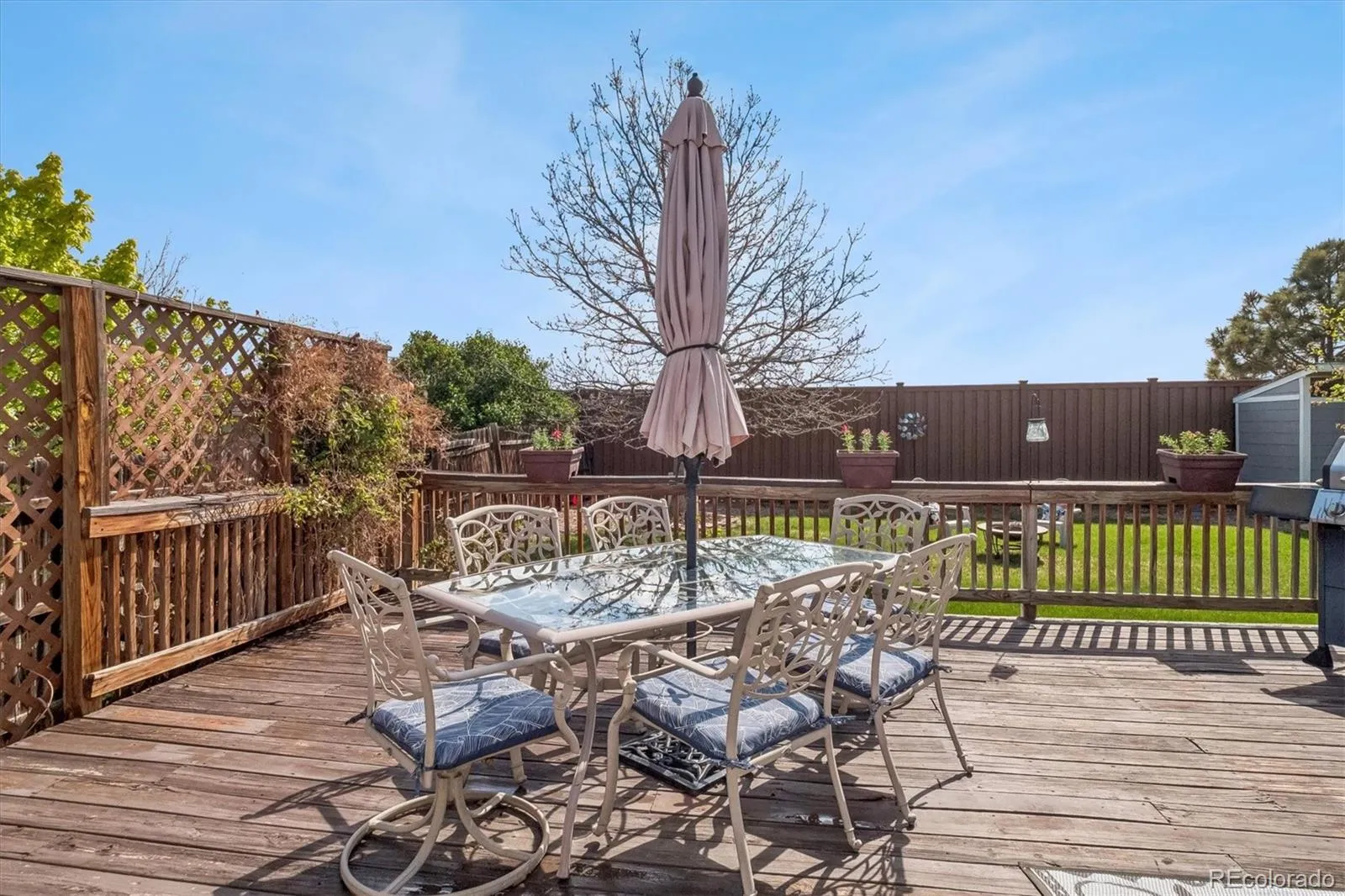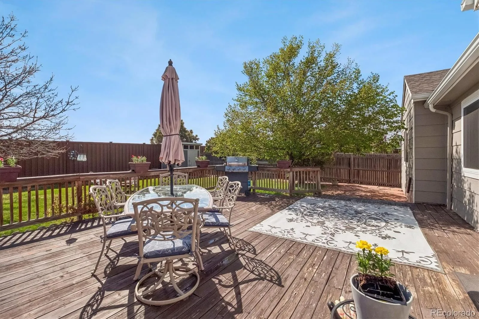 Rare ranch-style home in highly desirable Saddle Rock Ridge (Cherry Creek Schools)! Offering true main-level living, this thoughtfully designed floor plan features 3 bedrooms, including a generous owner’s retreat complete with a 5-piece bath and walk-in closet, plus two secondary bedrooms that share a full bath. The main level is warm and inviting, with a formal living room and dining room, and a cozy family room anchored by a gas fireplace. The spacious kitchen is ideal for everyday living and entertaining, featuring a large island, eat-in dining space, newer appliances, a new stainless sink, and ample cabinetry including pantry storage. The partially finished basement expands your living space with a large bonus area perfect for a media room, home office, workout space, or playroom. A convenient half bath (already stubbed for a shower) offers future flexibility. There’s also a partly finished room with an egress window—ideal for a potential fourth bedroom (currently there is no closet). Rounding out the basement is a generous unfinished area and crawl space for exceptional storage. Step outside to a private, beautifully maintained backyard featuring mature landscaping, a large deck, utility shed, and brand-new rear fencing—perfect for relaxing or entertaining. Enjoy added privacy with no neighbors to the back, and even better…the High Plains Trail sits directly behind the home, offering easy access to miles of outdoor recreation just steps from your door. Major updates provide peace of mind, including a Class 4 impact-resistant roof, full exterior paint, and several newer windows (all completed in October of 2023). Newer HVAC and water heater replaced in 2019. Recently serviced front and backyard sprinkler system, and new LED bulbs throughout. Garage door has been serviced with new springs. Easy access to abundant shops and restaurants. Many parks and trails throughout the community. Impeccably maintained home! Don’t miss this is a rare opportunity!