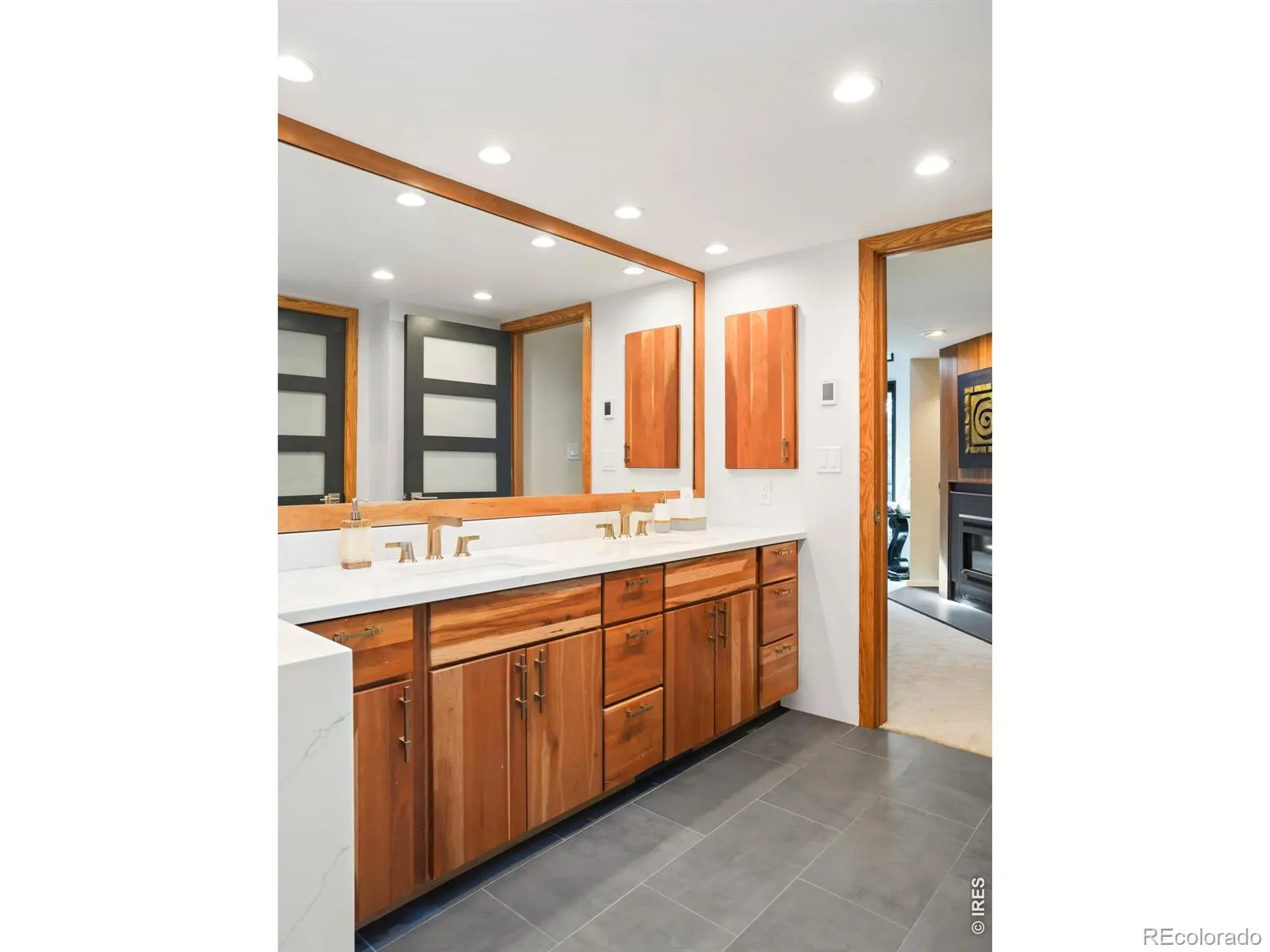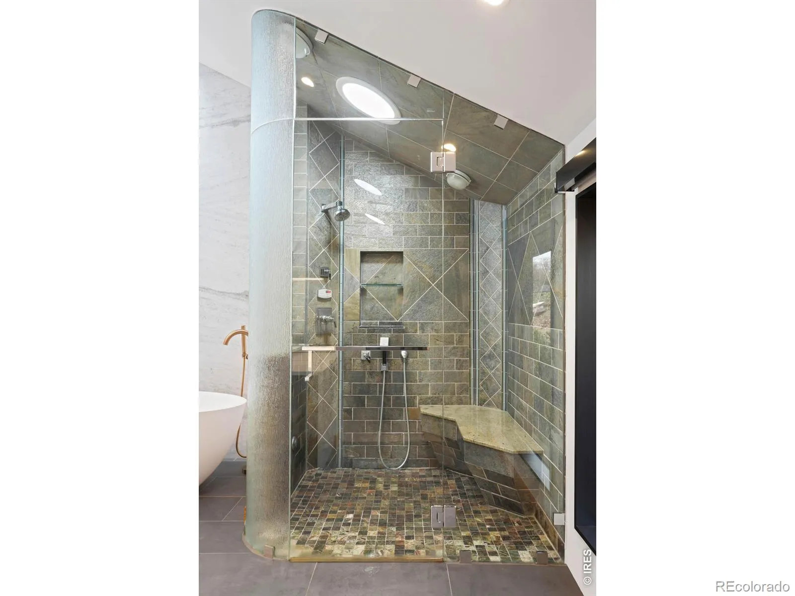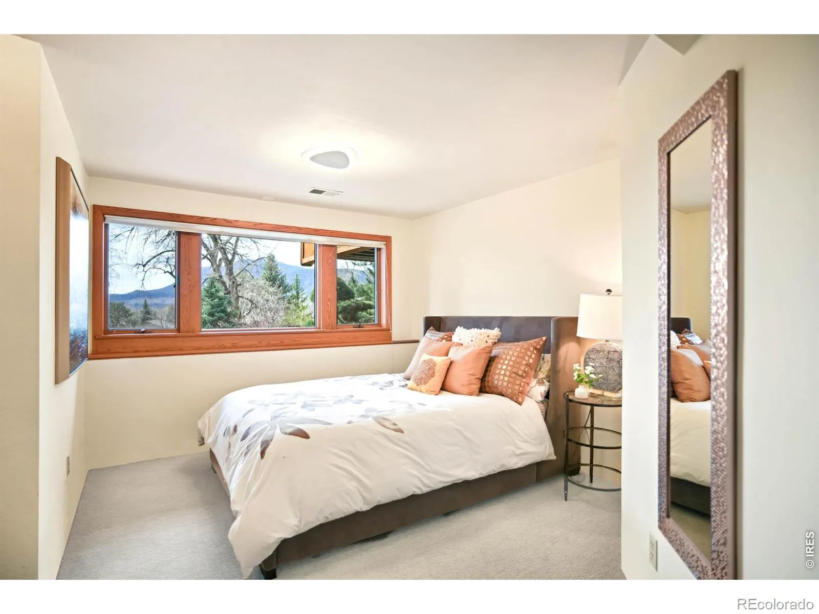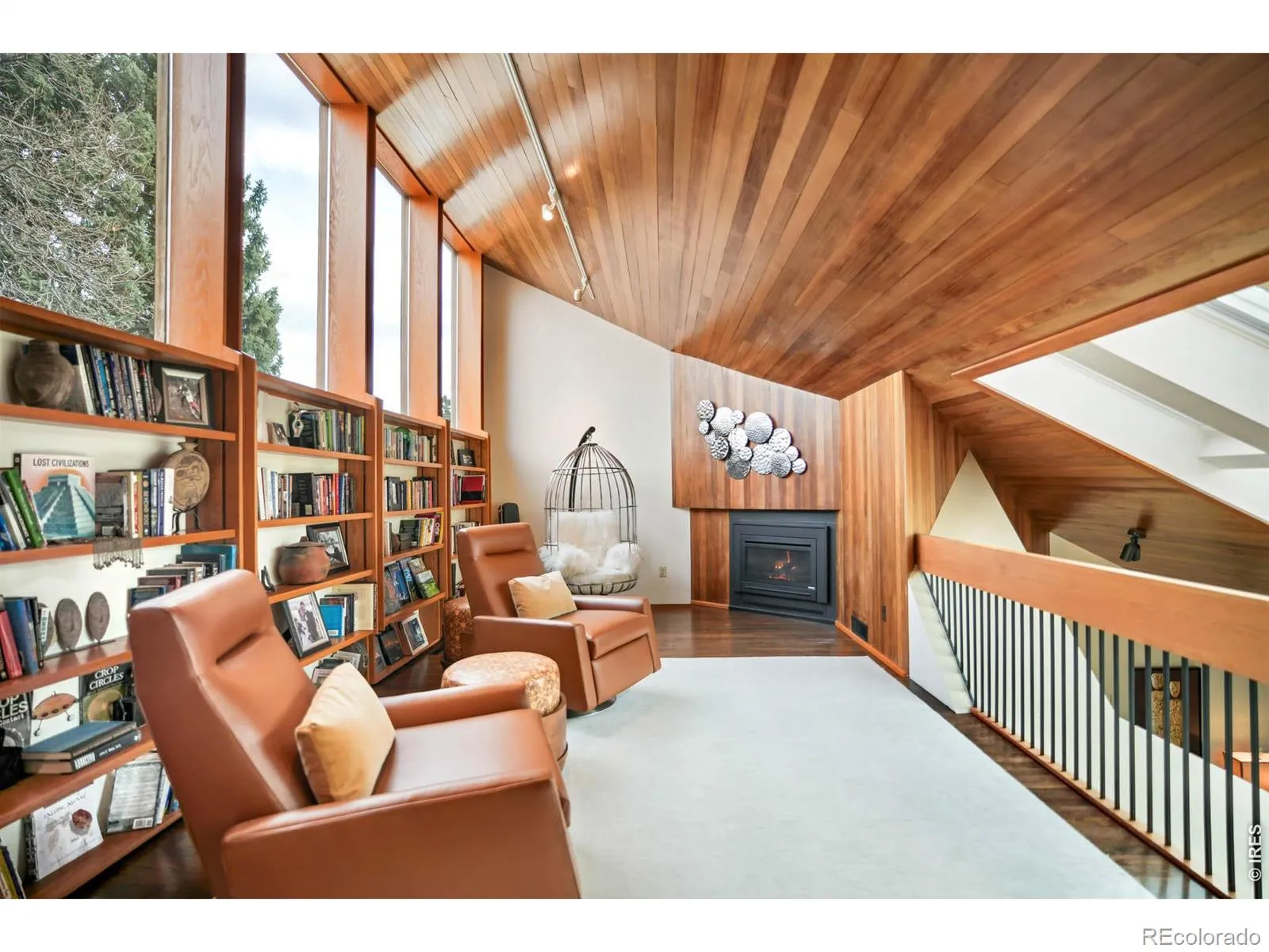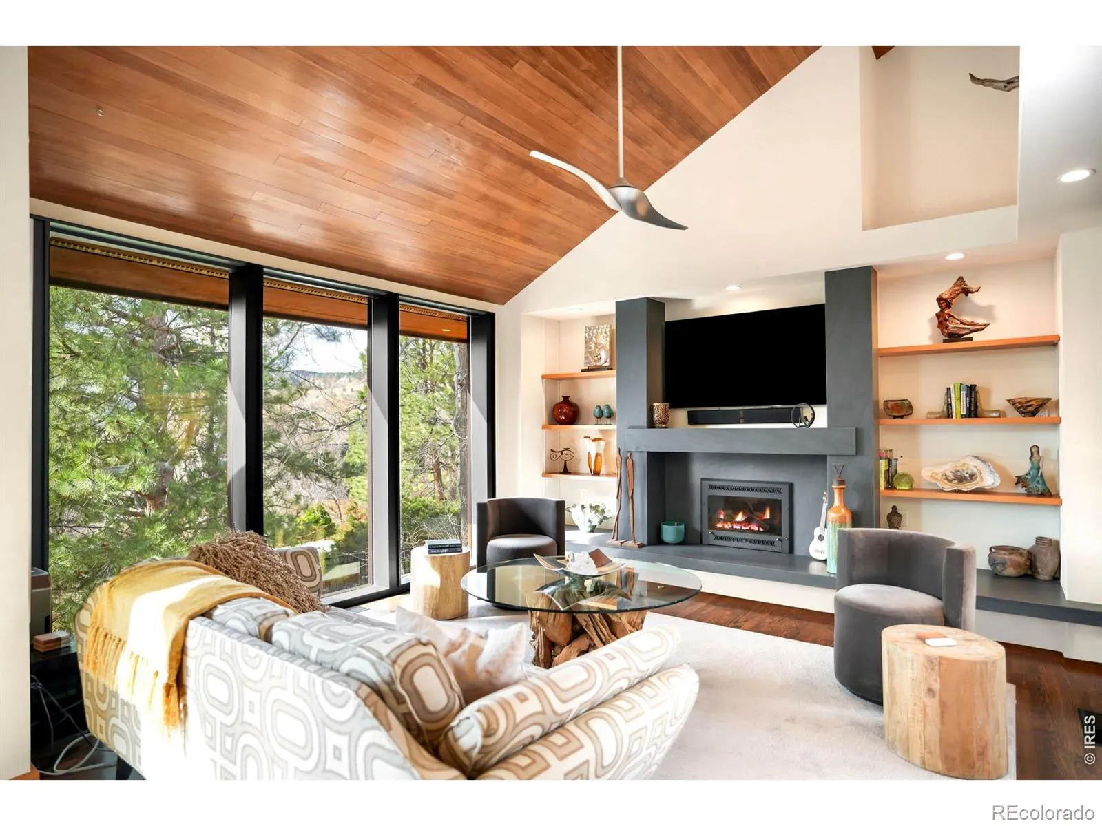 Poised in Boulder’s prestigious Linden Park, this extraordinary home offers an unparalleled blend of distinct design, elegance, comfort, privacy, and breathtaking natural surroundings. Direct access to the serene and private Maxwell Lake and green space from the back, and an abundance of hiking and biking trails including Goat Trail and Sanitas from the front. Mid-century elegance meets nature in this tranquil, zen-inspired, treehouse-like sanctuary. Floor-to-ceiling windows throughout frame lush, green surroundings in spring and summer, then reveal sweeping, unobstructed Flatiron views in winter. Perfectly attuned to nature infusing every space with calm and connection to the outdoors. A grand front entry welcomes residents into soaring vaulted ceilings, striking architectural artistry and floor-to-ceiling windows that flood the home with natural light and frame the stunning setting. The great room is an entertainer’s dream, featuring a modern fireplace, built-ins and a seamless transition to a private deck with iconic Flatiron views, an artisan fire pit and a custom retractable awning for hosting guests rain or shine. The chef’s kitchen is outfitted with granite countertops, abundant storage and Monogram appliances. A main-floor primary suite boasts vaulted ceilings, a walk-in closet and a luxurious five-piece bath with a steam shower. Upstairs, an intimate bedroom with a balcony and an illuminating library with gas fireplace offer harmonious escapes. The lower level includes two bedrooms with views of the mature landscaped and secluded backyard, a full remodeled bath with a cedar sauna, a restored original kitchen gem for guests, and a generous living space with floor to ceiling views. Additional perks include energy efficient solar panels and a spacious 3 car garage with new glass doors.