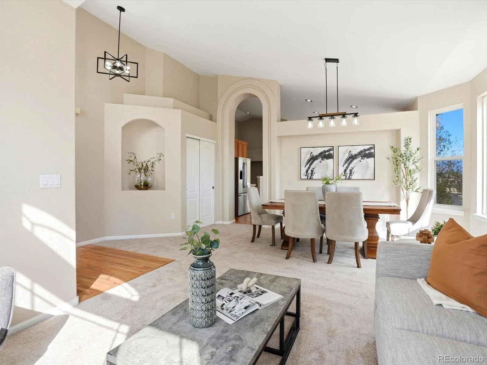 Beautiful ranch-style home in the Arrowhead Shores neighborhood of Roxborough. This home sits on a corner lot with foothill views. As you enter the home you are greeted with vaulted ceilings, large windows bringing in abundant light, and updates throughout. This open layout creates a bright and spacious feel. The kitchen has stainless steel appliances, refinished hardwood and, a large eat in area. Recent updates to the home include a brand-new furnace and A/C, fresh interior paint, new flooring, updated light fixtures, and modern bathroom vanities and faucets. Enjoy the expansiveness of vaulting ceilings in every bedroom. The functional layout offers main-floor laundry, a cozy gas fireplace, and both a dining area and eat-in kitchen. A full unfinished basement provides excellent potential for future expansion. All this, as well as, a 3 car attached garage! You will love the close proximity to outdoor recreation, including Chatfield Reservoir, Waterton Canyon, and Roxborough State Park.