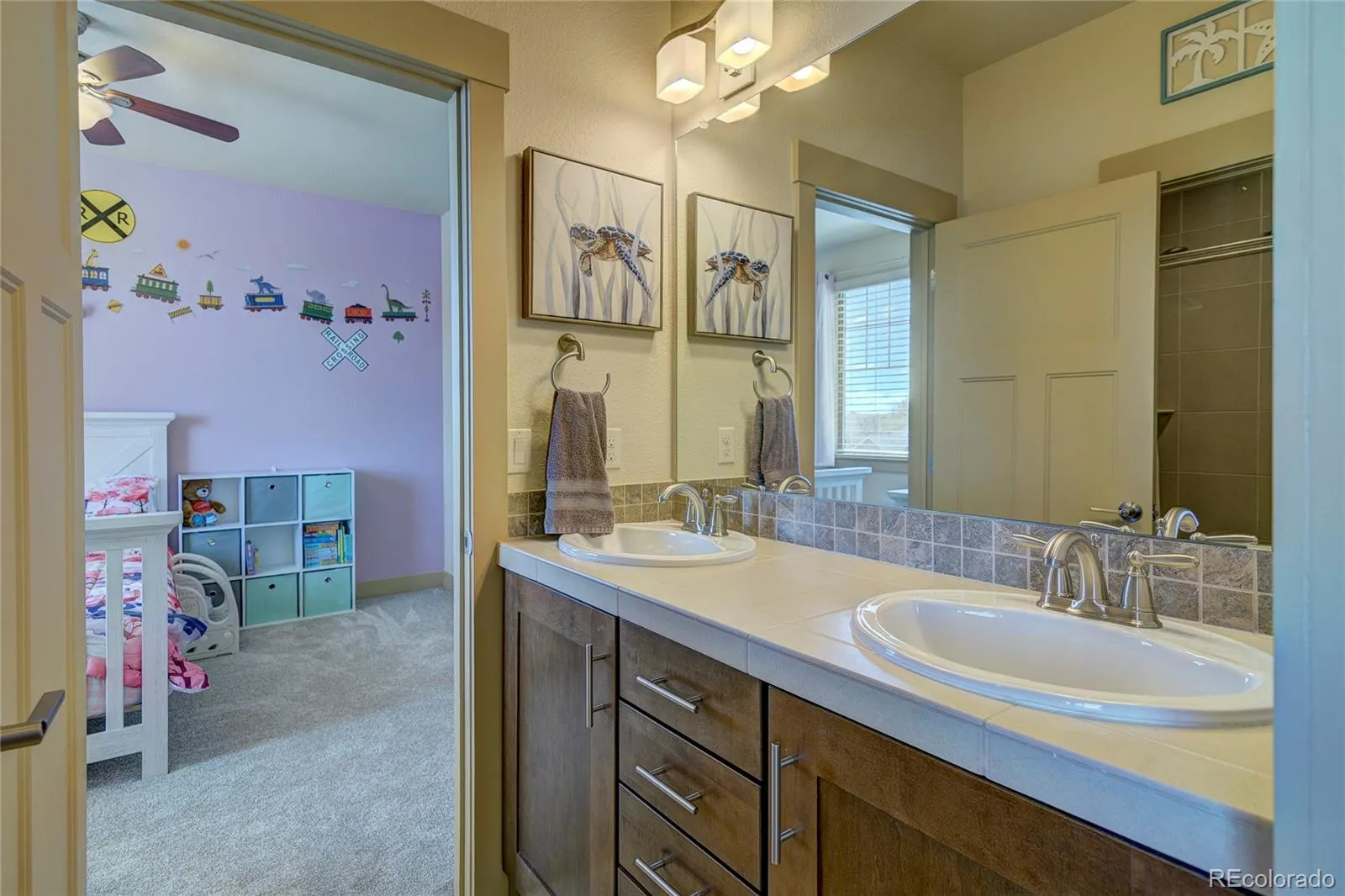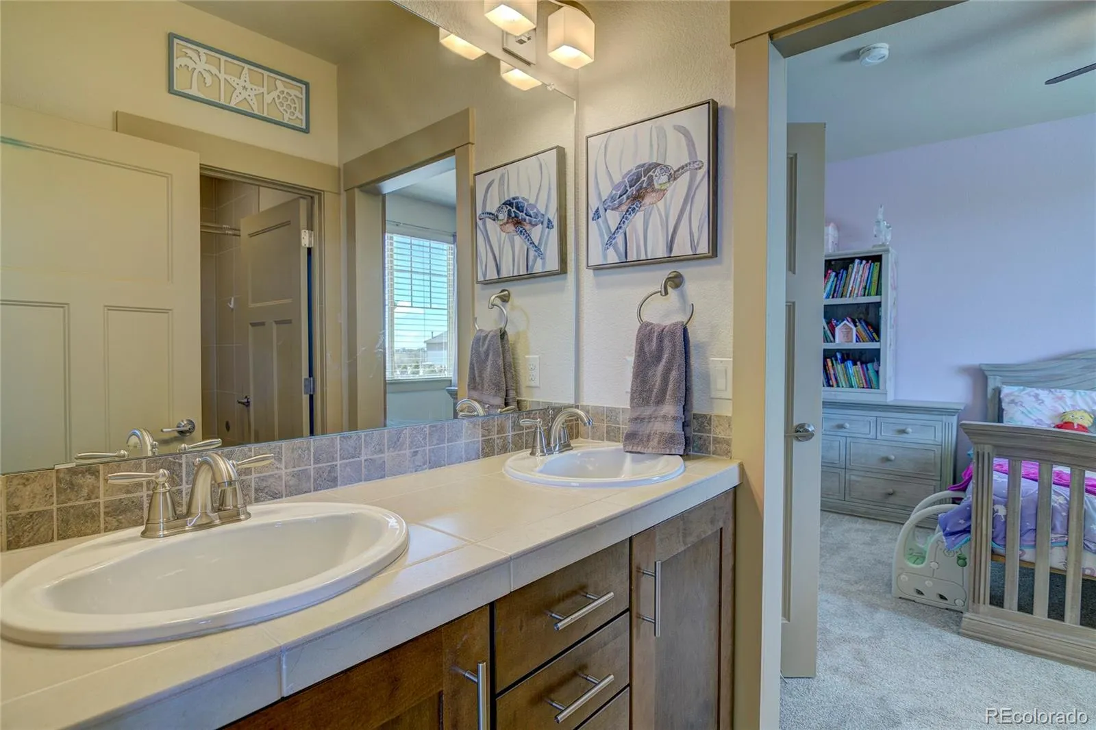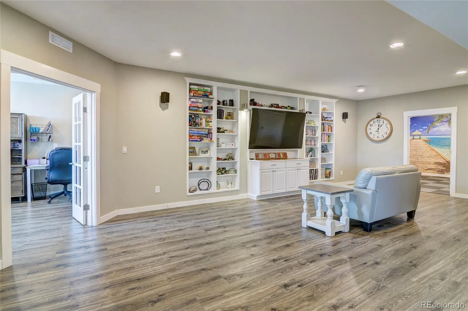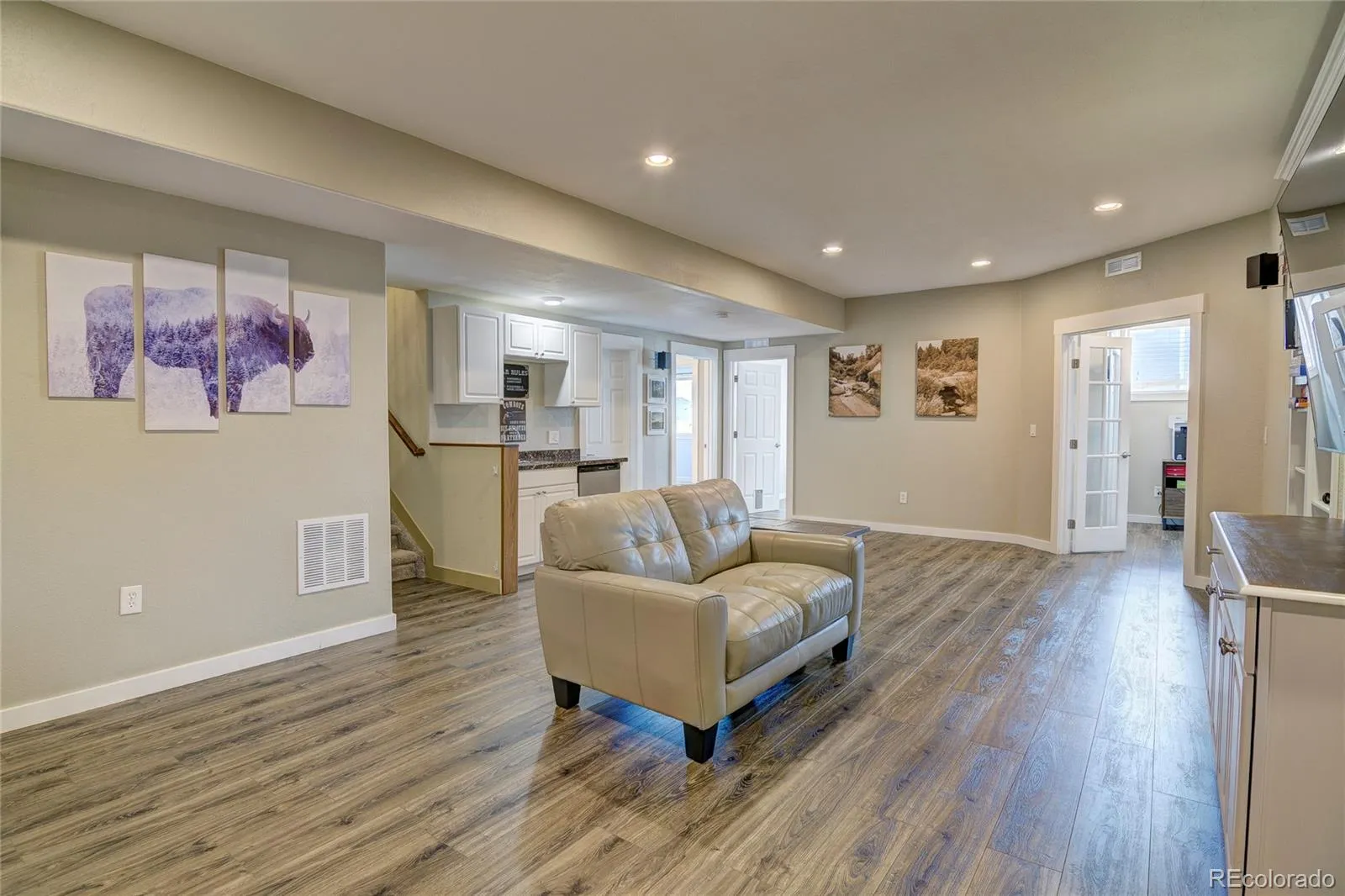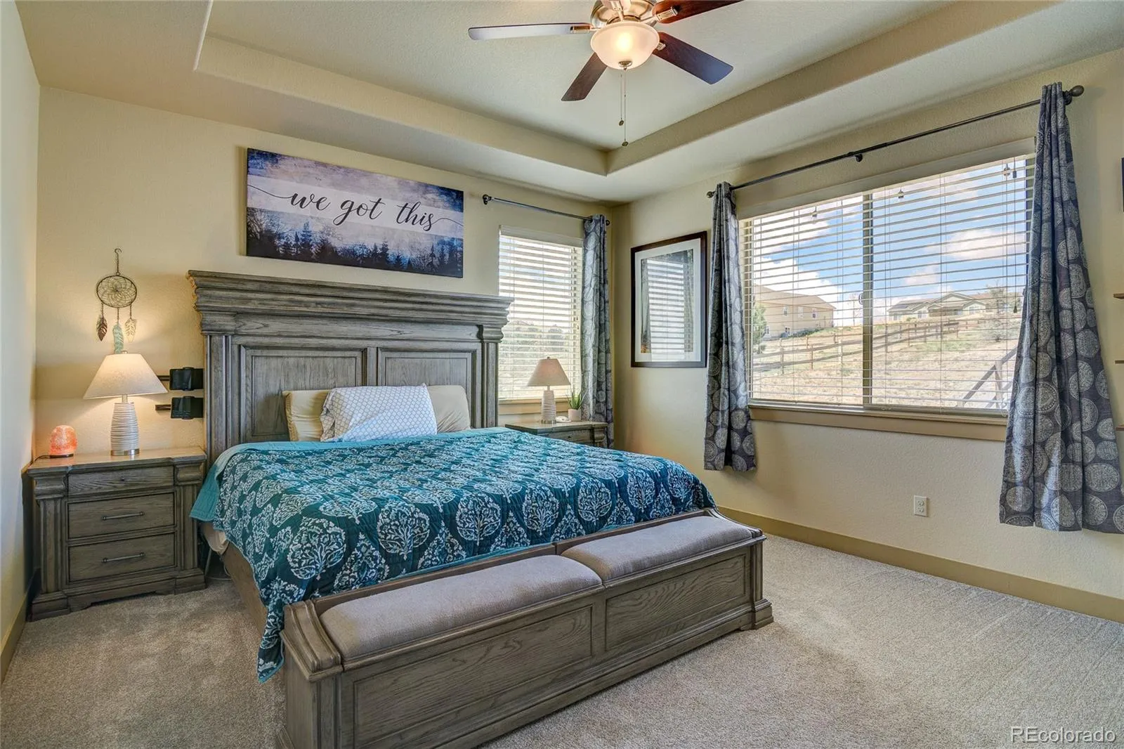 Escape city living and enjoy space, privacy, and refined Colorado comfort—just 20 minutes to Parker. Situated on a beautifully landscaped 0.82-acre lot at the end of a quiet cul-de-sac, this exceptional 7-bedroom ranch is one of the original Tom Hall/Renaissance Homes in desirable Spring Valley Ranch. The open-concept great room features soaring 12’ ceilings, refinished hardwood floors (2025), and a cozy fireplace with built-ins. The gourmet kitchen offers slab granite countertops, stainless steel appliances, a walk-in pantry, formal dining, and a bright breakfast nook. Eight-foot doors throughout the main level enhance the spacious feel. The main floor includes a luxurious primary suite with coffered ceilings, five-piece bath, Roman tub, and large walk-in closet. Two bedrooms share a Jack-and-Jill bath, plus a private guest suite with its own ¾ bath—ideal for visitors or multigenerational living. Enjoy year-round relaxation in the enclosed sunroom or step outside to the gazebo, large patio, and new playground area with playset and trampoline. The finished garden-level basement adds 3 bedrooms, a full bath, second laundry room, wet bar, workout/flex space, and ample storage. Additional highlights include a deep 3-car garage with 8’ doors and high-speed fiber optic internet. Major updates include a Class 4 impact-resistant roof, new gutters, and exterior paint (2024), plus new carpet and refinished hardwood floors (2025). Located in a golf course community with clubhouse and grill, this move-in ready home offers the perfect blend of luxury, function, and convenience.