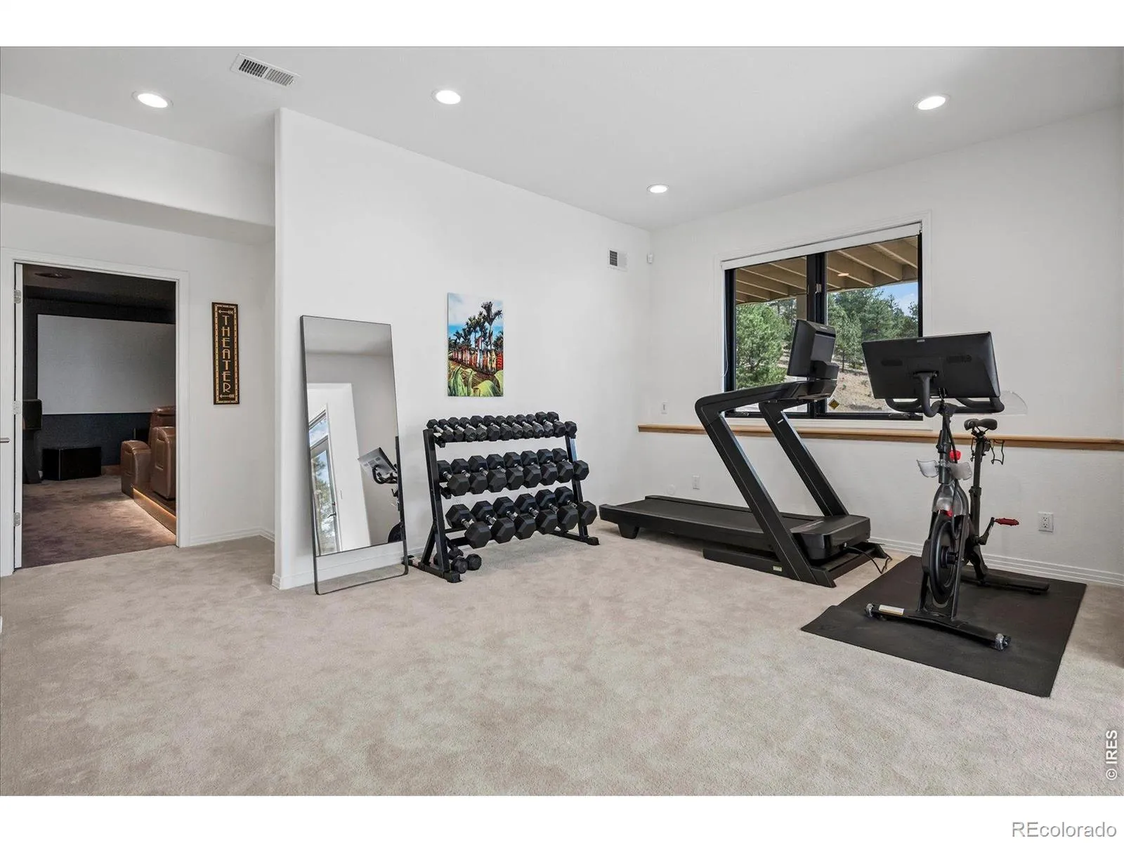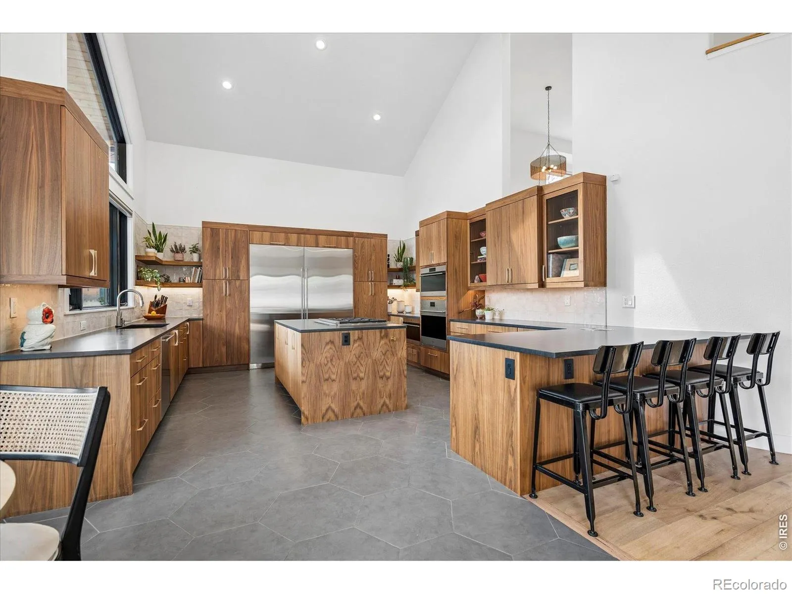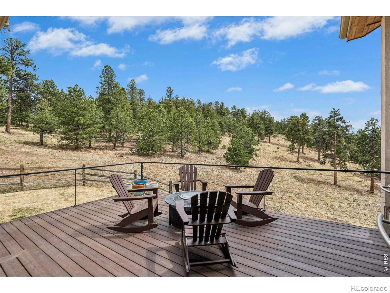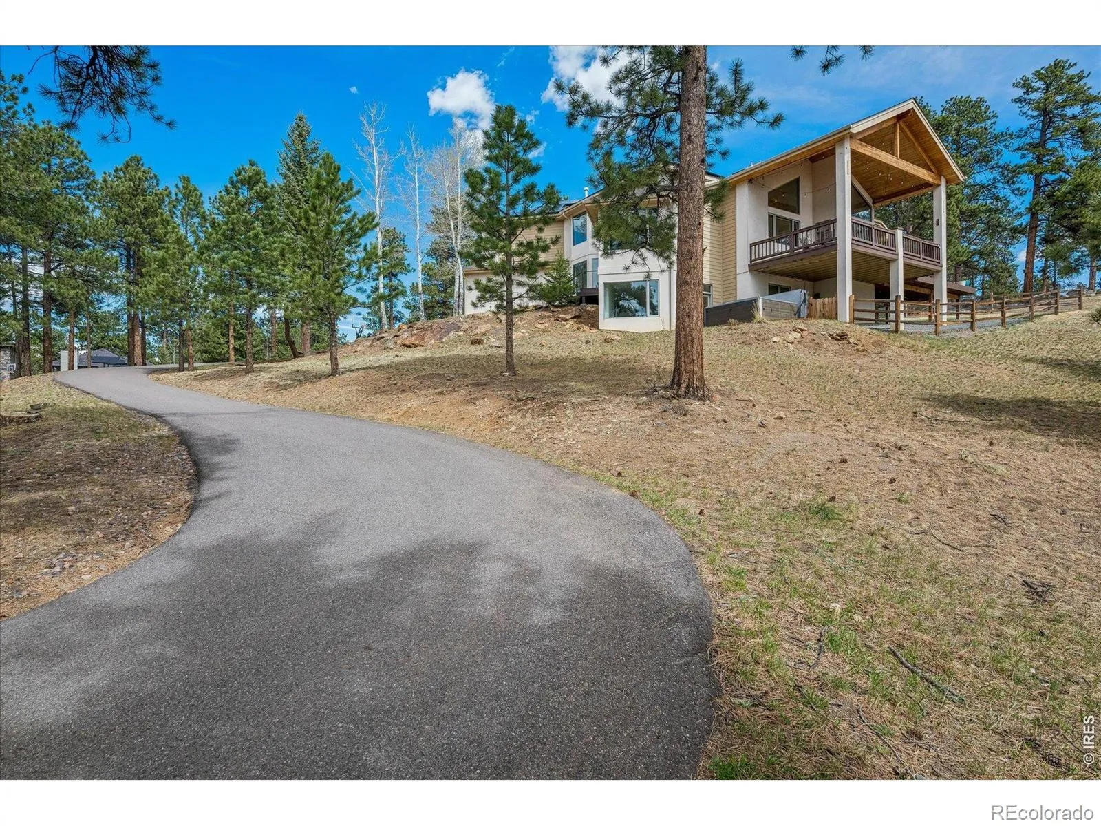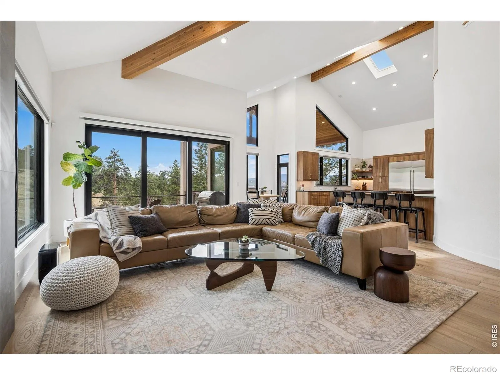 Stunning modern Colorado home extensively remodeled in 2023, offering sweeping panoramic mountain views from a premier private lot at the front of the highly sought-after Ridge at Hiwan, backing to HOA open space.Thoughtfully reimagined with high-end finishes and modern upgrades throughout in 2023, the home lives like new. The spectacular great room features vaulted ceilings, a fireplace, & a dramatic Euro-style sliding glass wall opening to an expansive deck-creating seamless indoor-outdoor living. The deck offers both covered & open-air spaces to take in the peaceful surroundings & breathtaking vistas. The fully updated chef’s kitchen is a showpiece, showcasing custom walnut cabinetry, honed black granite countertops, a large island & Wolf appliances including a 6-burner gas cooktop & double ovens, plus an oversized Sub-Zero refrigerator/freezer. Expansive windows & a bright breakfast nook capture the views. The main-level primary suite features vaulted ceilings, a sitting area, deck access, & a spa-like bath with a multi-head shower, soaking tub, dual vanities, & two walk-in closets. A main-level office boasts Bergen Peak views, along with updated living and dining spaces, completes the main floor.Upstairs offers a loft, three bedrooms, & two fully updated baths – one private ensuite and one Jack-and-Jill. The walk-out lower level has been upgraded with a theater room featuring tiered seating, built-in audio & screen, plus a large recr space & access to a covered patio, hot tub, & yard. Extensive 2023 improvements include updated bathrooms with designer finishes, new high-end appliances, enhanced technology with whole-home Wi-Fi and CAT5 wiring, & major mechanical upgrades including two new furnaces & two new A/C units. Additional features include a car lift, EV-ready outlet, & a fully owned solar system.Set on 1.6 acres with direct trail access, this exceptional home blends mountain serenity with modern luxury just minutes from Denver & world-class skiing.