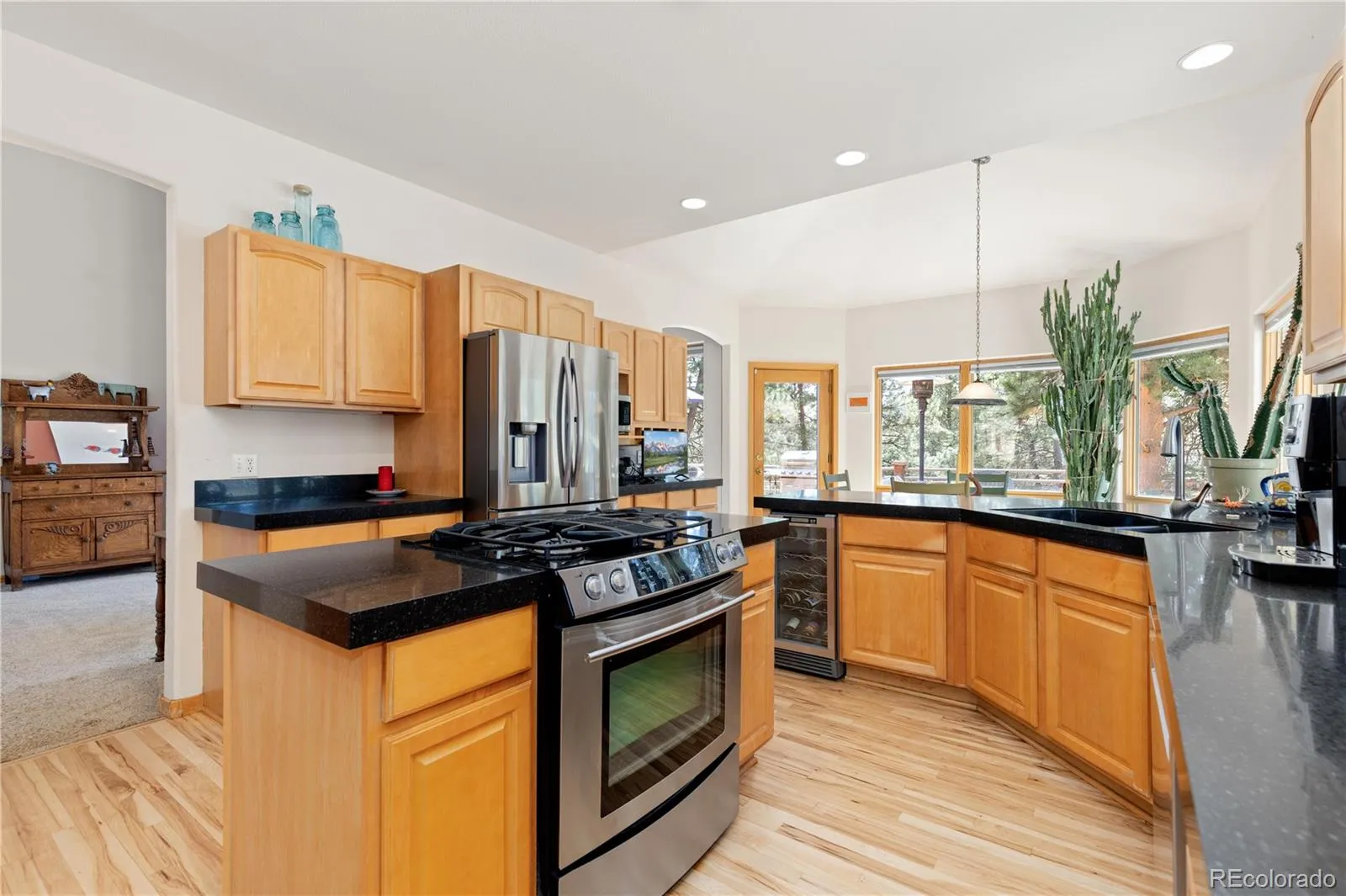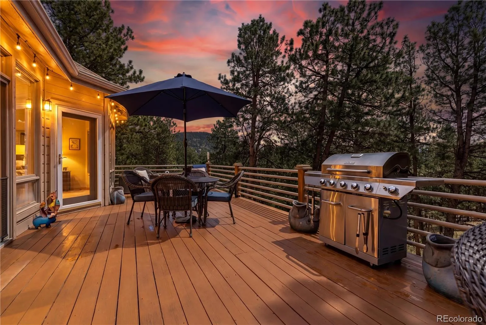 Tucked among mature pines in Evergreen, this refined mountain residence offers a rare combination of scale, functionality, and privacy. Vaulted ceilings and expansive windows draw in natural light and frame the surrounding landscape, while the main level flows seamlessly between the living room, dining area, and kitchen, anchored by a fireplace and clean architectural lines. The kitchen connects to a bright breakfast room and opens directly to the deck, creating an effortless indoor-outdoor living experience with space for dining, grilling, and relaxing in a peaceful, wooded setting. Thoughtfully laid out, the home features three distinct living areas that provide separation for entertaining, media, or quiet retreat while maintaining a cohesive feel throughout. With five bedrooms, a dedicated office, and a bonus room well-suited for a home gym, the floor plan supports both everyday living and evolving needs. The primary suite is generously scaled with large windows, treed views, and a well-appointed bath designed for comfort and function. The lower level expands the home with additional living space, including a sauna that creates a private setting for rest and recovery, 850 sqft of storage and shop area, and an additional 800 sqft crawl space equipped with a vapor barrier, offering exceptional utility and flexibility. Secondary bedrooms are well-proportioned and positioned for privacy, making them ideal for guests or extended stays. A three-car garage and extensive storage throughout add a layer of practicality, with ample space for gear, seasonal items, and more. Recent improvements include Class 4 impact-resistant shingles (2019) and a $20,000 Generac 26KW whole-home generator added in 2025, providing enhanced durability and reliability. Set on a fully fenced, treed lot with usable outdoor space and a spacious deck, the property offers privacy, natural beauty, and a true mountain setting, all within convenient reach of Evergreen Lake and local trail systems.