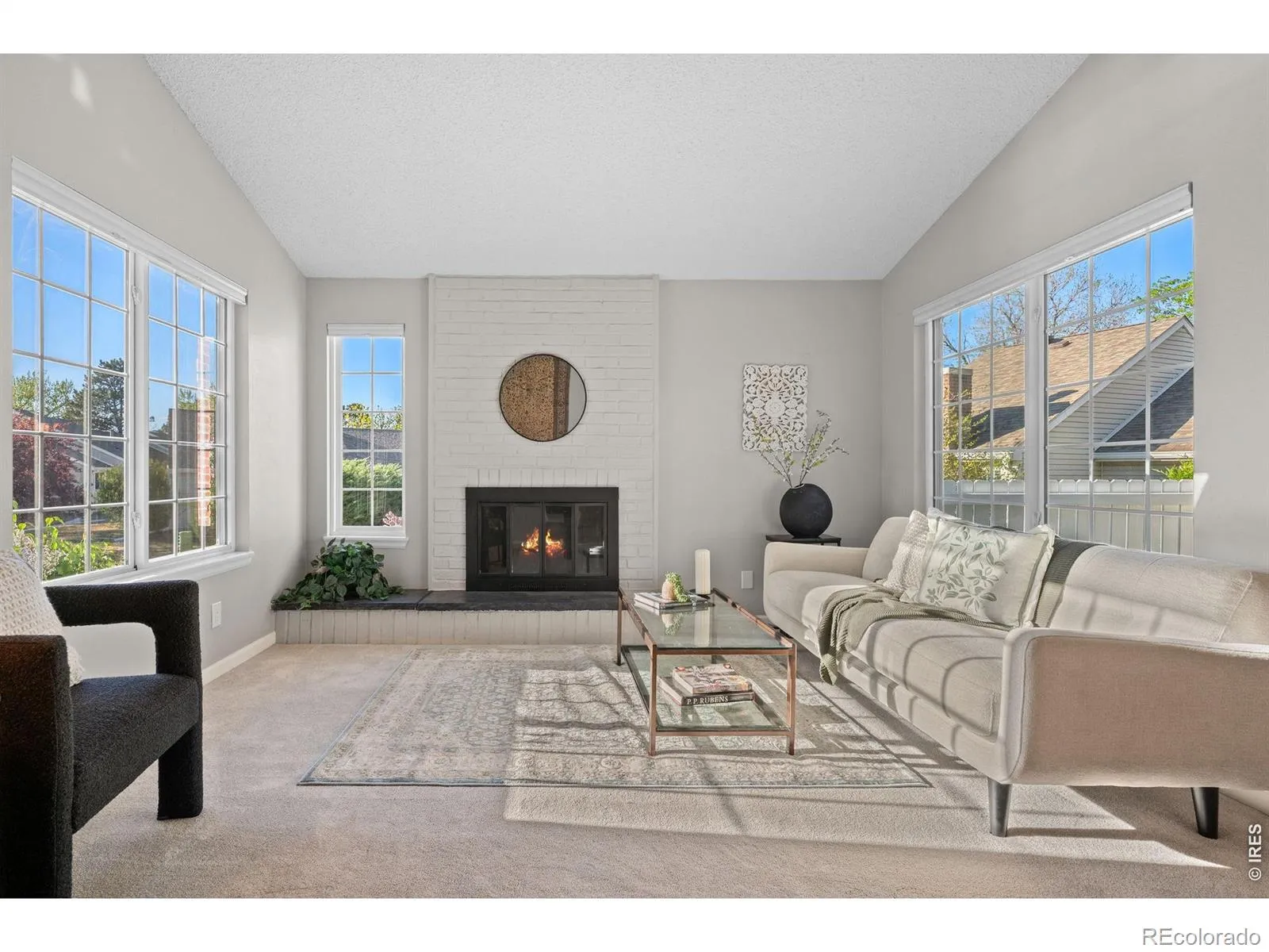 Stunning patio home in Heather Gardens 55+ with private pond and fountain views and a golf course backdrop. Enjoy a Resort-Style Lock-and-Leave lifestyle in one of the community’s most desirable and private locations. Tucked within a serene setting, this home offers incredible views of the golf course, pond, and fountain from your living room. Fully remodeled with newer carpet & paint throughout. The living and dining areas the perfect place to gather in front of the wood-burning fireplace to watch the games. The spacious kitchen highlights beautiful white cabinetry, tile flooring, & a gorgeous backsplash. Induction cooktop & cookware included. Corian countertops make hosting holiday gatherings fun and easy. The private main floor master bedroom is spacious, has two large closets, 3/4 bath with walk-in shower. Great space to relax and unwind after a long day. Down the hall to the 2nd bedroom boasts lots of natural light, also with amazing views. The full bath on the main level has a gorgeous vanity, trendy lighting, tub/tile surround. Head downstairs to the large family room a perfect place to entertain and enjoy with friends and family. Two basement bedrooms, perfect place for guests to come & enjoy privacy with a 3/4 bath with walk in shower + egress window. 4th bed is non-confirming with large closet could also be used as a workout space or office for the work from home professional. Also, tucked away is a craft room/sewing room with lots of storage for your creative side. The laundry room is conveniently located & has lots of storage space. Enjoy morning coffee on your private patio or gather in the evening to enjoy a cocktail. Easy access to open space and many amenities, 50,000 sq ft clubhouse, 9-hole golf course, pools, tennis courts, fitness center, arts and crafts studio, horseshoe pit, picnic area, gardens, attend or host a party or event in the ballroom. Rendezvous Restaurant. Experience the quiet beauty, privacy, & lifestyle this unique setting provides
