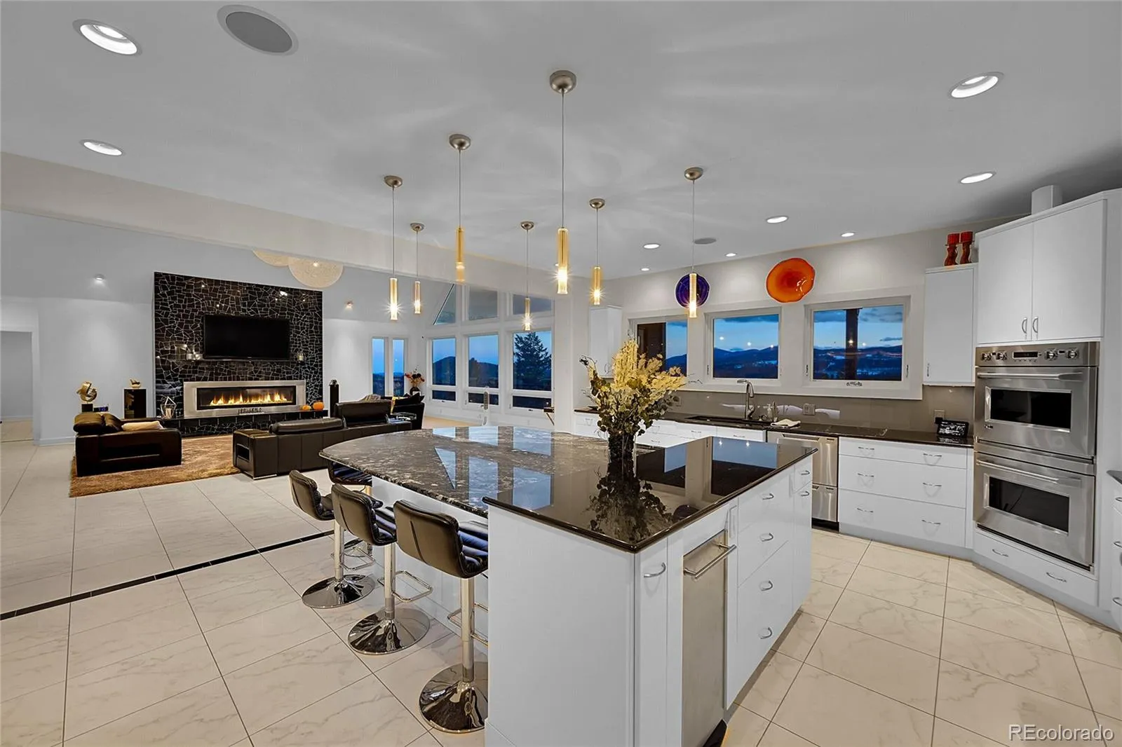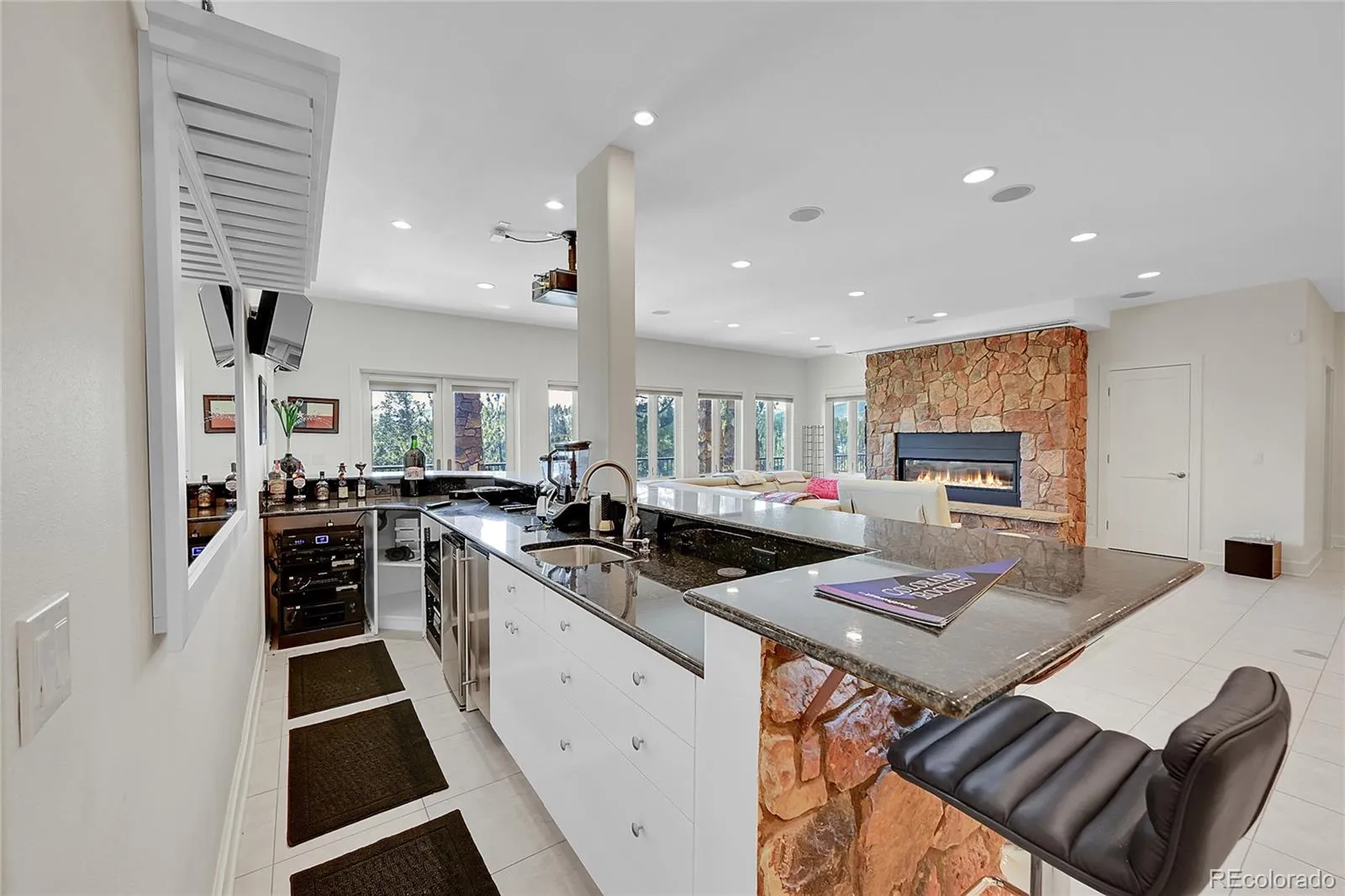 Feng Shui Designed with attention to details. Exterior is real stone from Telluride and cedar siding with stamped concrete heated front stoop. Great for entertaining with 2 large outdoor decks (upper 832s.f. and lower 648s.f.) 2 Kitchens with Crystal brand cabinets, 2 Laundry rooms, huge kitchen island with 8+ seating, Family/media room with large bar. Multi-zone Sonos system and Commercial high-speed internet throughout house, garage and decks. Whole house surge protector. 3 gas fireplaces. Warm-board brand subfloor with in-floor radiant heat, porcelain tile floors, Whole house gas generator. Primary bedroom suite has 2 bathrooms, 2 closets with 2 TVs behind vanity mirrors, air-jetted tub, steam double head shower and safe. All furniture including patio, outdoor kitchen and Art décor are negotiable. Finished 3 car garage with radiant floor heat and epoxy finish. According to the original builder, a home of this quality would cost approximately $4.5 million to build new today.