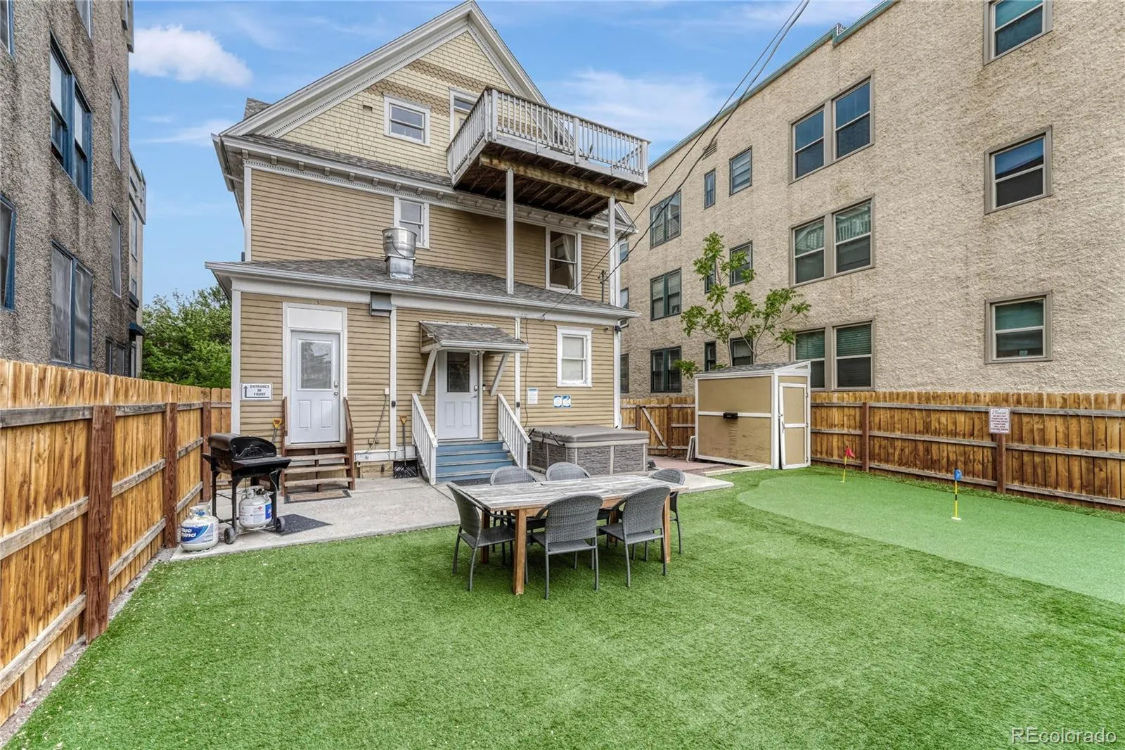 Discover Crescent Mansion – your downtown haven for family, friends, or coworkers! Enjoy spacious rooms, each with a private bathroom, ensuring a relaxed start to your mornings! Minutes from I-25, Garden of the Gods, The Broadmoor, and Cheyenne Mountain Zoo! Easy walk to downtown shops & restaurants! putting green, pool table, table soccer, & hot tub with a city skyline view! This Bed and Breakfast has been transformed into a delightful haven for your travels, whether with family, friends, or colleagues. Revel in the expansive rooms, most of which feature gas fireplaces and en-suite bathrooms. Regardless of the season, there’s plenty to do here! Unwind with some friendly competition around the pool table, engage in a game of putt-putt golf in the backyard, soak in the hot tub, and find ample space to retreat from the day’s excitement. This unit comprises of the entire 1st and 2nd floors complete with the kitchen, living room, on-suite balcony, 7 bedrooms, 7 bathrooms and all which can be accessed by a private entrance from the front of the house, or back of the house! The 3rd floor is rented out separately with it’s own private entry from the shared laundry room at the back of the house.