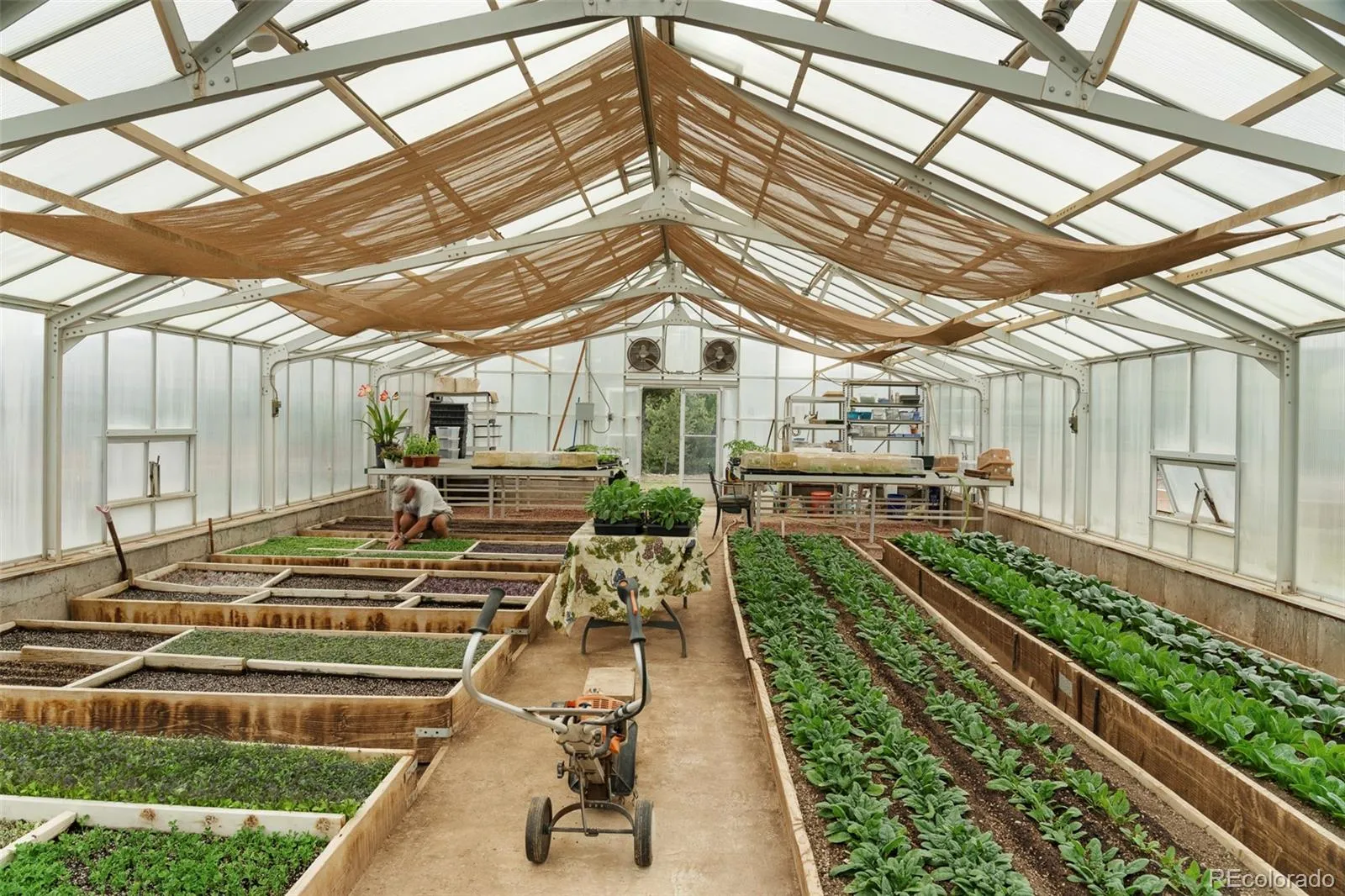 Outdoor amenities abound — including three fenced, predator-deterrent chicken coops, four storage sheds, one loafing shed, two large greenhouses, and a walk-in produce freezer. A 40×60 metal outbuilding with two bays and 20-foot garage doors easily accommodates a tractor and several trucks or pieces of equipment. Security and privacy are ensured by two automatic, weight-controlled metal access gates.
