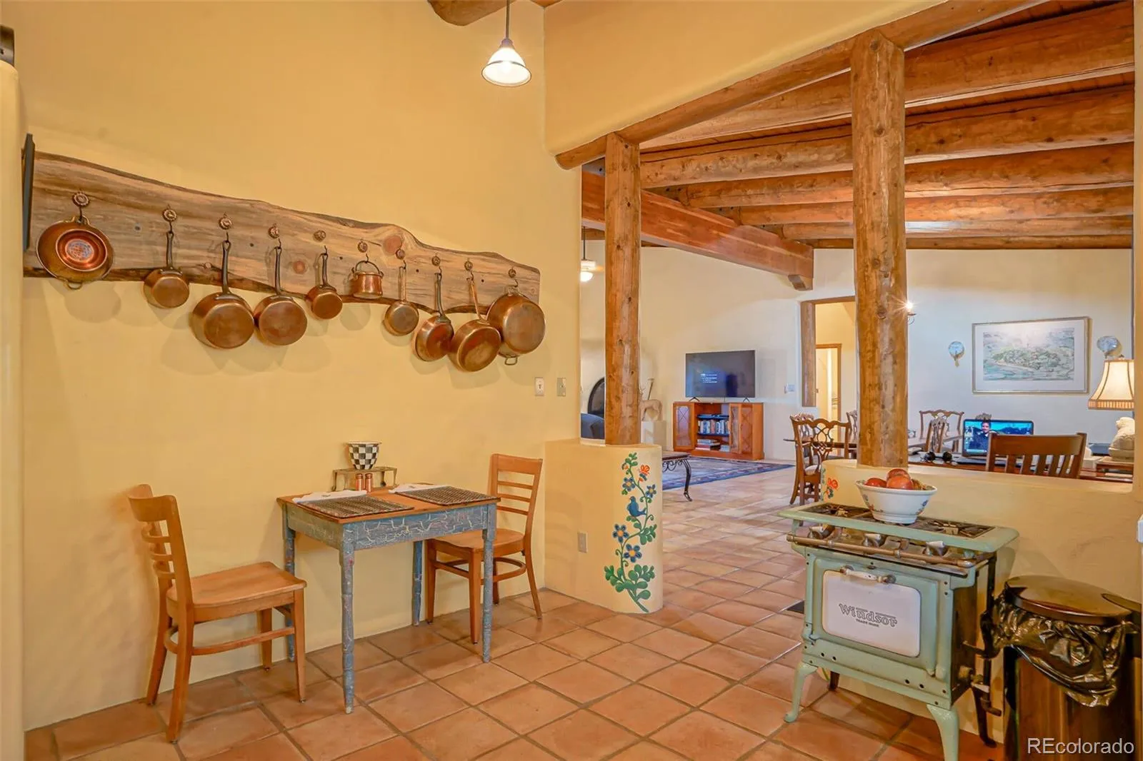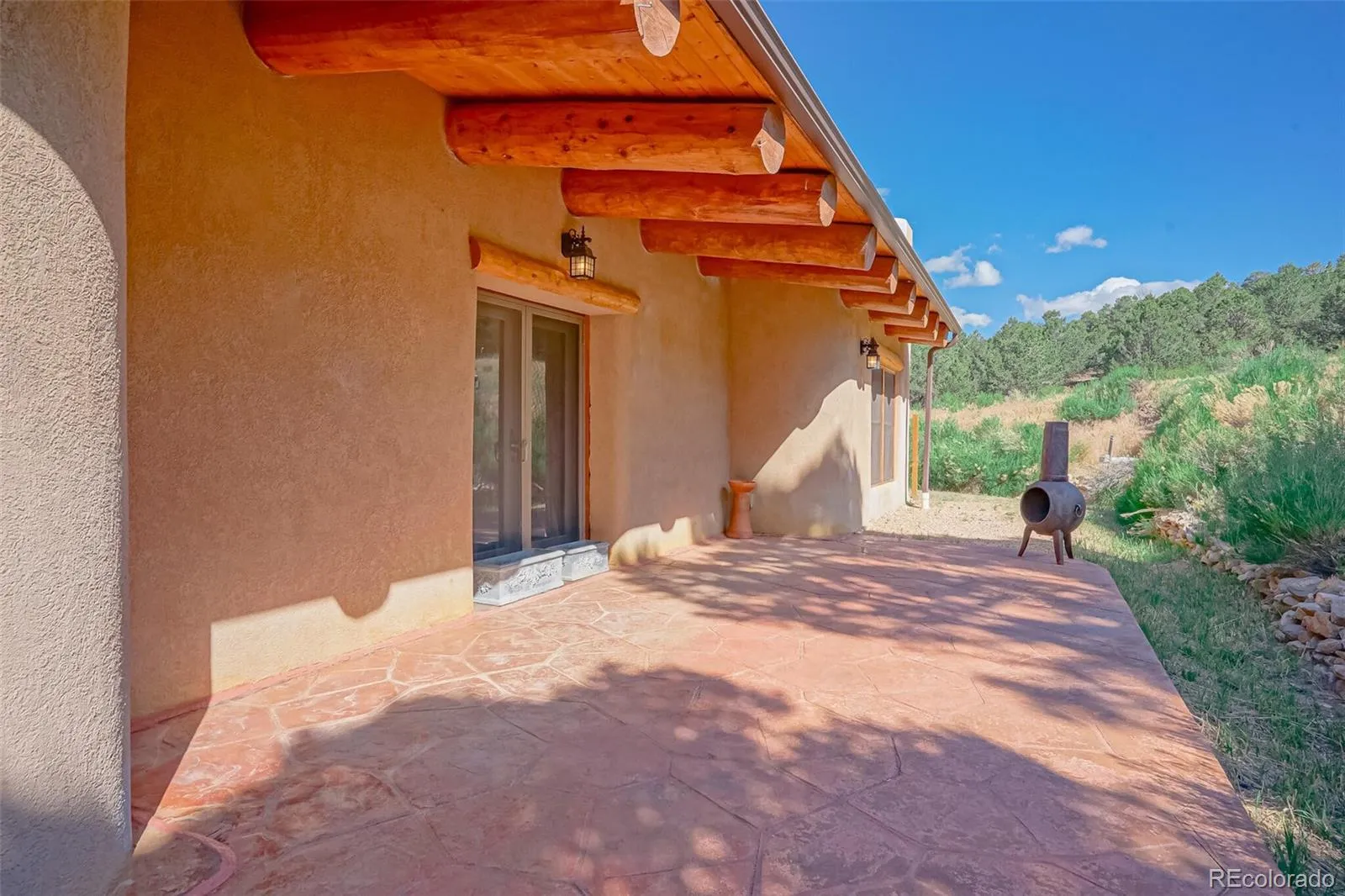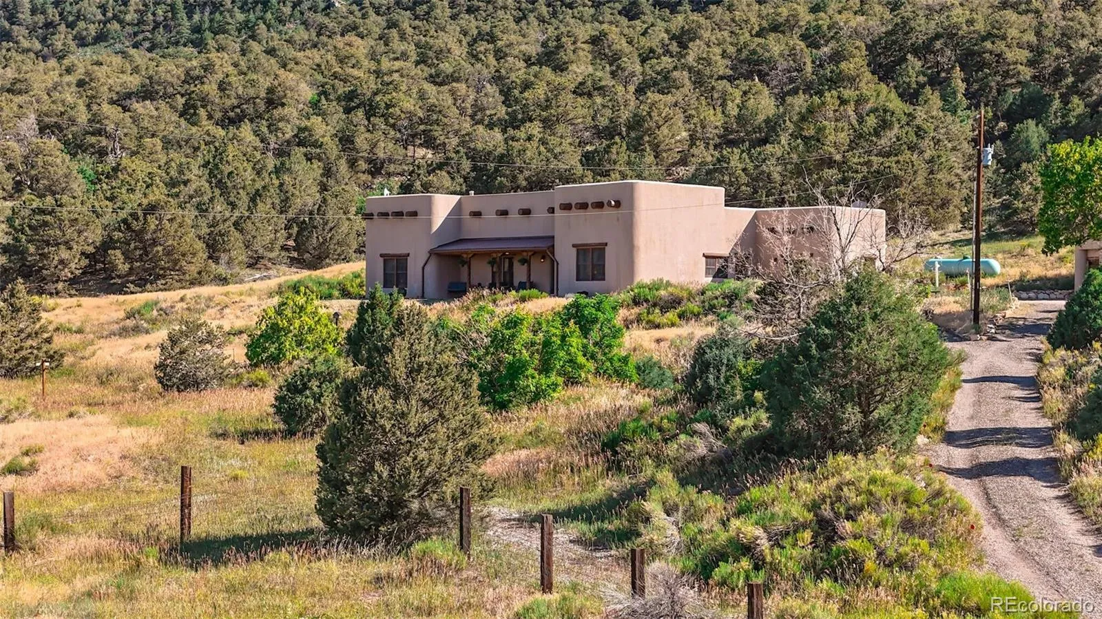 Enjoy magnificent views of the Greenhorn, Big Sheep, and Little Sheep Mountains from this 3300+ sq. ft. Southwestern custom adobe/rammed earth home. You will find a beautiful blend of rustic charm and modern amenities (with high speed internet to boot!) Featuring log vigas, two-foot thick walls, and special touches throughout, the property includes in-floor radiant heat, French doors, and stone landscaping leading to gardens and an orchard. Thoughtfully laid out with care, the great room with a Kiva fireplace opens to a formal dining area highlighted by a custom chandelier. The kitchen boasts a beautiful antique replica stove and a quaint eat-in nook. Three expansive bedrooms feature vaulted T&G ceilings and log vigas, while the library and office area open to the primary suite. The fireproof roof, strong well with two additional cisterns, and a rain collection system ensure reliability for years to come.NEW top of the line Navien Furnace and water heater installed providing comfort and ease.