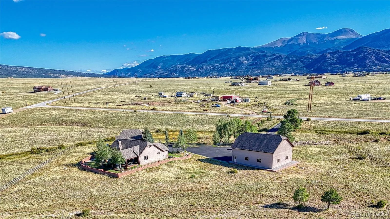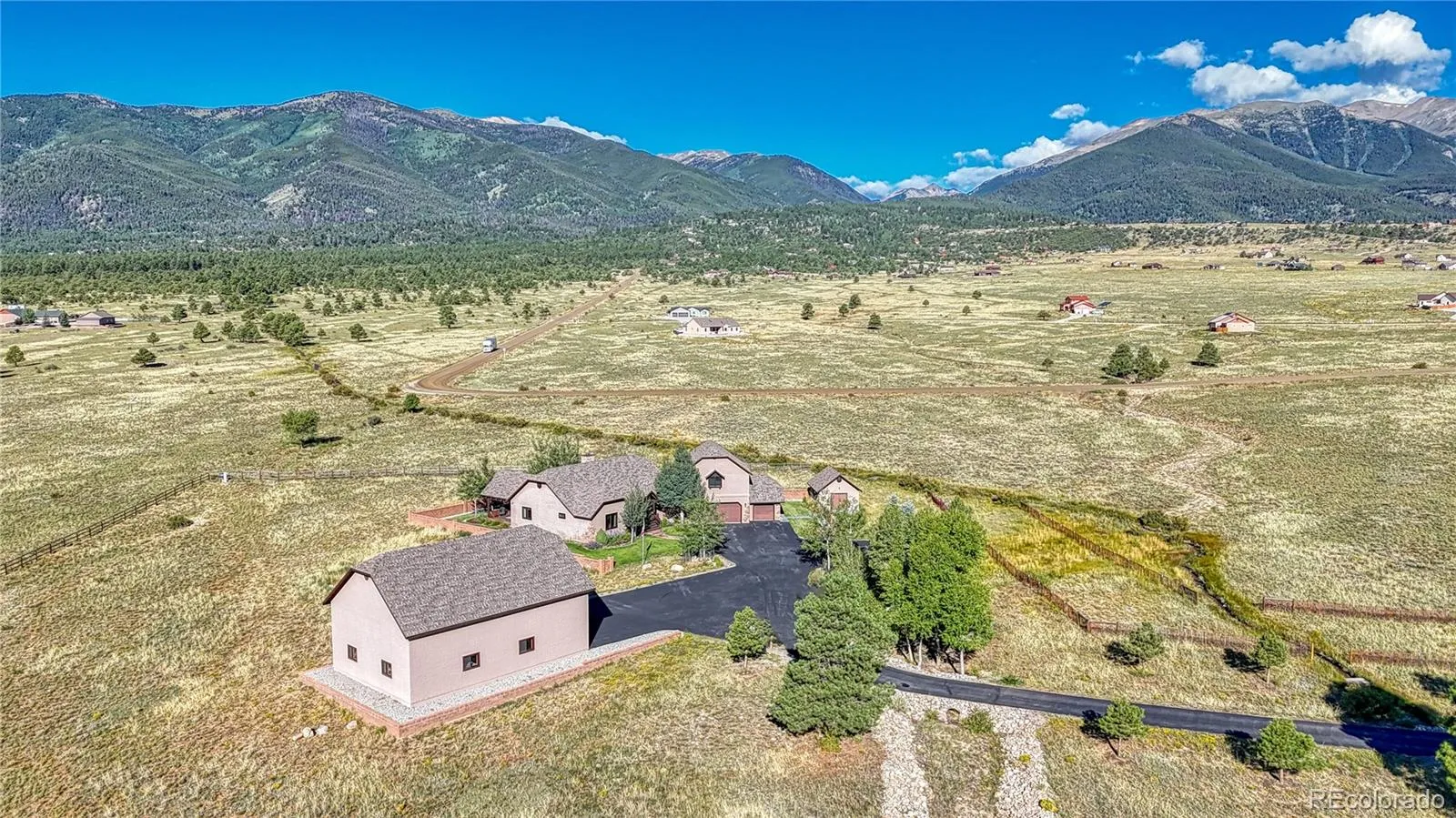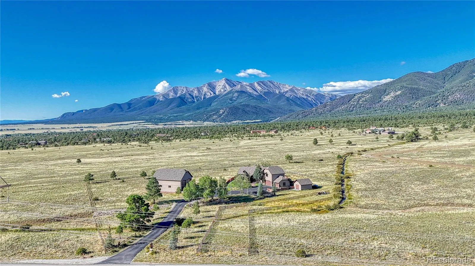 There is so much to love about this beautiful mountain home situated on 4.51 acres with great mountain views! From County Road 361, you’ll drive down the long, smooth paved driveway to the impressive array of buildings. Wake up every morning and be greeted by stunning Mt. Princeton. Easy entertaining in this spacious, open concept home. The kitchen offers granite counter tops, an island providing tons of counter space, extra storage, newer dishwasher, microwave and refrigerator. The living room boasts tongue and groove ceilings, and a cozy wood burning stove. The primary bedroom on the main floor has a 5-piece en-suite bathroom. The guest bedroom and 3/4 guest bath are on the main level, and there is an additional primary bedroom with full en-suite bathroom upstairs! Enjoy the expansive, partially enclosed back patio. Fully insulated 1,800 square foot detached garage can accommodate two RVs, and is equipped with two 14′ doors, and two 220 volt plugs. Other attractive features include a 2 car attached garage, and an additional 1 car attached garage. There’s a great garden shed, and a 9-zone underground irrigation system for the lovely yard. Only 7 minutes from town, easy access to hiking, camping, fishing, hunting, disc golf, shopping, and within an hour from skiing. The information contained herein should be verified after buyer contracts to buy the property.