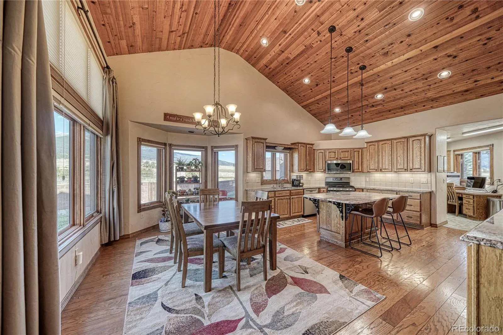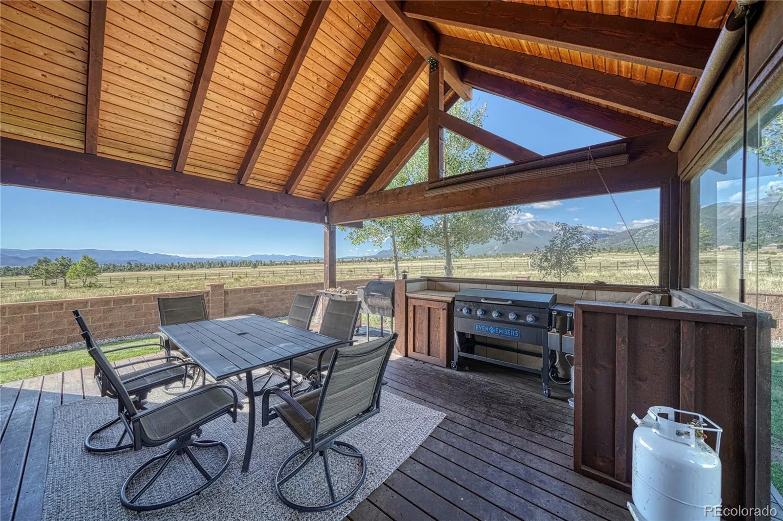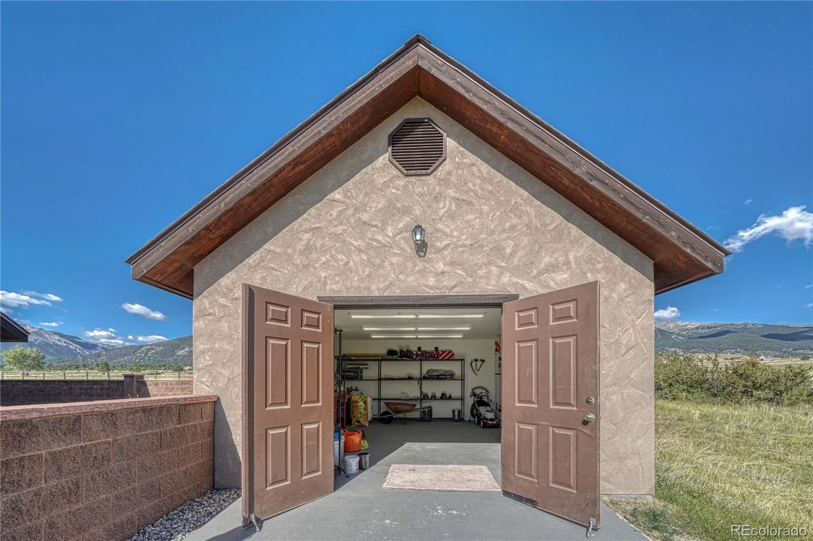 There is so much to love about this beautiful mountain home situated on 4.51 acres with great mountain views! From County Road 361, you’ll drive down the long, smooth paved driveway to the impressive array of buildings. Wake up every morning and be greeted by stunning Mt. Princeton. Easy entertaining in this spacious, open concept home. The kitchen offers granite counter tops, an island providing tons of counter space, extra storage, newer dishwasher, microwave and refrigerator. The living room boasts tongue and groove ceilings, and a cozy wood burning stove. The primary bedroom on the main floor has a 5-piece en-suite bathroom. The guest bedroom and 3/4 guest bath are on the main level, and there is an additional primary bedroom with full en-suite bathroom upstairs! Enjoy the expansive, partially enclosed back patio. Fully insulated 1,800 square foot detached garage can accommodate two RVs, and is equipped with two 14′ doors, and two 220 volt plugs. Other attractive features include a 2 car attached garage, and an additional 1 car attached garage. There’s a great garden shed, and a 9-zone underground irrigation system for the lovely yard. Only 7 minutes from town, easy access to hiking, camping, fishing, hunting, disc golf, shopping, and within an hour from skiing. The information contained herein should be verified after buyer contracts to buy the property.