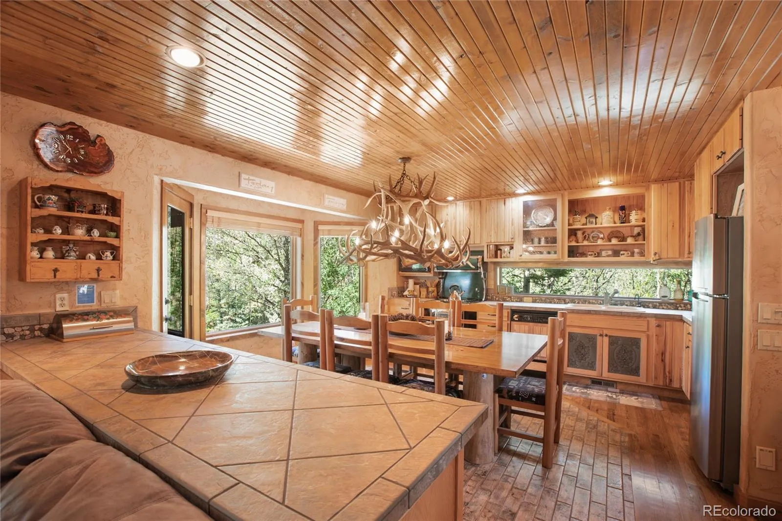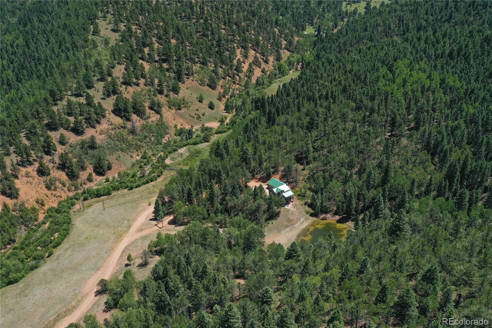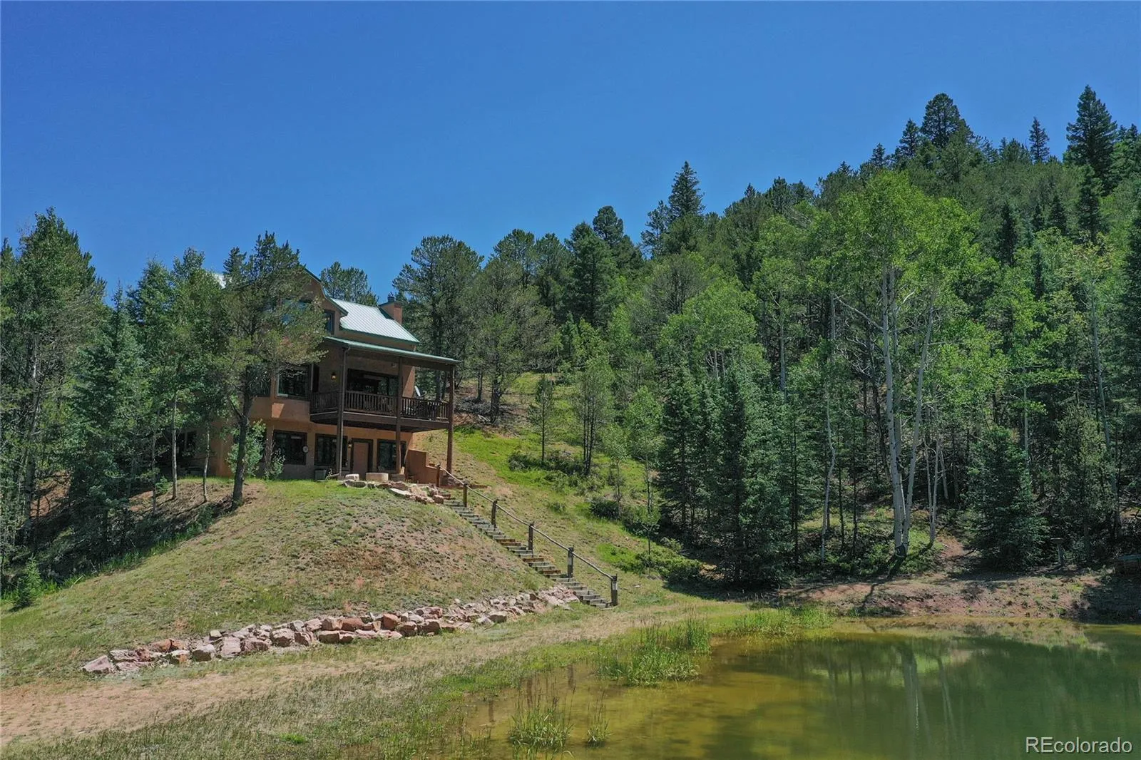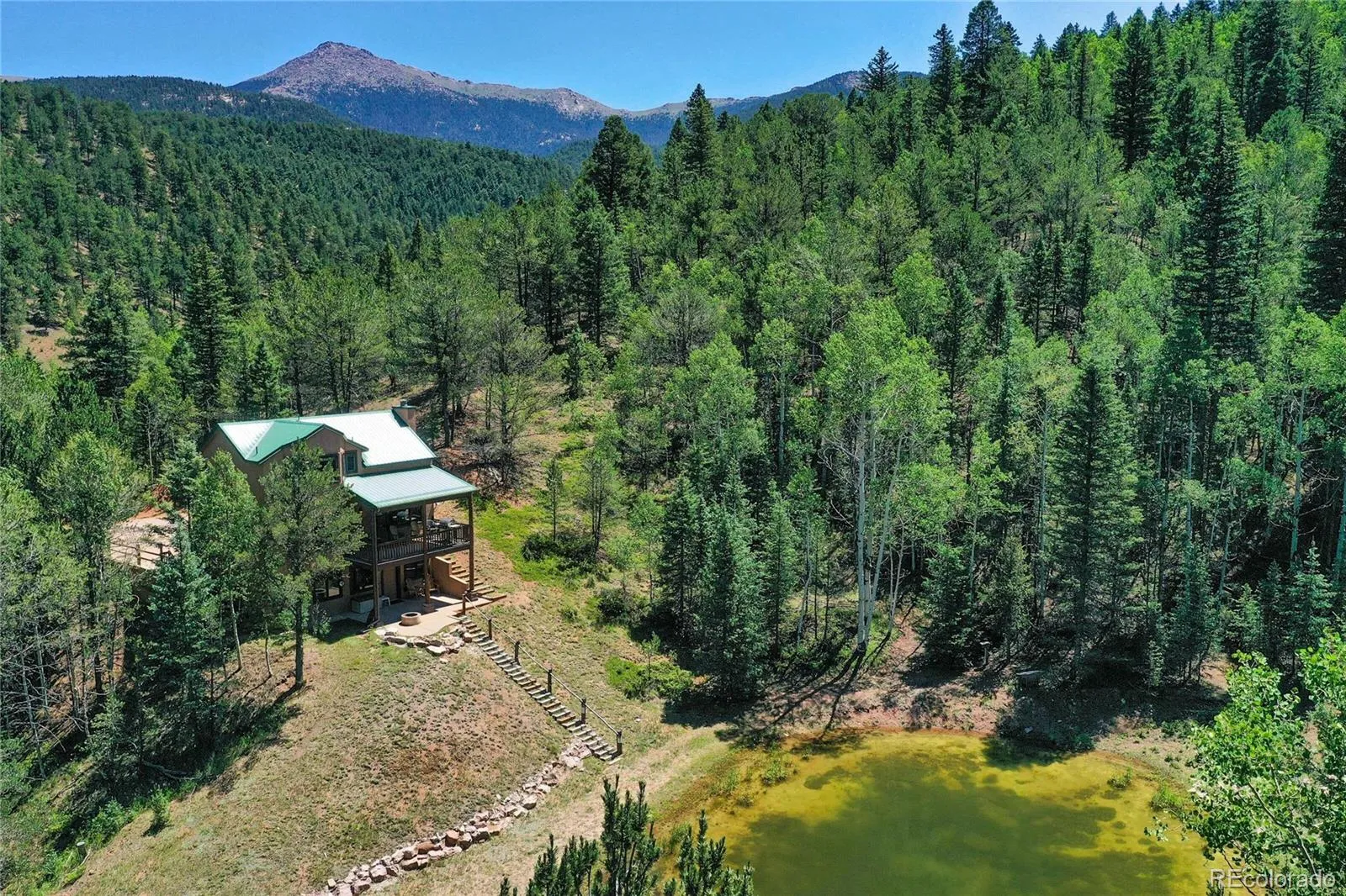Beautiful custom home on 35 acres located one hour west of Colorado Springs. This mountain gem offers complete privacy, hidden in the forest, overlooking a spring fed pond. The home was originally constructed in 1999 by a custom home builder from Colorado Springs for personal weekend use. Top of the line construction materials were used throughout. There has been very little occupancy over the past 25 years, so home shows like new throughout.