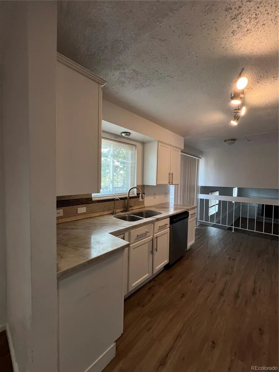The heart of the home is the cheerful and efficient kitchen, equipped with Arizona stone countertops, making meal preparation both enjoyable and effortless. The laminate wood flooring throughout the house adds a touch of elegance and ease of maintenance.