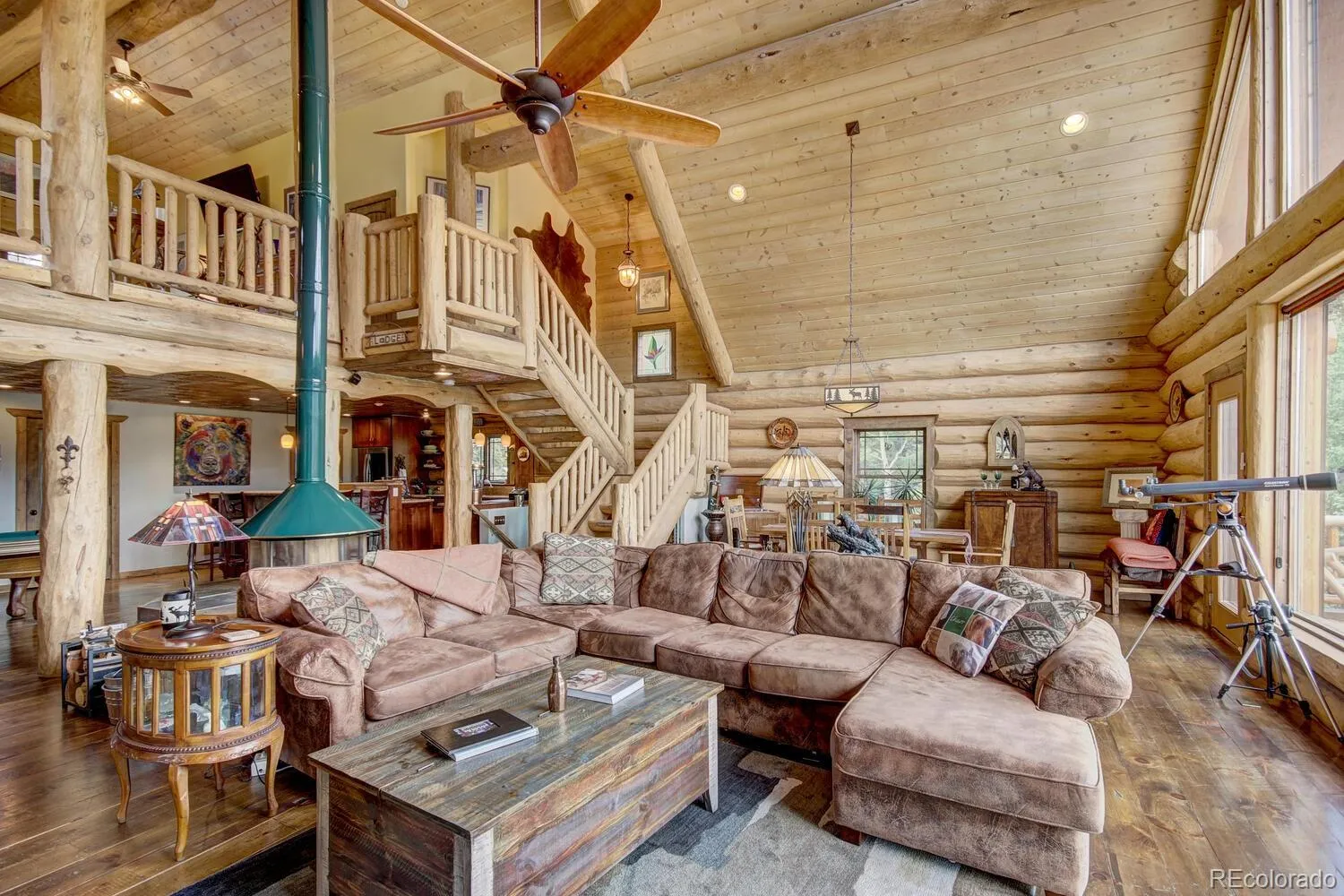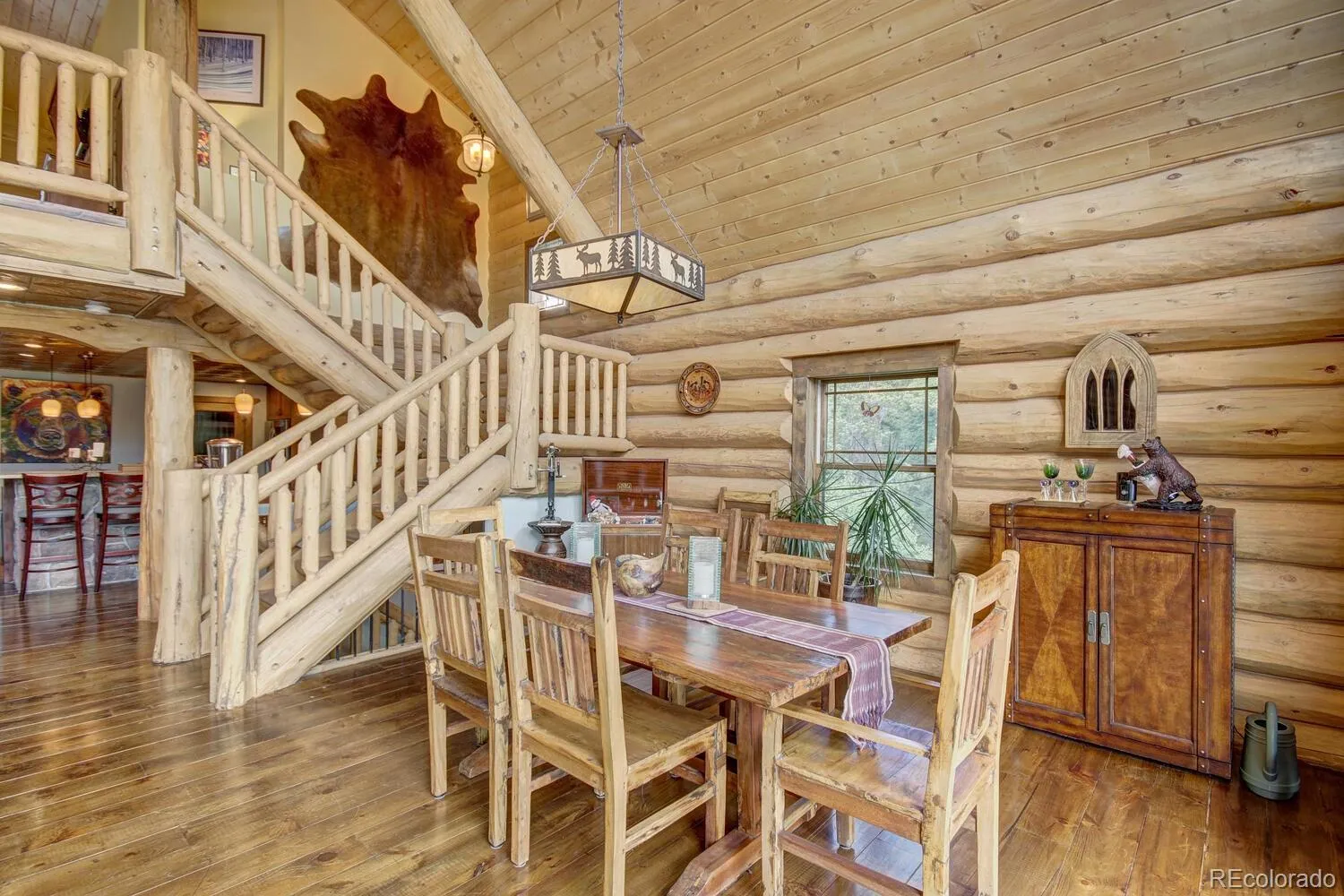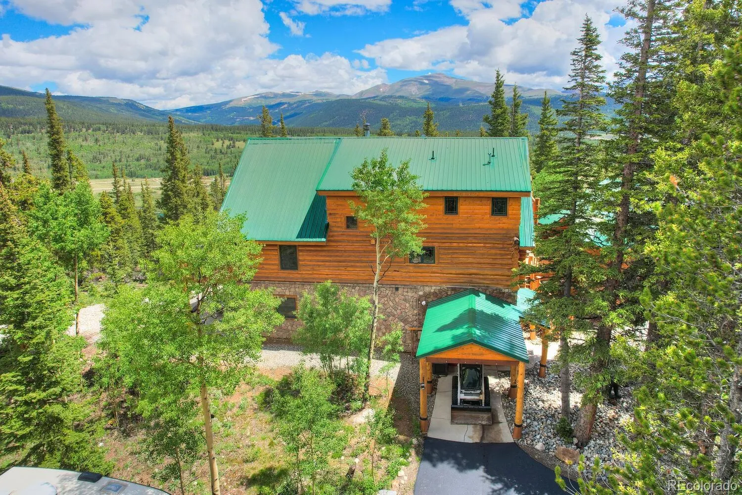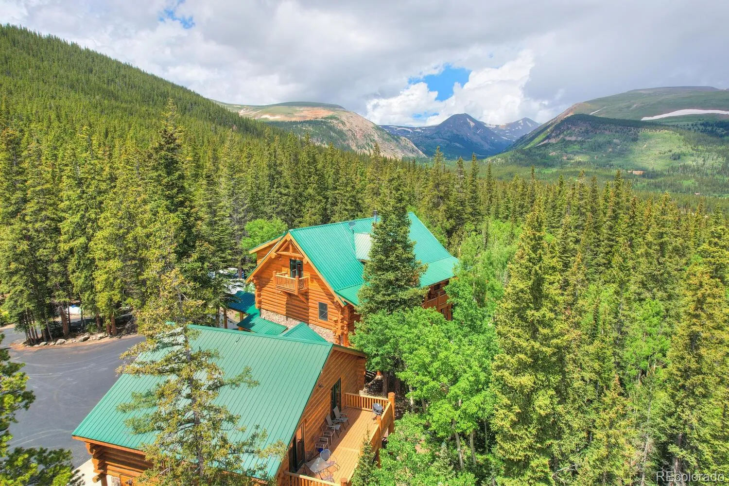 Welcome to “The Lodge”! One of the most spectacular properties located in the Alma/Fairplay area with million dollar views and only 25 minutes to Breckenridge! This gorgeous log home was built with 12′-14′ custom hand hewn logs and sits on 18 very private wooded acres. The pride of ownership really shines through! The main house is 3bd/3bth along with a 2bd/1bth guest house located above the garage with it’s own private entrance and deck. There are a multitude of options on how to enjoy this fabulous mountain home. Take in the spectacular views from the floor to ceiling windows, the large wrap around deck and hot tub! Enjoy the soaring vaulted ceilings in the spacious living/dining room area and the cozy European style wood burning fire place! It’s perfect for entertaining with a game room and wet bar that sits just off of the fantastic chef’s kitchen with granite countertops and large island. The spacious primary suite is to die for with vaulted ceilings, walk in closet, 5 piece bathroom with jetted tub and steam shower, and two private decks to enjoy your morning coffee. So much thought went into building this home with wood and tile floors throughout, mudroom/breezeway, in-floor radiant heat fueled by propane or wood burning boiler, lots of interior storage, 3 car attached garage along with an additional garage for storage and toys, paved driveway, locking automatic gates at the driveway. Opportunity knocks for the discriminating Buyer who wants a private estate in the mountains with so many recreational opportunities within minutes. Adjacent 26 acre parcel with Mosquito Creek running through it also available for $549K. Furnishings in photos have been removed and replaced with different furnishings. Strong rental history!!