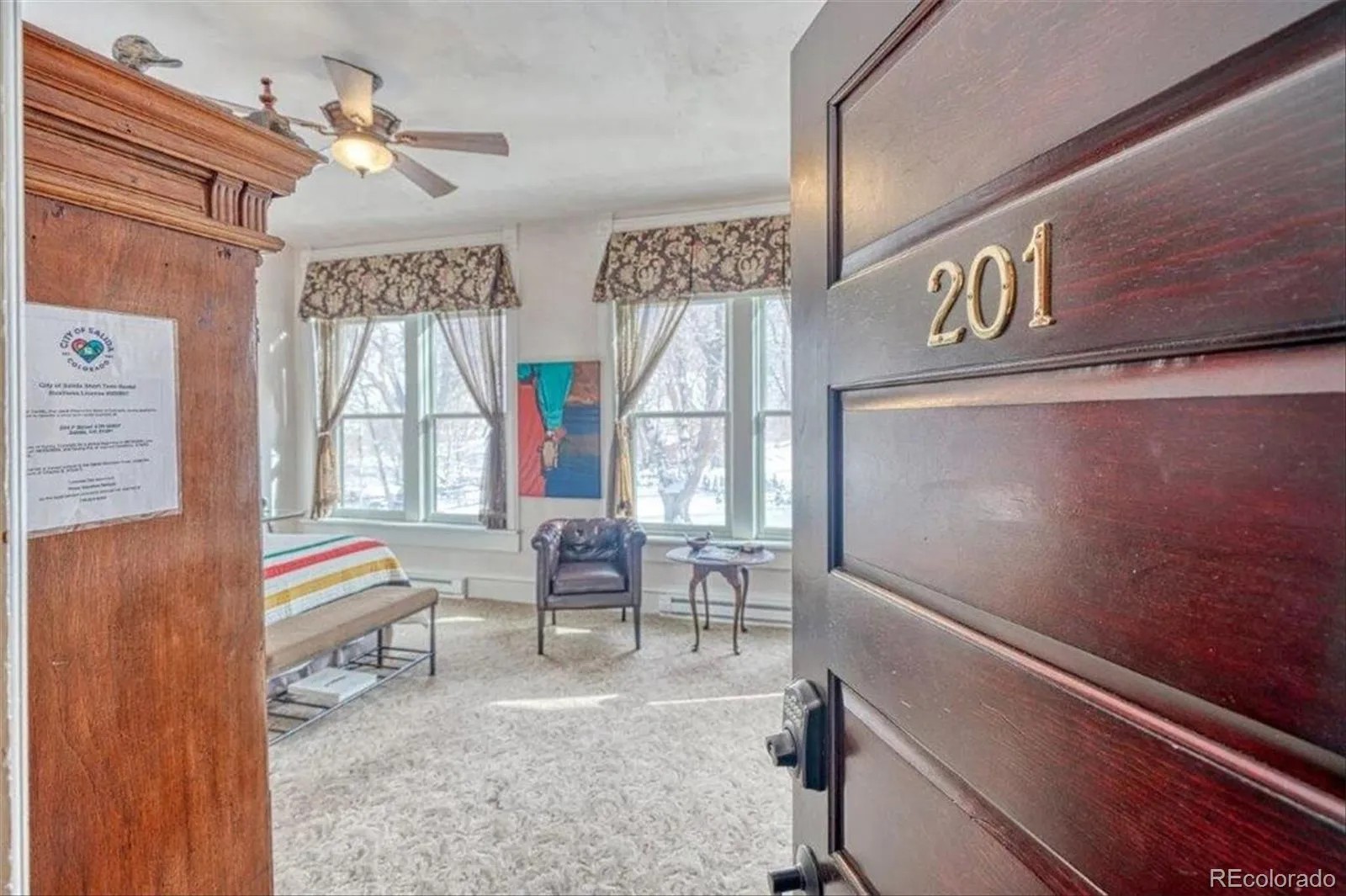 THE PALACE HOTEL CONDOMINIUMS, UNIT #201, RENOVATED WHILE MAINTAINING THE WONDERFUL HISTORICAL FEATURES, IS IN THE PERFECT LOCATION IN THE HEART OF DOWNTOWN SALIDA…STEPS TO THE ARKANSAS RIVER, NEXT TO BEAUTIFUL RIVERSIDE PARK, AND EASY WALKING DISTANCE TO ALL THE UNIQUE STORES, RESTAURANTS, BARS, BREWERIES & AMBIANCE OF THIS AMAZING COLORADO MOUNTAIN TOWN! THESE MUCH SOUGHT-AFTER PROPERTIES DO NOT BECOME AVAILABLE VERY OFTEN! YOU WILL FALL IN LOVE WITH THE CHARM, ELIQUENSE, HISTORY, & IMPECCABLE CONDITION OF THIS MAGNIFICENT BUILDING! UNIT 201 IS FILLED WITH INCREDIBLE TONS OF NATURAL LIGHT BEAMING IN FROM ALMOST FLOOR-TO-CEILING WALL OF WINDOWS FACING SOUTH & EAST….VIEWS FROM EVERYWHERE IN THIS GORGEOUS LOCATION INCLUDING THE POPULAR S MOUNTAIN! #201 COMES FULLY FURNISHED & IS TURN-KEY CONDITION WITH A QUEEN-SIZED BED, LEATHER CHAIRS, BEAUTIFUL ONE-OF-A-KIND AMOIRE & END TABLES, KITCHEN TABLE & CLASSIC CHAIRS & MORE…SO COMFORTABLE BUT VERY CHARMING! THE KITCHEN HAS ALL THE ESSENTIALS THAT YOU WOULD WANT TO PREPARE SPECIAL MEALS BUT IF NOT YOU ARE STEPS AWAY FROM MANY DIFFERENT DINING OPTIONS THAT HISTORIC DOWNTOWN SALIDA HAS TO OFFER! THE COMMON AREAS OF THE BUILDING ARE MAINTAINED AS THEY WERE ORIGINALLY FINISHED WHICH IS VERY ENCHANTING & WONDERFULLY FINISHED DETAILS! SALIDA OFFERS OPPORTUNITIES FOR MANY ADVENTURES…HIKING, BIKING, RAFTING & SURFING THE SCENIC RIVER, FLY-FISHING, HOT SPRINGS, SKIING POPULAR MONARCH MOUNTAIN, SIGHTSEEING OR EVEN PLAYING A ROUND OF GOLF….VERY DOG-FRIENDLY TOWN! THIS IS THE ONE YOU HAVE BEEN WAITING FOR…CURRENTLY BEING USED AS A SHORT-TERM RENTAL BUT COULD BE A LONG-TERM RENTAL OR A PRIVATE SPECIAL MOUNTAIN GETAWAY! CHECK FOR DETAILS FOR RENTAL USE WITH THE CITY OF SALIDA! WELCOME HOME TO A VERY UNIQUE & UPSCALE PROPERTY THAT WILL RELAX & ENERGIZE YOUR SPIRIT! THIS IS A 12+ & HAS BEEN MAINTAINED IN TOP CONDITION & IS SQUEAKY CLEAN!