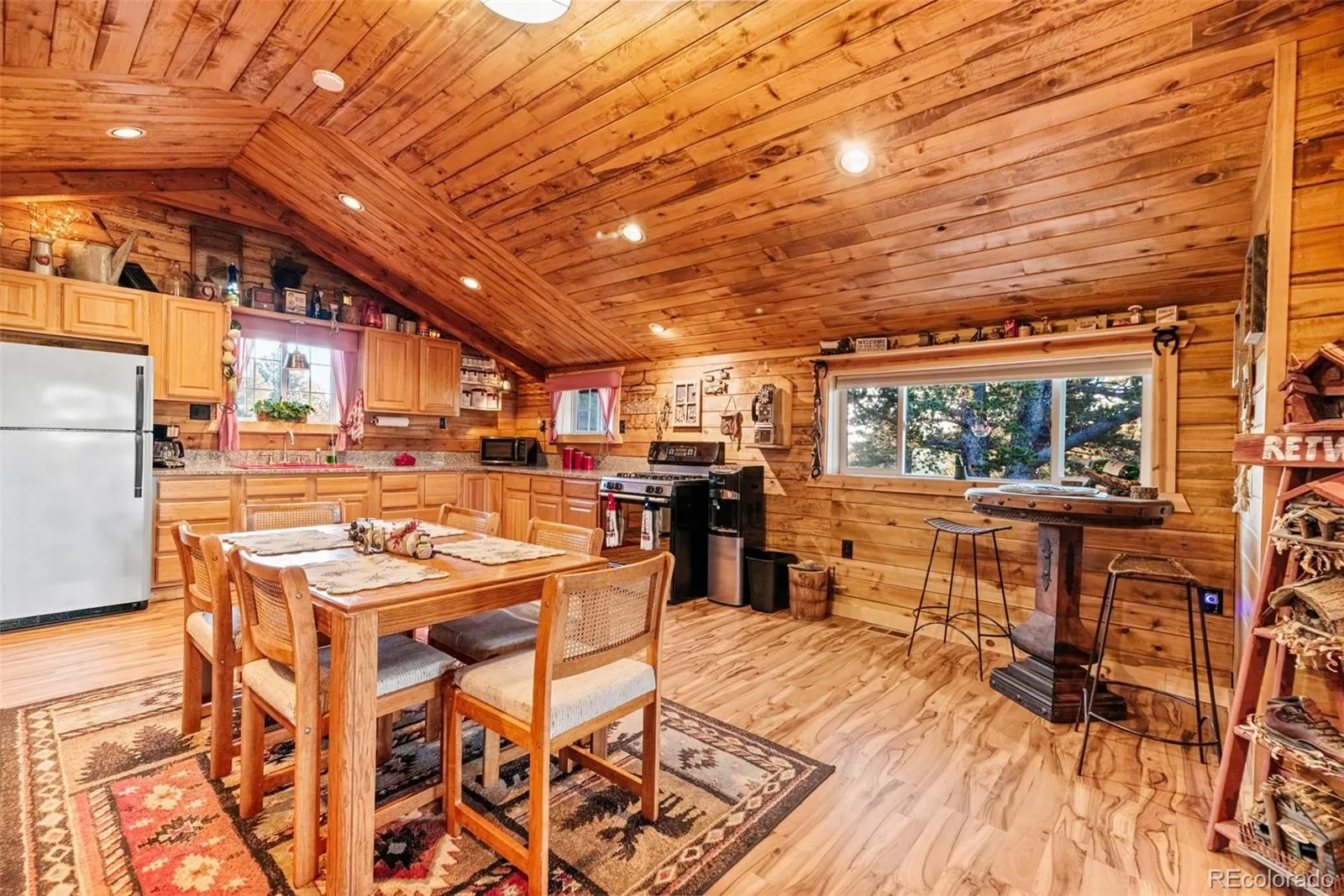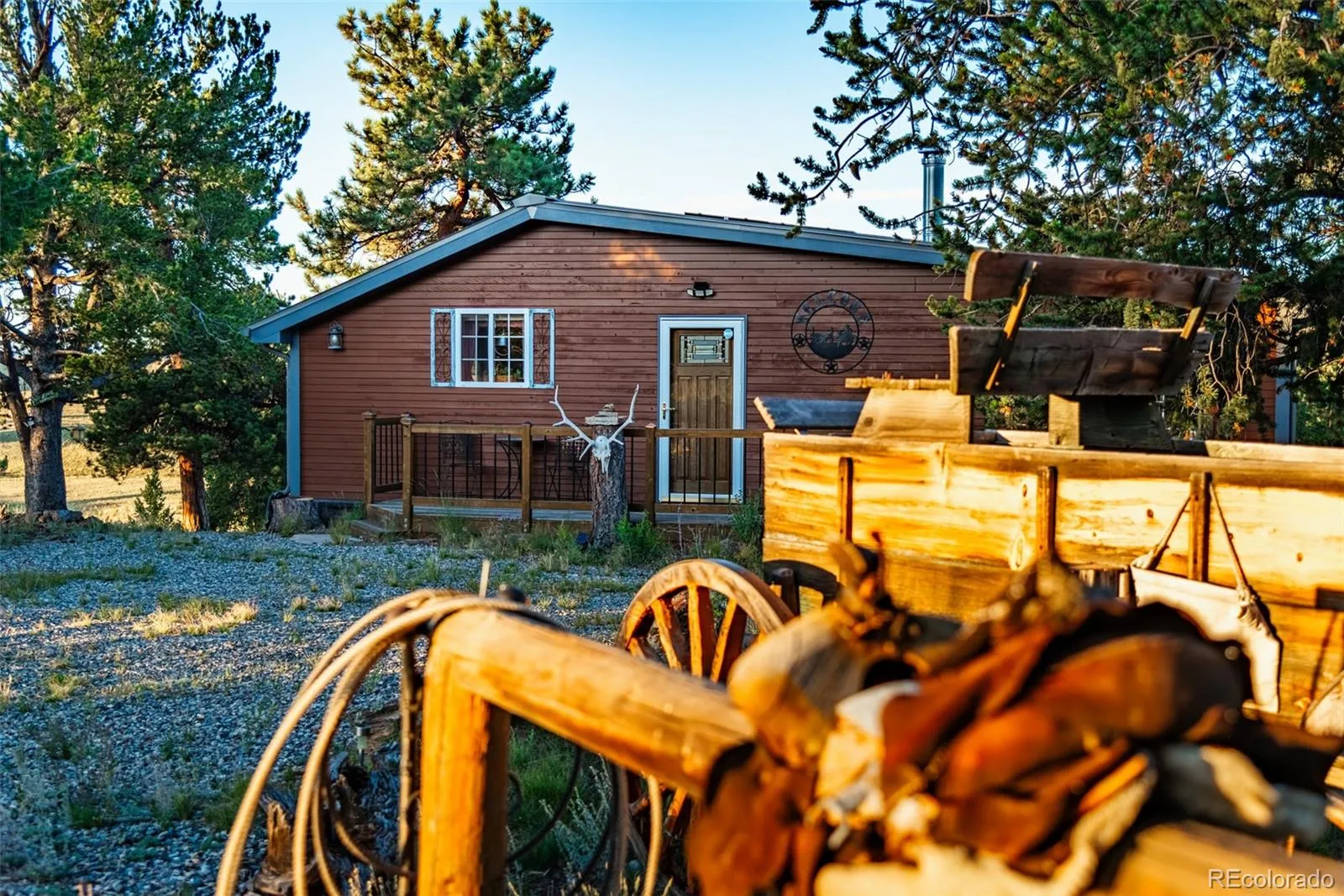This charming cabin in the woods on 4+ beautifully wooded acres with expansive mountain and valley views is more than ready for you to move in and start enjoying the mountains. The inside of the home has tongue and groove ceilings, an open living space, an upgraded kitchen with plenty of cabinets and granite counters, two roomy bedrooms, and 2 baths. The home and land have been enhanced beyond words. There is a new metal roof and insulation. Washer/Dryer hookups have been installed, so this could easily be a full time home. The home is on the power grid, yet the owners have installed a solar system that will power the entire place. The well pump is brand new and there is an additional 100 gallon water storage tank. The new furnace and two wood burning stoves to keep you toasty warm all winter. There are two decks, one on ground level at the front entrance, and one on the back to sit and take in the views. The property is pristine as a park with a gravel circular driveway for ultimate convenience. Located at the end of a quiet Cul-De-Sac, the acreage is fully fenced with a beautiful, custom gate and entry. The property has been completely mitigated, and a cozy fire pit and seating area are out on the hill behind the house. With over 120 thousand dollars in upgrades and improvements, this charming cabin will become your legacy. This cabin is a must see.