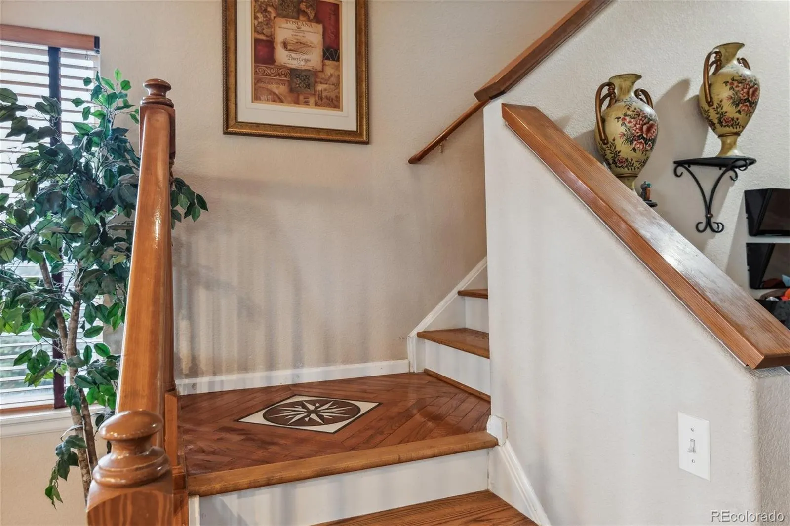 You’ll be greeted by a grand two-story entry with vaulted ceilings, tile and hardwood flooring, graceful arches, and stunning stained glass that bathes the foyer in warm, inviting light. The kitchen, heart of the home, flows into the family room with a gas fireplace, and also connects via the back staircase leading upstairs. Dual islands, a built-in desk, breakfast nook, bar seating, plus access to a walk-in pantry and super spacious mudroom give you plenty of function and style.