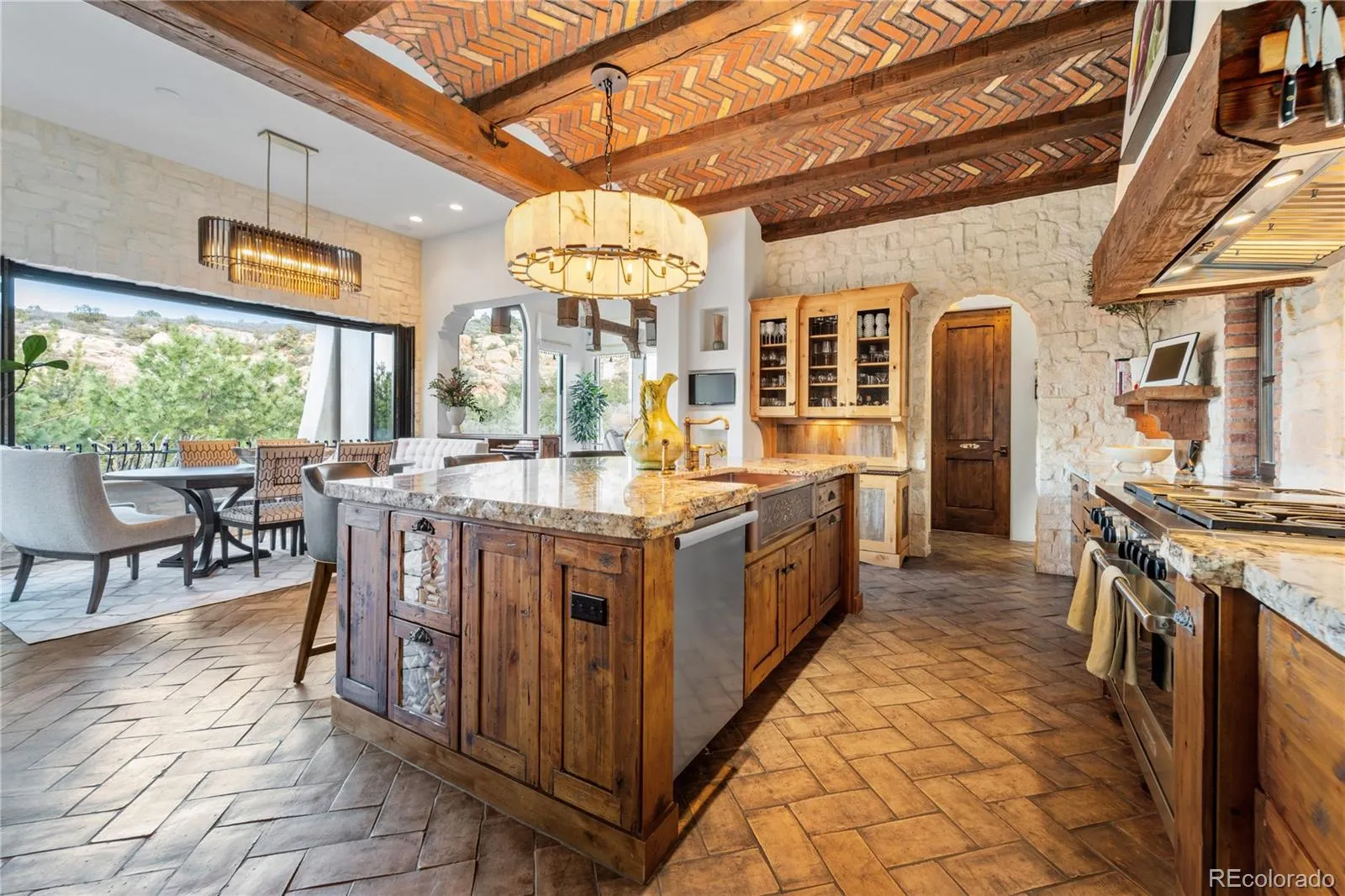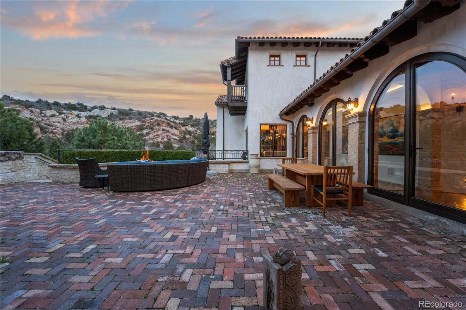 A Spanish Mediterranean masterpiece awaits within the exclusive gates of The Ravenna Country Club, where authentic lime plaster architecture meets Colorado’s dramatic red rock landscape. This award-winning custom estate, “Vinero en el Cañón del Río,” commands over 10,000 square feet of sophisticated living space featuring museum-quality craftsmanship and premium imported finishes. An enclosed courtyard reveals a stunning patio with Naples-imported wood-fired oven and panoramic Dakota Hogback vistas. The crown jewel wine cave, meticulously crafted with temperature control and custom racking, earned Project of the Year recognition. Four luxurious bedroom suites plus attached casita, multiple entertainment spaces, and full pub-style bar create an unparalleled sanctuary within this premier private club community offering championship golf and world-class amenities.