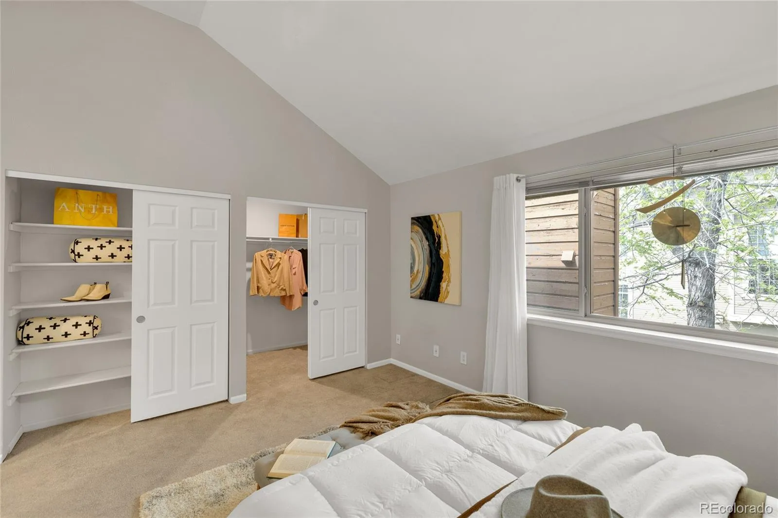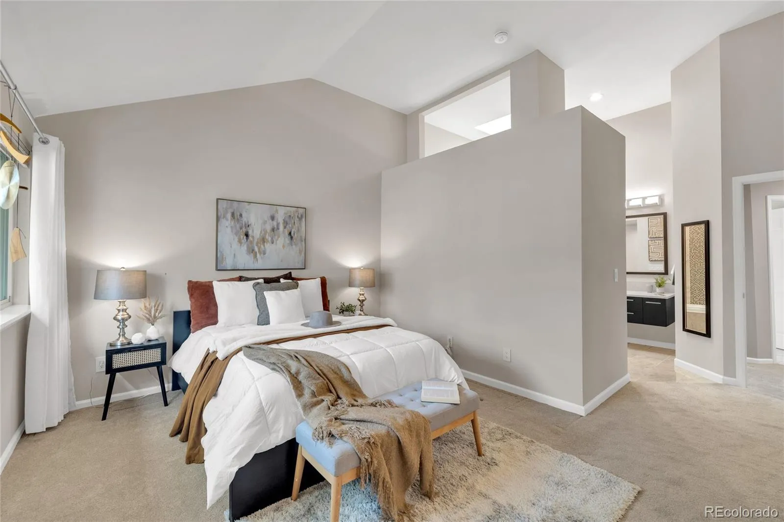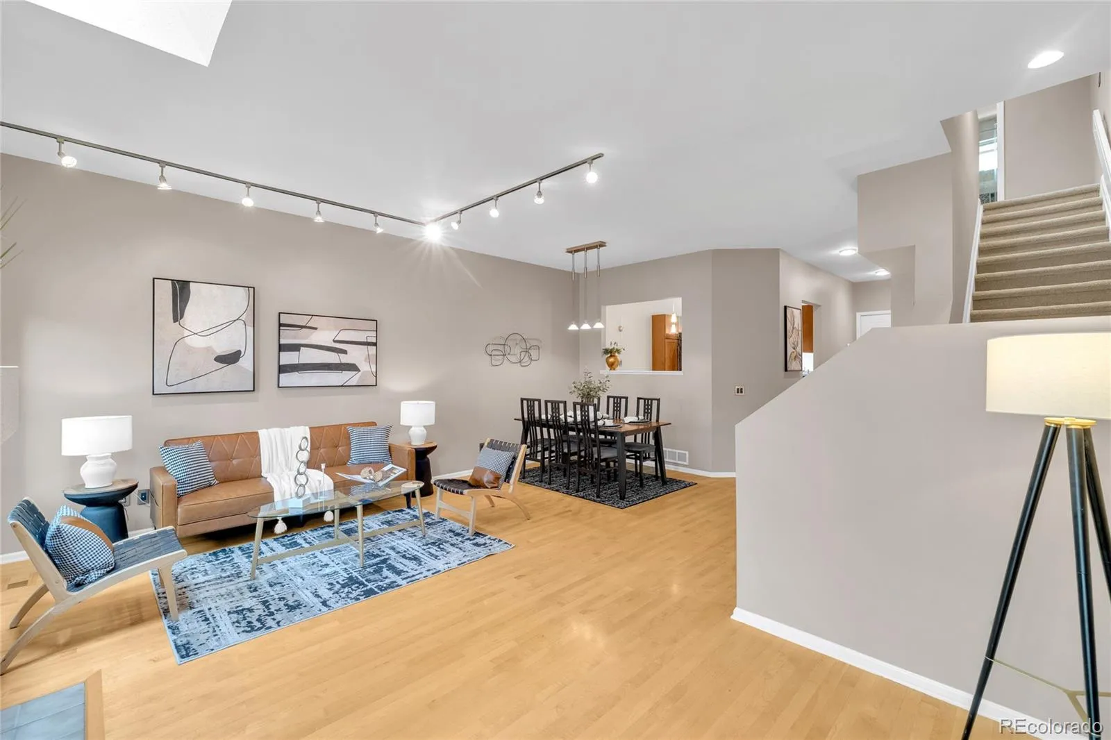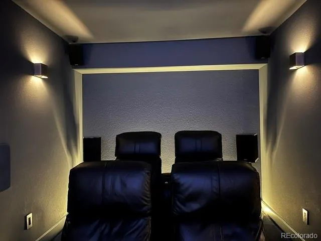 This updated Centennial townhome is move-in ready with an open, airy layout, vaulted ceilings and skylights that flood the space with natural light.The living area, anchored by a wood burning fireplace and warm wood floors, flows into a formal dining space for family dinners. The kitchen features granite counters, stainless steel appliances and has the perfect space for a breakfast nook. Upstairs, the primary suite is a real retreat with a soaking tub, walk-in shower, and so much closet space. A second bedroom and full bath round out the upper level. Downstairs, the finished basement gives you a flexible bedroom that works perfectly as a home office, guest space, or gym and a laundry room with a convenient utility sink. A soundproof home theater room that was made for movie nights includes a space for elevated seating, built in speakers and surround sound speakers. Outside, the enclosed deck is a great spot to unwind and enjoy the fresh Colorado air. The location puts you minutes from Centennial favorites like TopGolf, Pindustry, Viewhouse, Lifetime Fitness, and many great parks and trails.