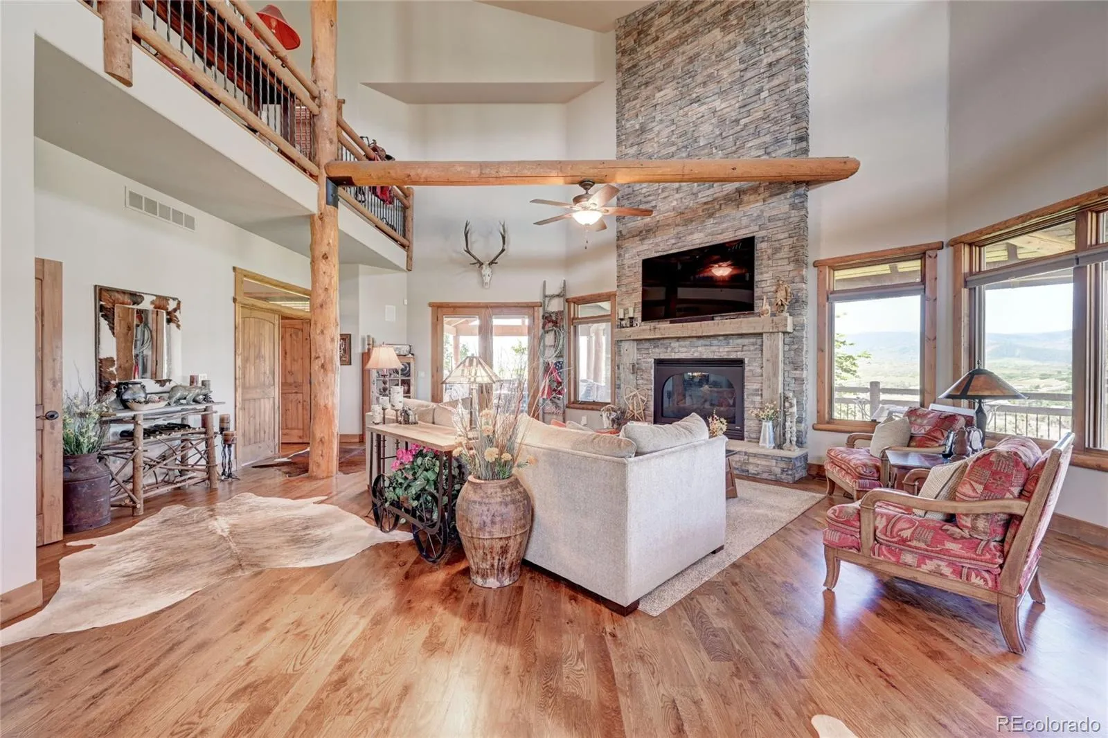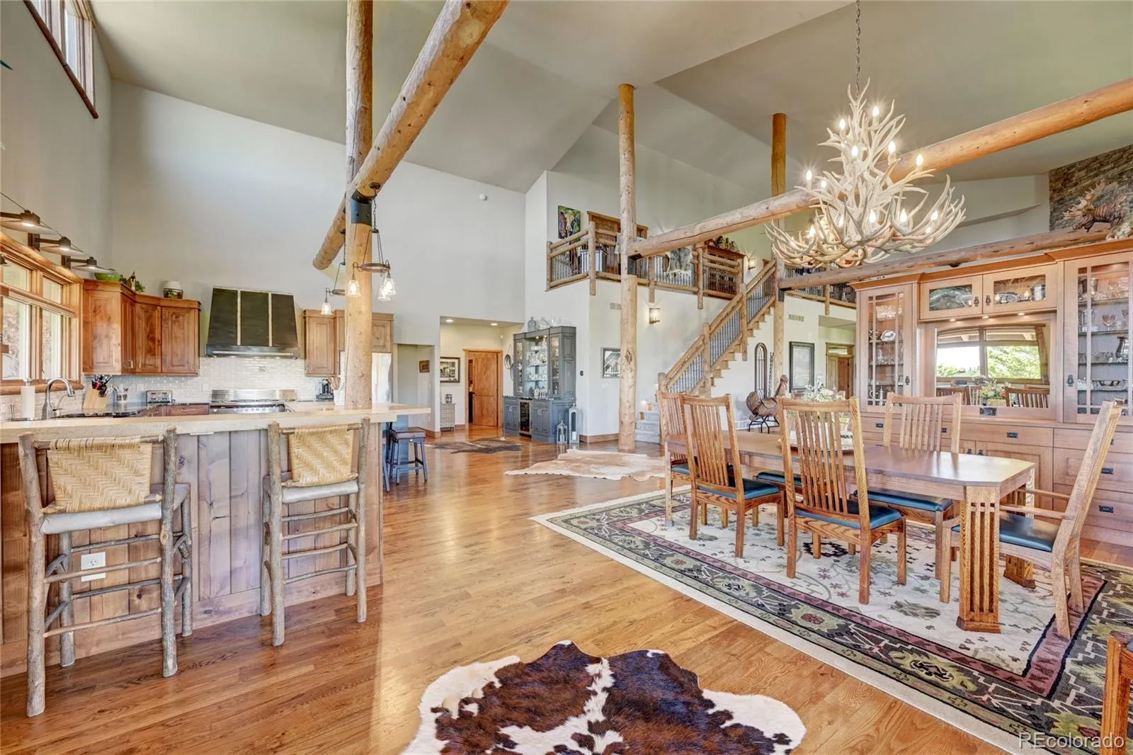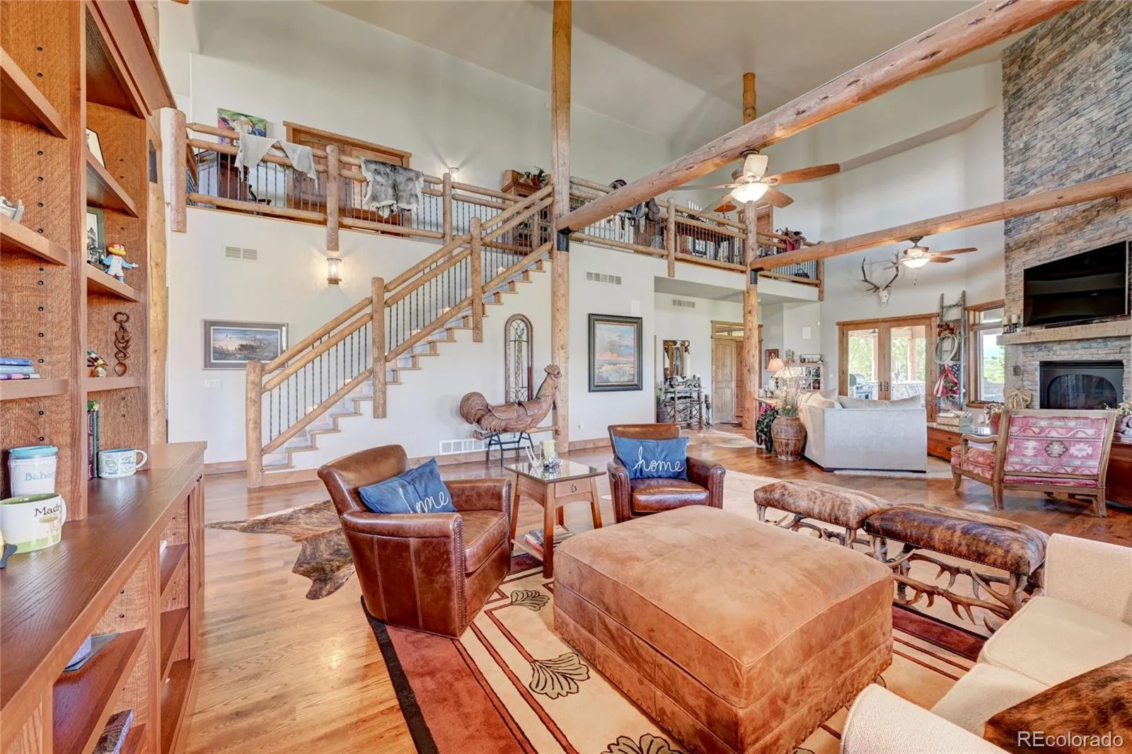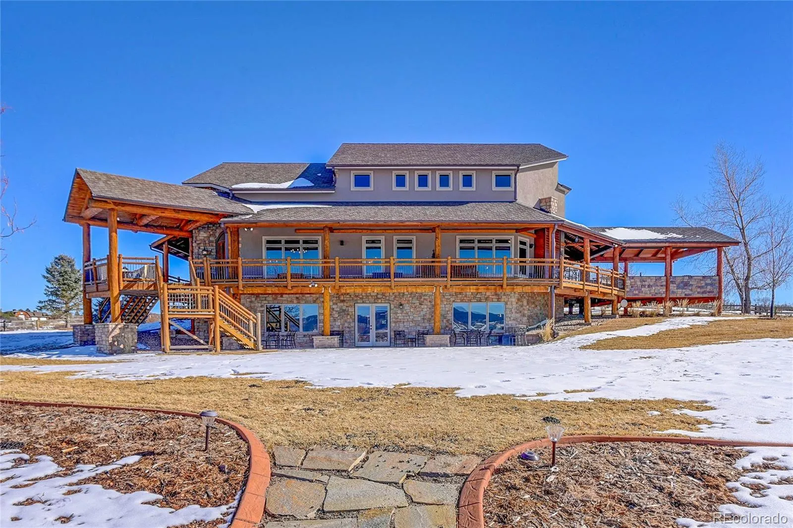 Magnificent and private 40 acre horse property with gorgeous rolling hills located in highly desirable Plum Creek Valley on Perry Park Rd (Hwy 105).Completely remodeled “Lodge” with an open expansive floor plan with exposed log beams and incredible views of the valley and foothills. The massive wrap around covered deck features an expanded new outdoor kitchen/dining on South side with grill, granite counters, fans, fire feature and wired for TV. Open and updated kitchen features new cabinetry, granite and butcher block counters, granite sink with hot water dispenser, Fisher & Paykel 6 burner cooktop with double oven, refrigerator drawers in island and custom dry bar with glass doors and wine fridge.Large main floor Primary bedroom has expansive sitting area, fireplace and private entrance to wrap around covered deck. Primary bathroom has been completely remodeled with heated floors, new cabinetry and tile. Spacious walk out level features a theater, 2nd full kitchen and can be used as in-law suite. Over $1 million in remodeling/upgrading with new paint, carpeting and lighting throughout. New gated full asphalt drive from road to house connecting to barn and single detached garage. The large new 40 x 50 Post and Beam barn has concrete floors, loft, bathroom, electricity and water with full length lean-to on South side. There is a large garden area with water and deer fence as well as a glass 12×20 greenhouse with electricity and water with automatic 6 vents. Power to shed and island area of driveway. Large 15×50 lean-to near garden. Over $50,000 in new landscaping. Large lean-to just East of the garden for equipment or hay storage