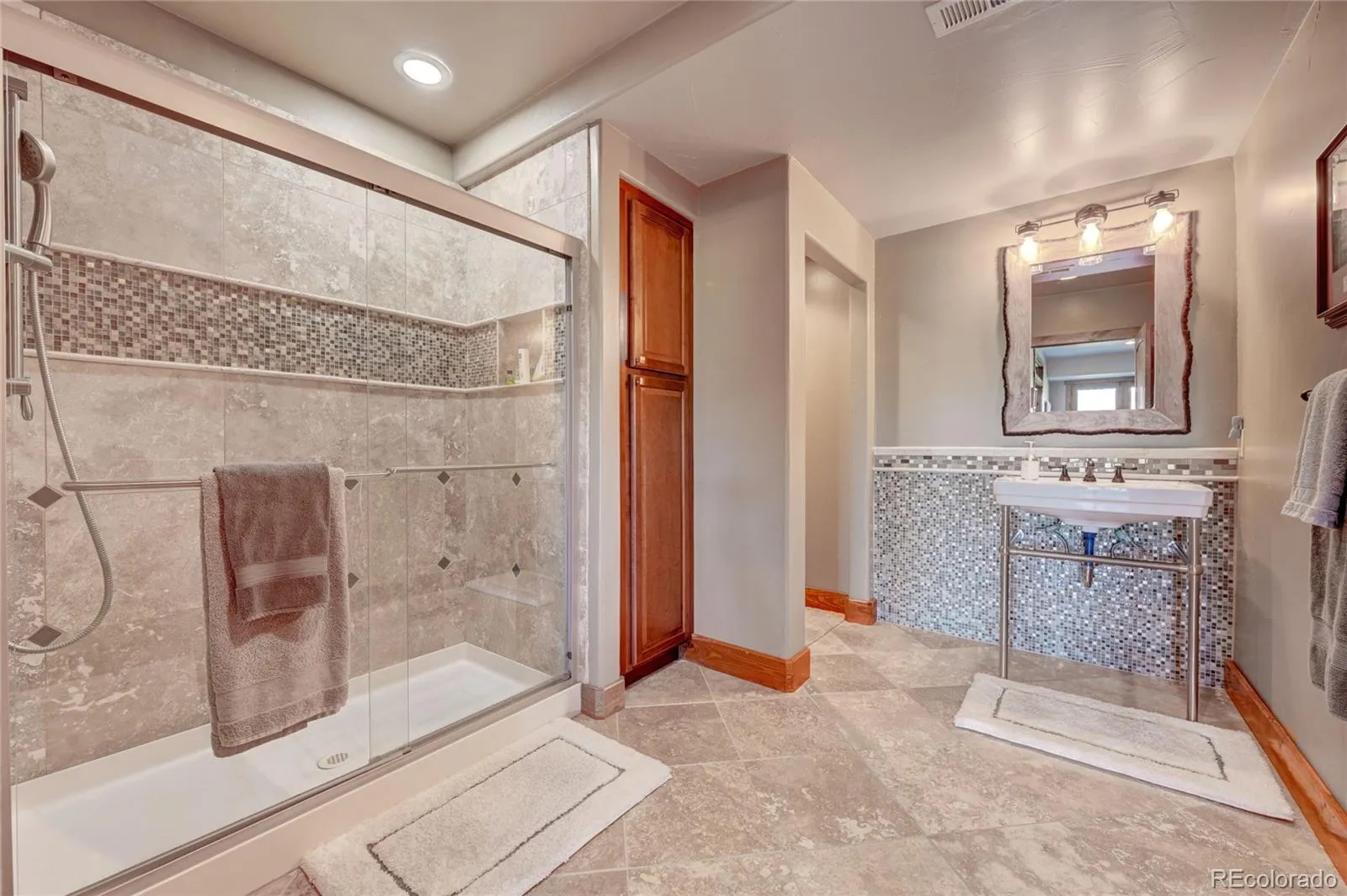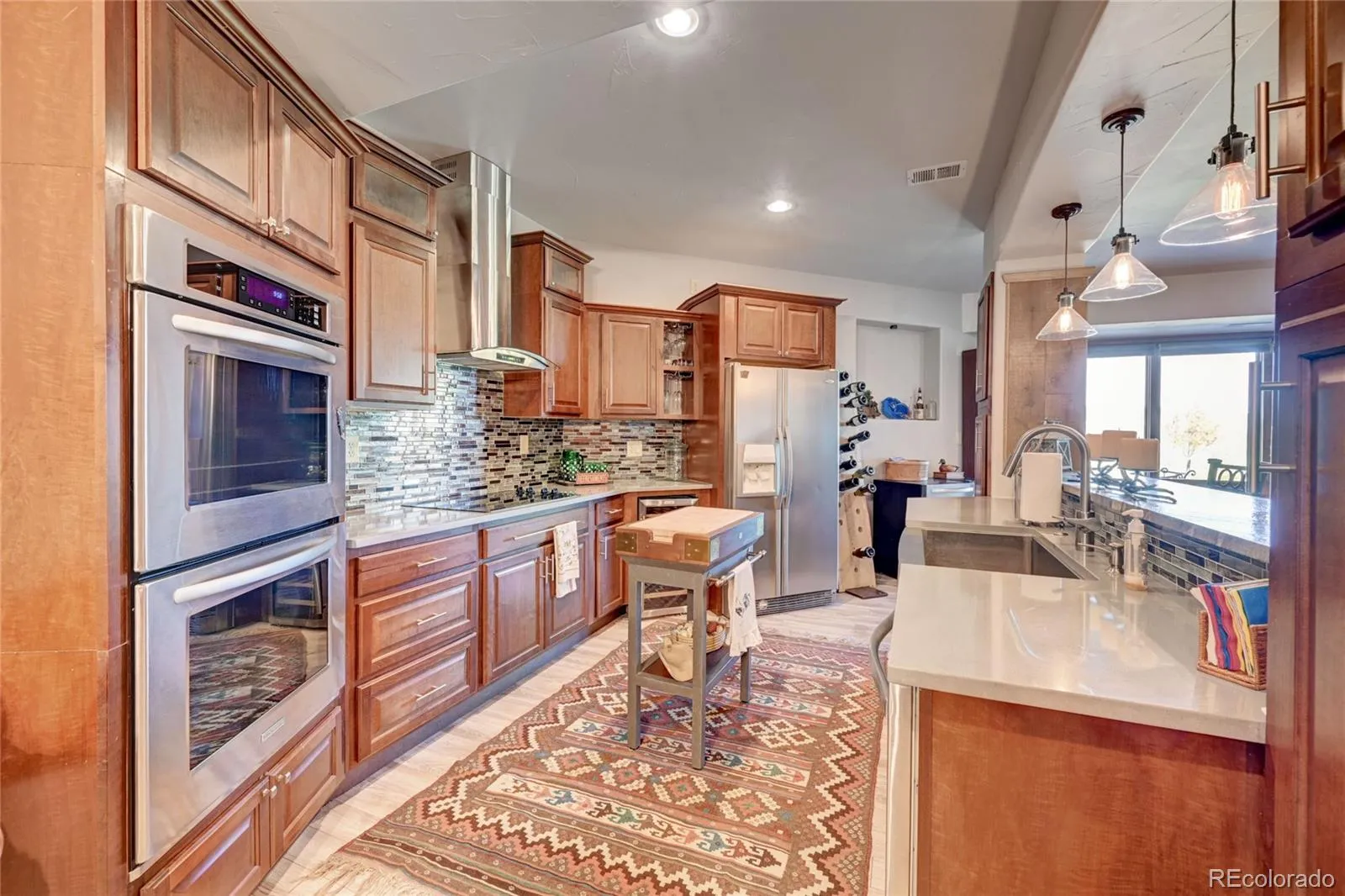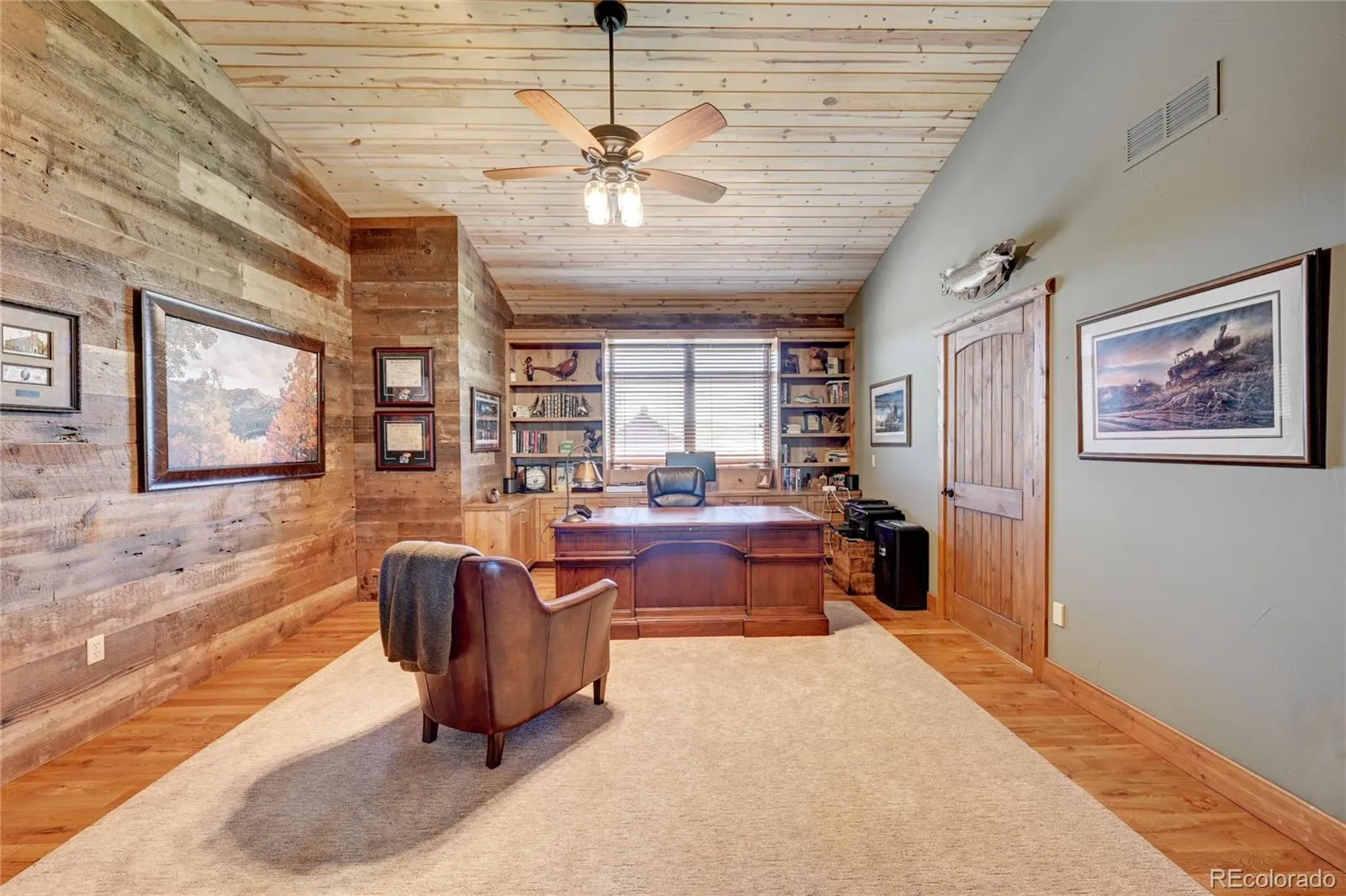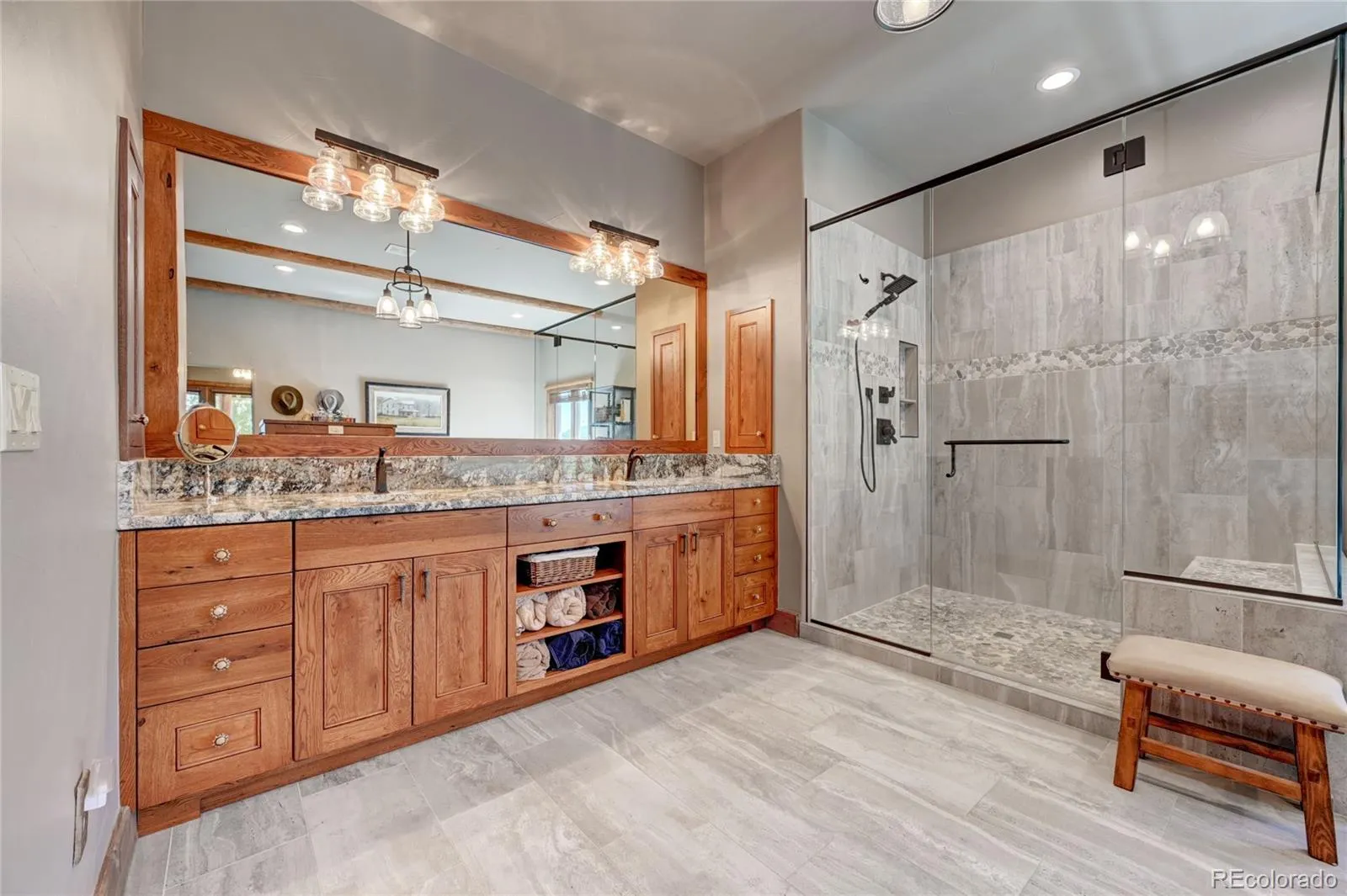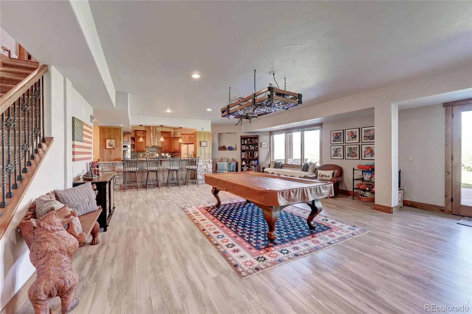 Magnificent and private 40 acre horse property with gorgeous rolling hills located in highly desirable Plum Creek Valley on Perry Park Rd (Hwy 105).Completely remodeled “Lodge” with an open expansive floor plan with exposed log beams and incredible views of the valley and foothills. The massive wrap around covered deck features an expanded new outdoor kitchen/dining on South side with grill, granite counters, fans, fire feature and wired for TV. Open and updated kitchen features new cabinetry, granite and butcher block counters, granite sink with hot water dispenser, Fisher & Paykel 6 burner cooktop with double oven, refrigerator drawers in island and custom dry bar with glass doors and wine fridge.Large main floor Primary bedroom has expansive sitting area, fireplace and private entrance to wrap around covered deck. Primary bathroom has been completely remodeled with heated floors, new cabinetry and tile. Spacious walk out level features a theater, 2nd full kitchen and can be used as in-law suite. Over $1 million in remodeling/upgrading with new paint, carpeting and lighting throughout. New gated full asphalt drive from road to house connecting to barn and single detached garage. The large new 40 x 50 Post and Beam barn has concrete floors, loft, bathroom, electricity and water with full length lean-to on South side. There is a large garden area with water and deer fence as well as a glass 12×20 greenhouse with electricity and water with automatic 6 vents. Power to shed and island area of driveway. Large 15×50 lean-to near garden. Over $50,000 in new landscaping. Large lean-to just East of the garden for equipment or hay storage
