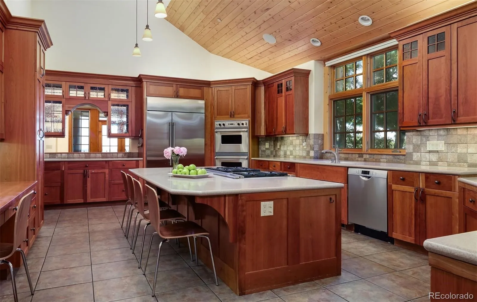 Outstanding custom-built contemporary stone estate built by a builder for his own residence. A highly desirable and an unbeatable Boulder location, backing to open space on 1.25 acres with sweeping city, Flatiron and mountain vistas. You will be captivated by the immense curb appeal the moment you arrive. Featuring over 9400 of gracious living on 3 levels, 5 en-suite bedrooms and 10 baths, and an elevator with direct access to every floor including the heated 6 car garage. Fine architectural details, soaring 20′ ceilings, numerous terraces and patios, a main floor guest apartment, heated saltwater pool in an extraordinary setting and a spa conservatory room. Walk or bike to Pearl Street shops and restaurants and enjoy immediate access to Boulder’s best hiking right outside your front door. Impressive top floor with cherry floors, custom millwork, formal living room overlooking the city, dining room with Flatiron views, enormous Chef’s kitchen, cherry cabinetry, Viking and Bosch appliances, a casual family dining area that shares a floor to ceiling stone fireplace with the family room and there are multiple dining terraces. Primary suite with reading room, fireplace, library hall and 5-piece luxury bath complete with steam shower, jetted soaking tub and 2 walk-in closets. Many flexible and highly functional rooms are on the 2nd level, children’s play and media room, yoga room with steam shower, an art studio or sun room, an exercise room with full bath, 3 en-suite bedrooms and 2500 bottle wine cellar. Lower level features a Billiards and game room with wet bar, media room with wet bar, a home office, and a guest apartment designed to accommodate extended family. Heated driveway and roof snowmelt system, mature landscaping, large rock outcroppings & perennial garden borders, stone walls and flagstone patios and a cistern for irrigation. Private and surrounded by nature, a highly desirable Boulder lifestyle property providing all the amenities and convenience.