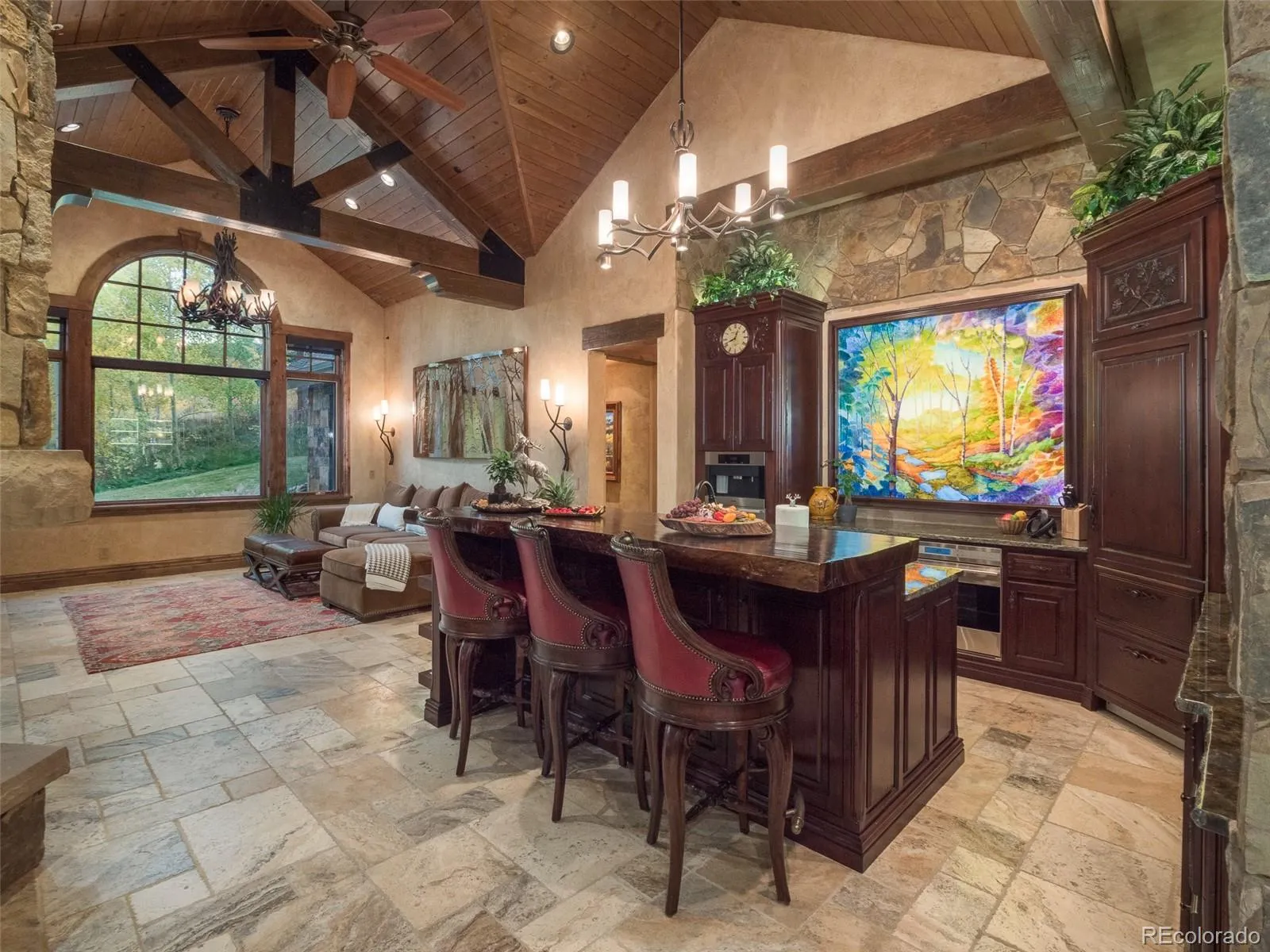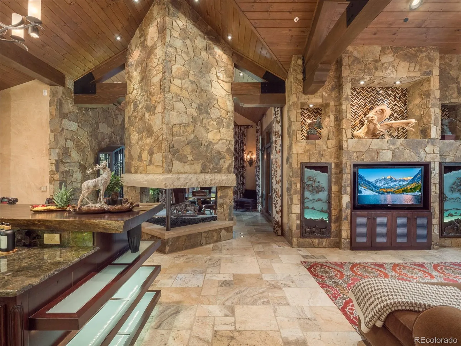 Award-winning mountain home, nestled on 1.54 acres off the 14th hole at the Raven Golf Course in Silverthorne, CO, unparalleled luxury and breathtaking views. With 9 bedrooms and 10 baths, accommodates 22 guests. Main floor living includes ensuite bathrooms to all but one bedroom. Most bathrooms have curbless shower entry, an oversized steam shower in the west wing, and deck access from several bedrooms. The home boasts 10 fireplaces, including two outdoors, five in ensuites, and a striking 10-foot stone mason fireplace in the great room. A 300-bottle wine room, multiple wine coolers in the kitchens, and an entertainment level with three TVs and a surround sound system. The design includes exposed structural beams, hand-hewn logs, and a steel and stone exterior finish. Its architectural design ensures that every primary room, offers expansive mountain views. Crafted with custom built-in cabinets, wide plank alder flooring on the main floor, heated stone and wood inlay flooring on the lower level, and floor-to-ceiling tile, clay, and facet paint features, this home is a masterpiece. Mechanical and HVAC systems include in-floor radiant heat with 19 zones, three high-efficiency boilers, an XL water heater with an on-demand reserve, and fire suppression system. Outdoor amenities are equally impressive, of landscaped grounds featuring a private stone courtyard, cozy rocking chairs around a steel fire pit, weeping wall, and stone-built hot tub area. Wrap-around decking provides views of the Williams Fork and Gore Mountain Ranges. The outdoor cooking area is equipped with a high-end grill and cooktop. The property includes a four-bay garage, epoxied floor and custom storage cabinets. It’s a smart home with a comprehensive audio-visual package, whole-home sound system and Lutron lighting. Fully furnished with high-quality pieces, move-in-ready home offers a luxurious retreat in one of Colorado’s most sought-after mountain locations.