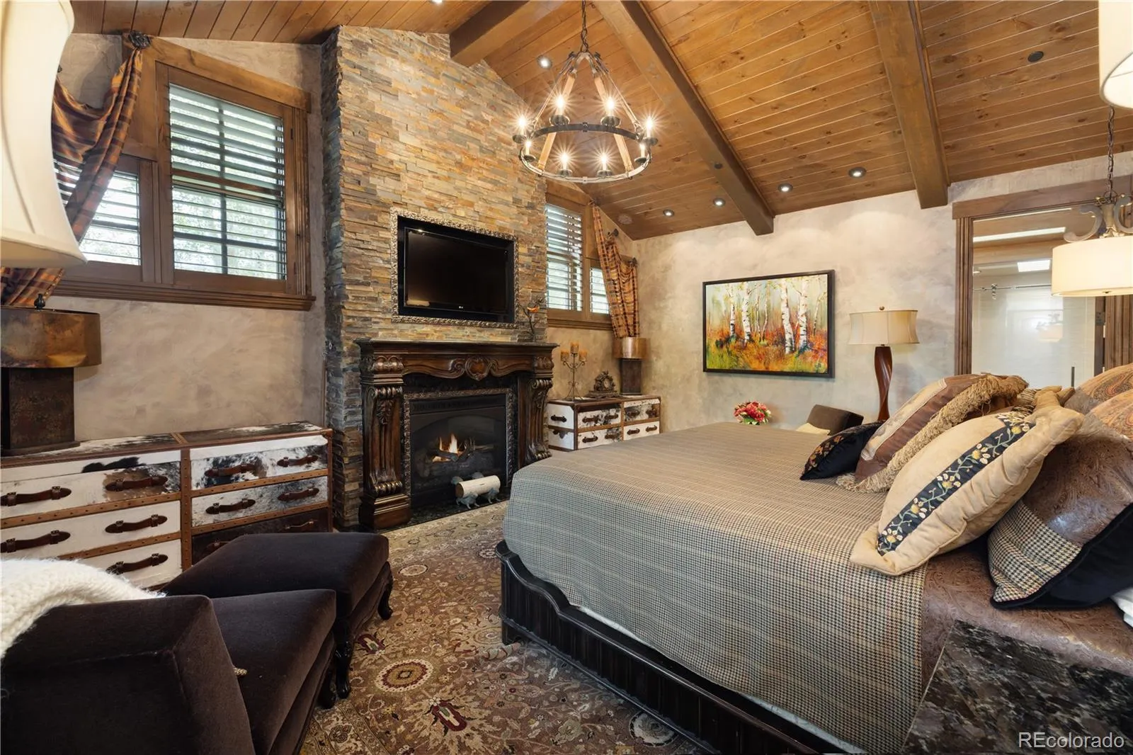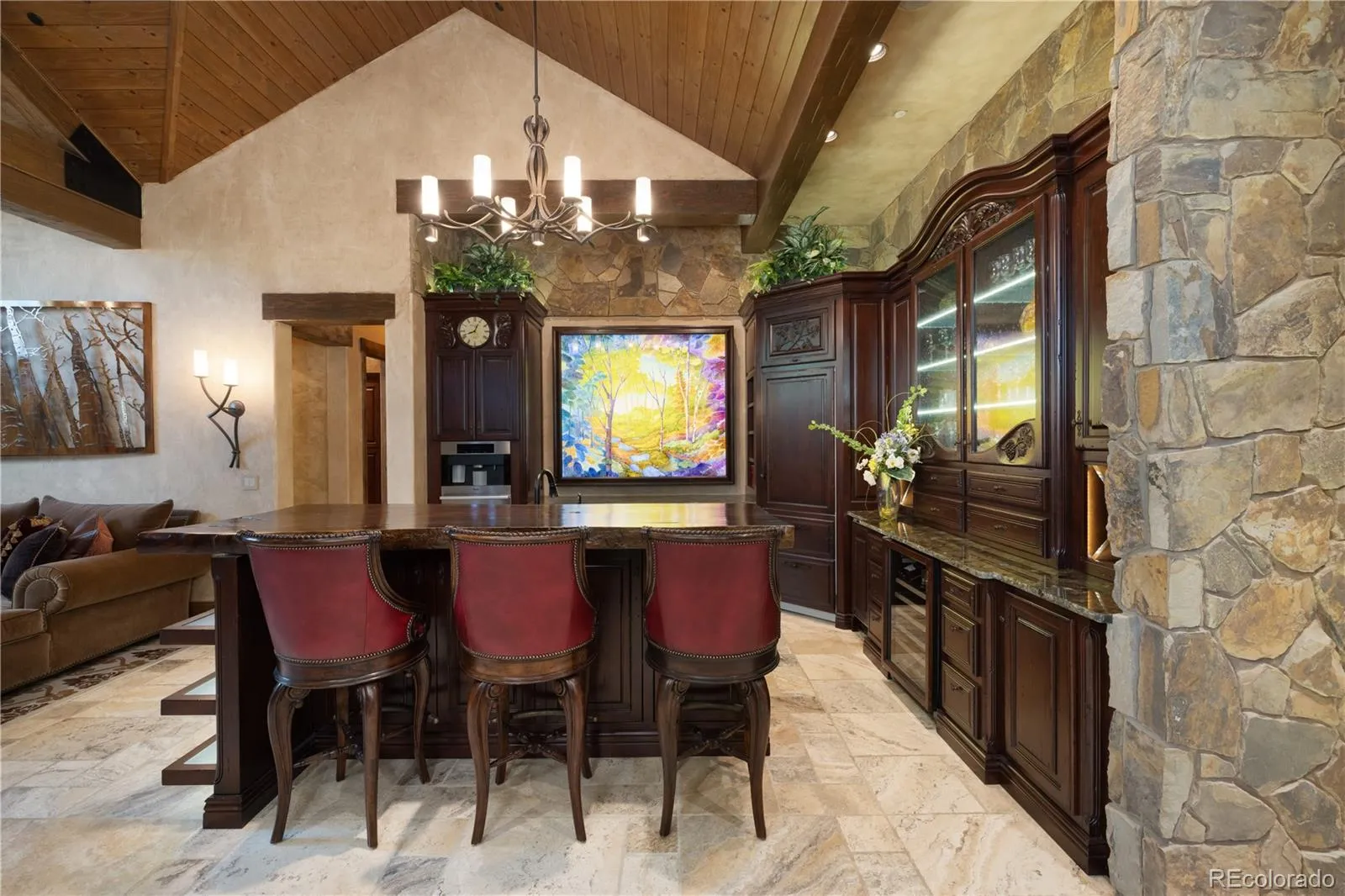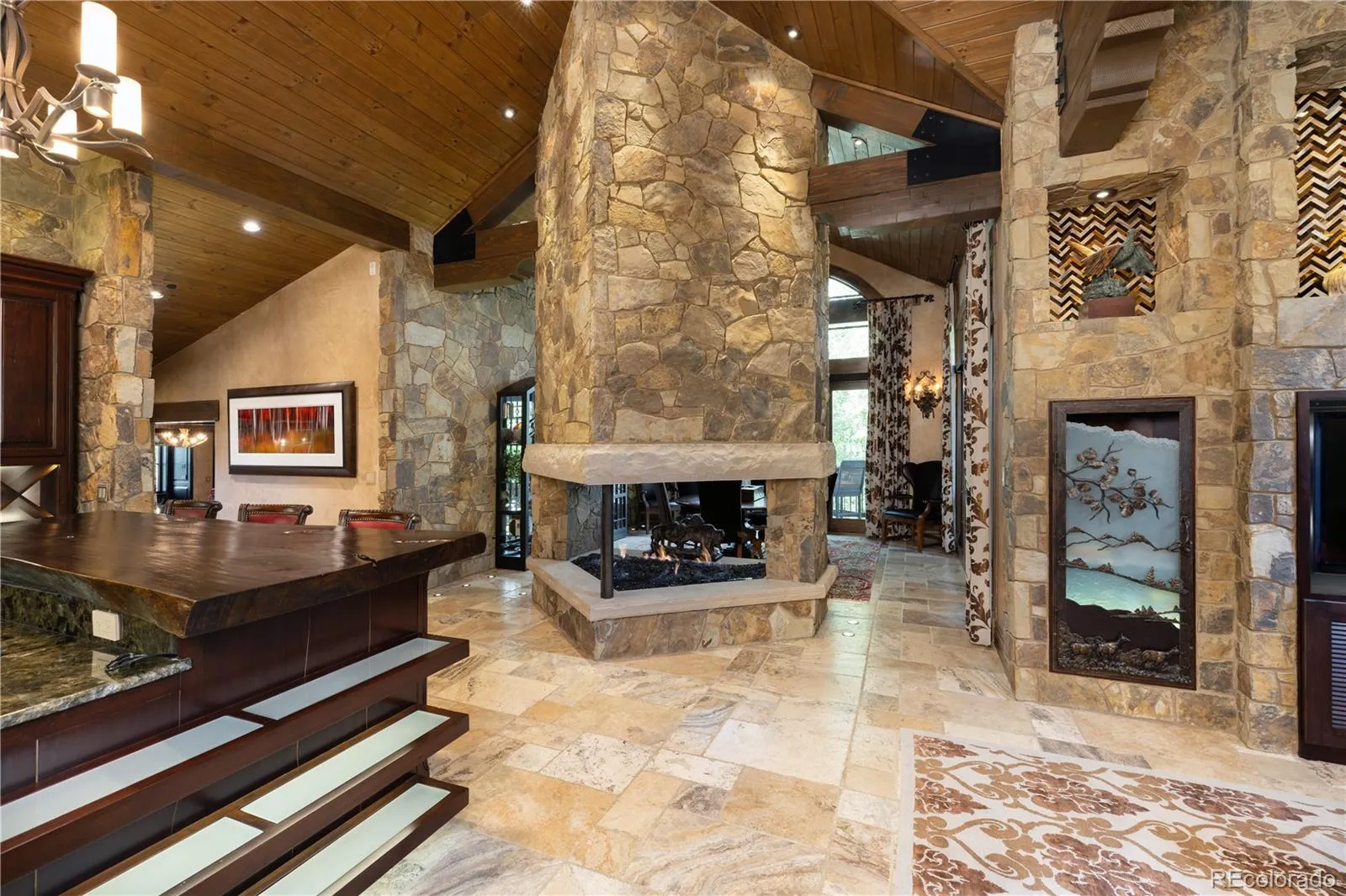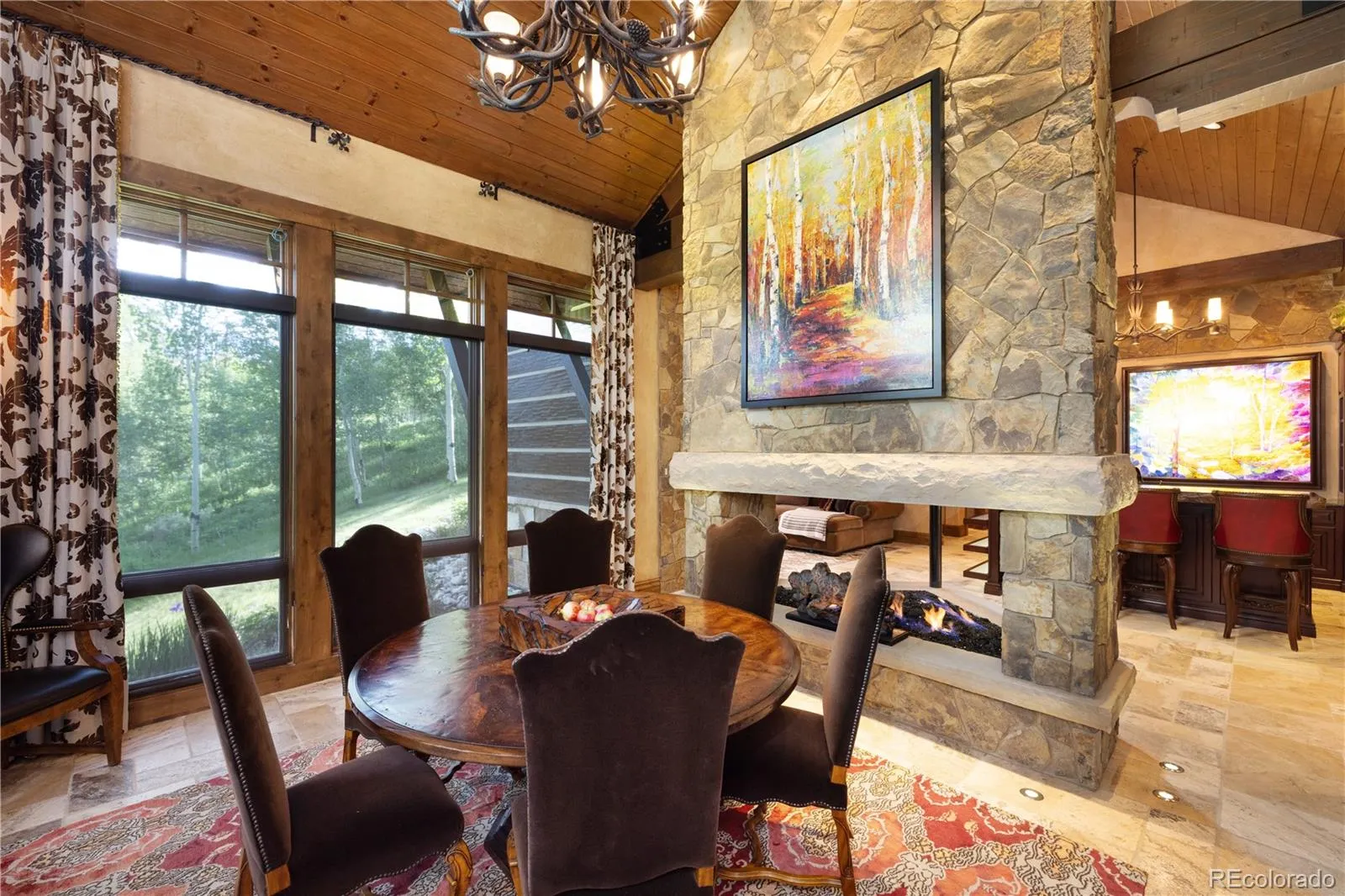 Award-winning mountain home, nestled on 1.54 acres off the 14th hole at the Raven Golf Course in Silverthorne, CO, unparalleled luxury and breathtaking views. With 9 bedrooms and 10 baths, accommodates 22 guests. Main floor living includes ensuite bathrooms to all but one bedroom. Most bathrooms have curbless shower entry, an oversized steam shower in the west wing, and deck access from several bedrooms. The home boasts 10 fireplaces, including two outdoors, five in ensuites, and a striking 10-foot stone mason fireplace in the great room. A 300-bottle wine room, multiple wine coolers in the kitchens, and an entertainment level with three TVs and a surround sound system. The design includes exposed structural beams, hand-hewn logs, and a steel and stone exterior finish. Its architectural design ensures that every primary room, offers expansive mountain views. Crafted with custom built-in cabinets, wide plank alder flooring on the main floor, heated stone and wood inlay flooring on the lower level, and floor-to-ceiling tile, clay, and facet paint features, this home is a masterpiece. Mechanical and HVAC systems include in-floor radiant heat with 19 zones, three high-efficiency boilers, an XL water heater with an on-demand reserve, and fire suppression system. Outdoor amenities are equally impressive, of landscaped grounds featuring a private stone courtyard, cozy rocking chairs around a steel fire pit, weeping wall, and stone-built hot tub area. Wrap-around decking provides views of the Williams Fork and Gore Mountain Ranges. The outdoor cooking area is equipped with a high-end grill and cooktop. The property includes a four-bay garage, epoxied floor and custom storage cabinets. It’s a smart home with a comprehensive audio-visual package, whole-home sound system and Lutron lighting. Fully furnished with high-quality pieces, move-in-ready home offers a luxurious retreat in one of Colorado’s most sought-after mountain locations.