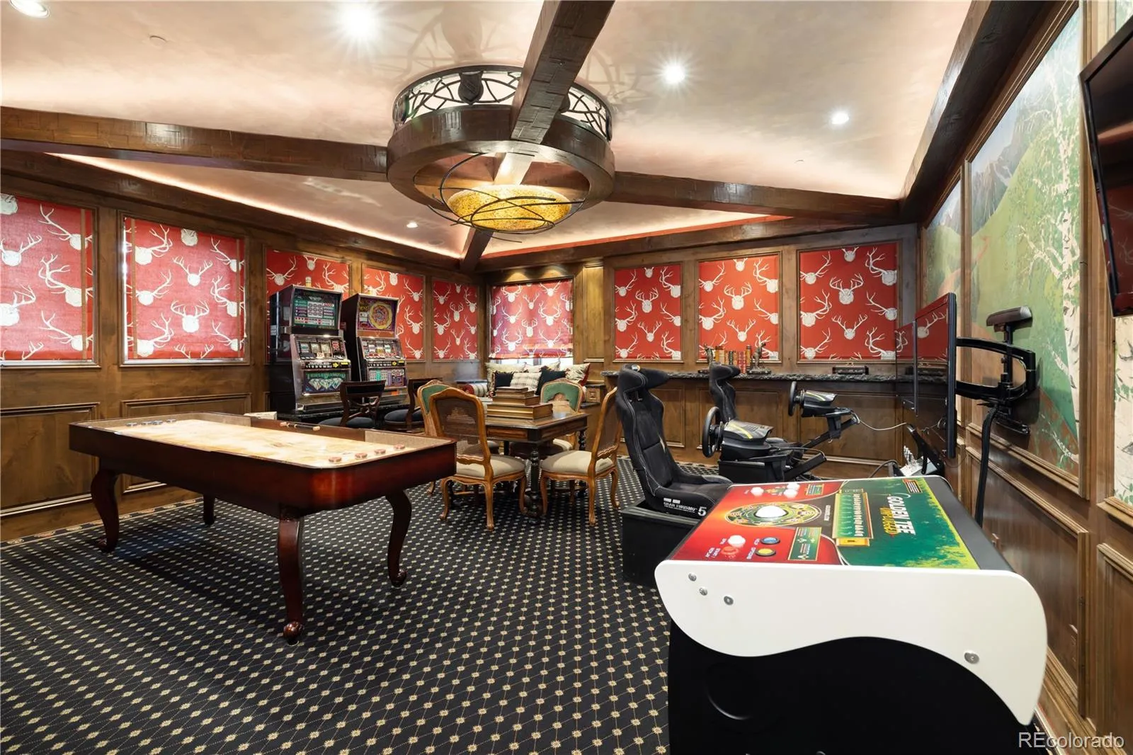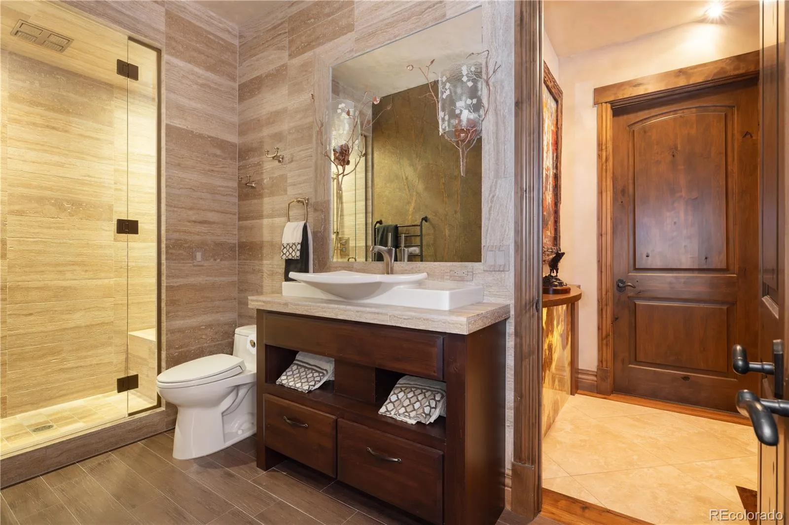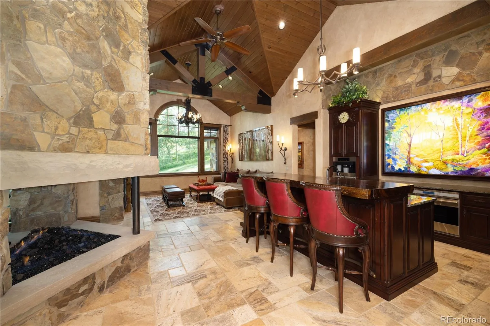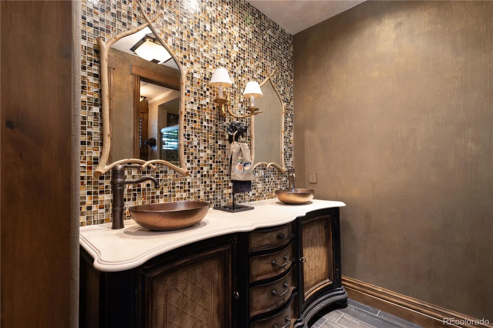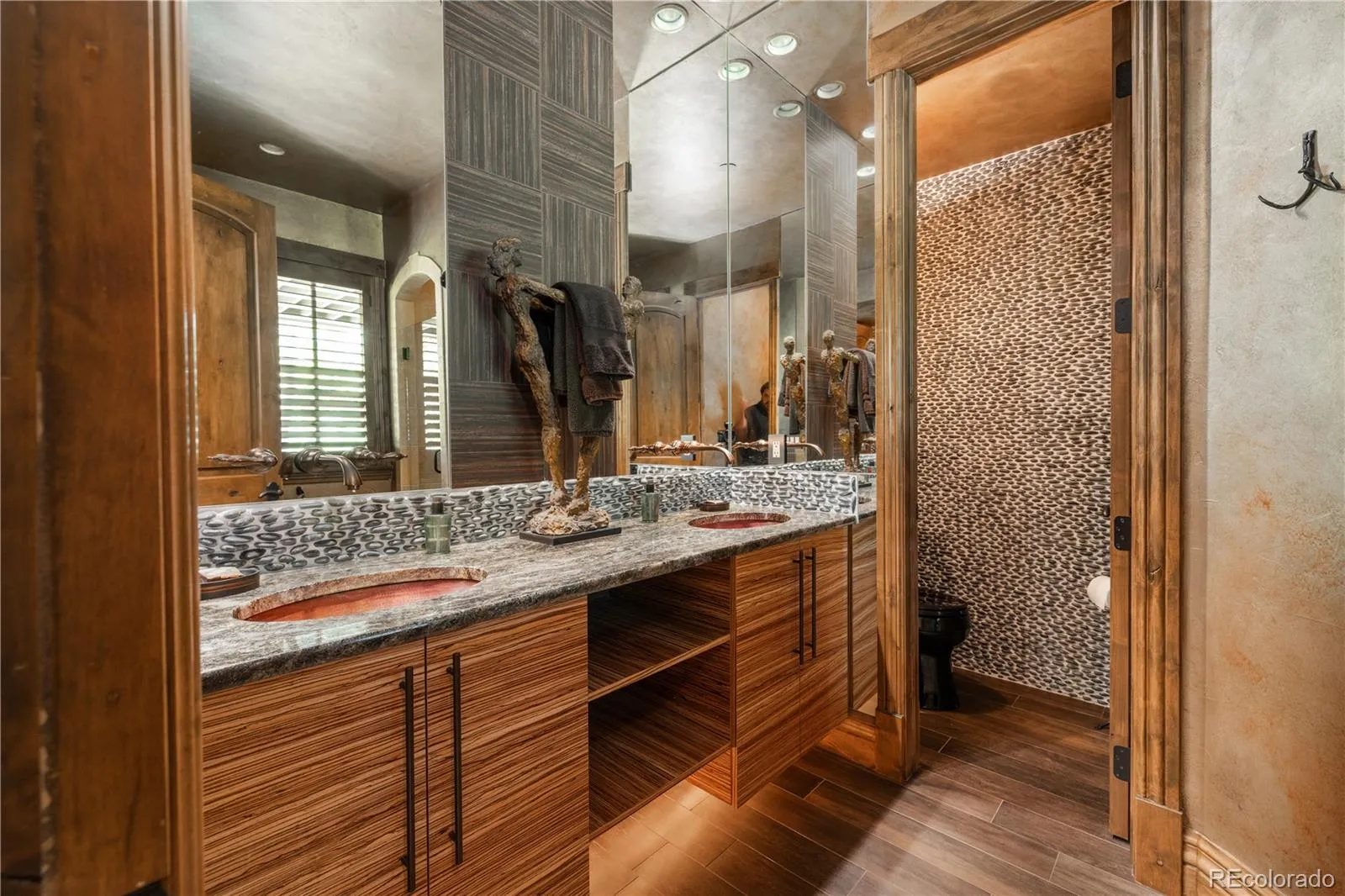 Award-winning mountain home, nestled on 1.54 acres off the 14th hole at the Raven Golf Course in Silverthorne, CO, unparalleled luxury and breathtaking views. With 9 bedrooms and 10 baths, accommodates 22 guests. Main floor living includes ensuite bathrooms to all but one bedroom. Most bathrooms have curbless shower entry, an oversized steam shower in the west wing, and deck access from several bedrooms. The home boasts 10 fireplaces, including two outdoors, five in ensuites, and a striking 10-foot stone mason fireplace in the great room. A 300-bottle wine room, multiple wine coolers in the kitchens, and an entertainment level with three TVs and a surround sound system. The design includes exposed structural beams, hand-hewn logs, and a steel and stone exterior finish. Its architectural design ensures that every primary room, offers expansive mountain views. Crafted with custom built-in cabinets, wide plank alder flooring on the main floor, heated stone and wood inlay flooring on the lower level, and floor-to-ceiling tile, clay, and facet paint features, this home is a masterpiece. Mechanical and HVAC systems include in-floor radiant heat with 19 zones, three high-efficiency boilers, an XL water heater with an on-demand reserve, and fire suppression system. Outdoor amenities are equally impressive, of landscaped grounds featuring a private stone courtyard, cozy rocking chairs around a steel fire pit, weeping wall, and stone-built hot tub area. Wrap-around decking provides views of the Williams Fork and Gore Mountain Ranges. The outdoor cooking area is equipped with a high-end grill and cooktop. The property includes a four-bay garage, epoxied floor and custom storage cabinets. It’s a smart home with a comprehensive audio-visual package, whole-home sound system and Lutron lighting. Fully furnished with high-quality pieces, move-in-ready home offers a luxurious retreat in one of Colorado’s most sought-after mountain locations.