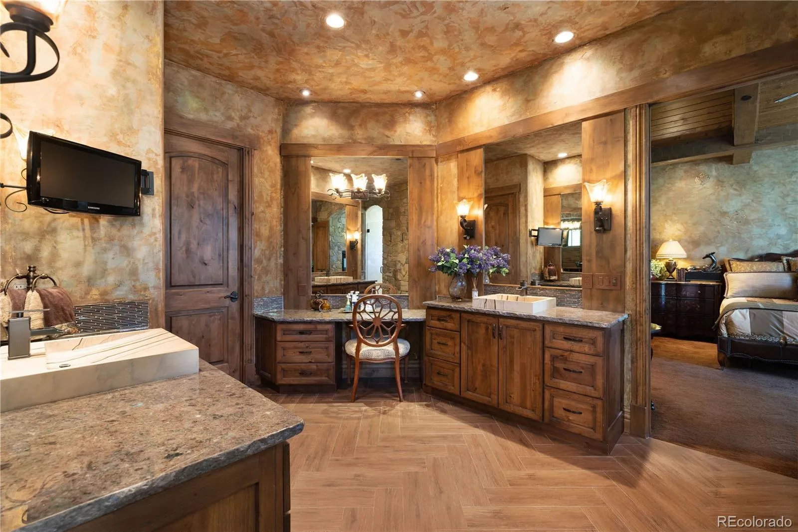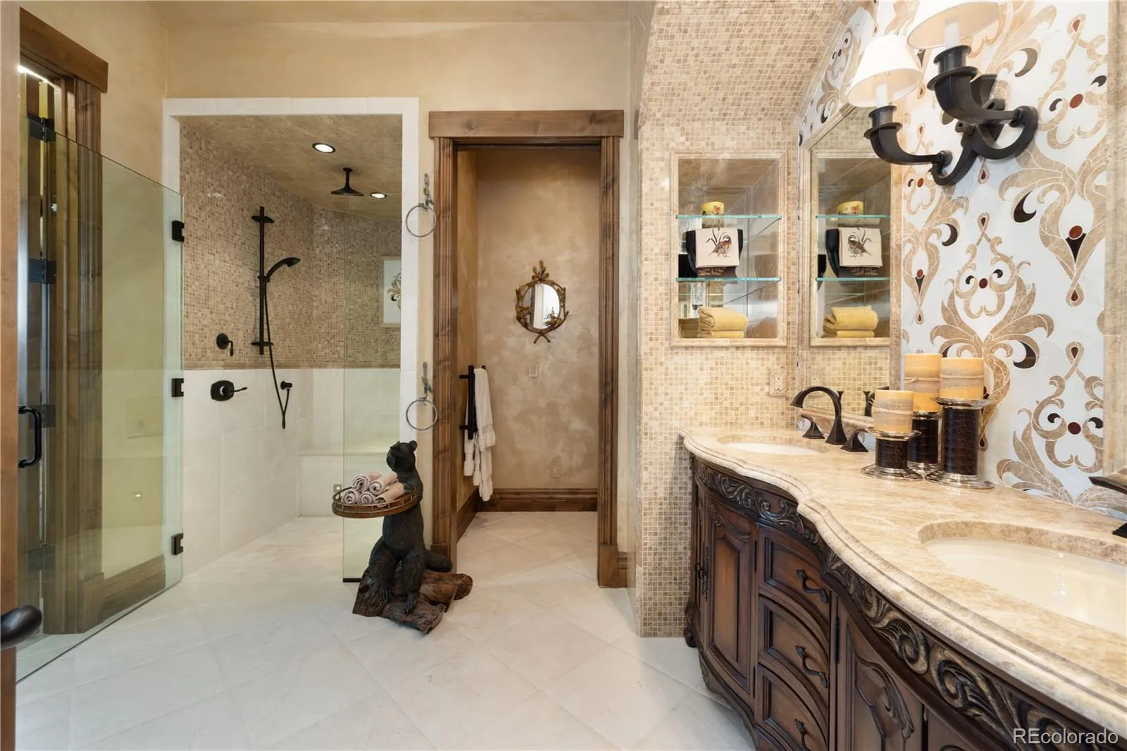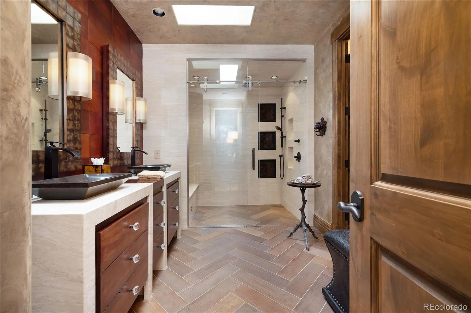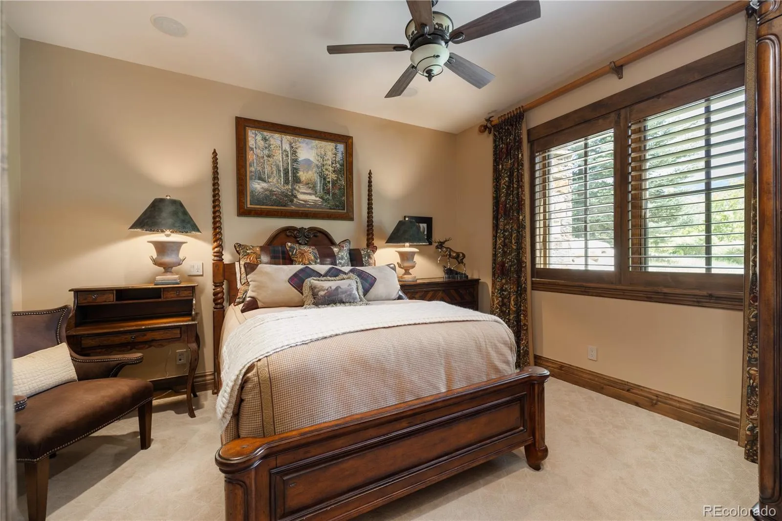 Award-winning mountain home, nestled on 1.54 acres off the 14th hole at the Raven Golf Course in Silverthorne, CO, unparalleled luxury and breathtaking views. With 9 bedrooms and 10 baths, accommodates 22 guests. Main floor living includes ensuite bathrooms to all but one bedroom. Most bathrooms have curbless shower entry, an oversized steam shower in the west wing, and deck access from several bedrooms. The home boasts 10 fireplaces, including two outdoors, five in ensuites, and a striking 10-foot stone mason fireplace in the great room. A 300-bottle wine room, multiple wine coolers in the kitchens, and an entertainment level with three TVs and a surround sound system. The design includes exposed structural beams, hand-hewn logs, and a steel and stone exterior finish. Its architectural design ensures that every primary room, offers expansive mountain views. Crafted with custom built-in cabinets, wide plank alder flooring on the main floor, heated stone and wood inlay flooring on the lower level, and floor-to-ceiling tile, clay, and facet paint features, this home is a masterpiece. Mechanical and HVAC systems include in-floor radiant heat with 19 zones, three high-efficiency boilers, an XL water heater with an on-demand reserve, and fire suppression system. Outdoor amenities are equally impressive, of landscaped grounds featuring a private stone courtyard, cozy rocking chairs around a steel fire pit, weeping wall, and stone-built hot tub area. Wrap-around decking provides views of the Williams Fork and Gore Mountain Ranges. The outdoor cooking area is equipped with a high-end grill and cooktop. The property includes a four-bay garage, epoxied floor and custom storage cabinets. It’s a smart home with a comprehensive audio-visual package, whole-home sound system and Lutron lighting. Fully furnished with high-quality pieces, move-in-ready home offers a luxurious retreat in one of Colorado’s most sought-after mountain locations.