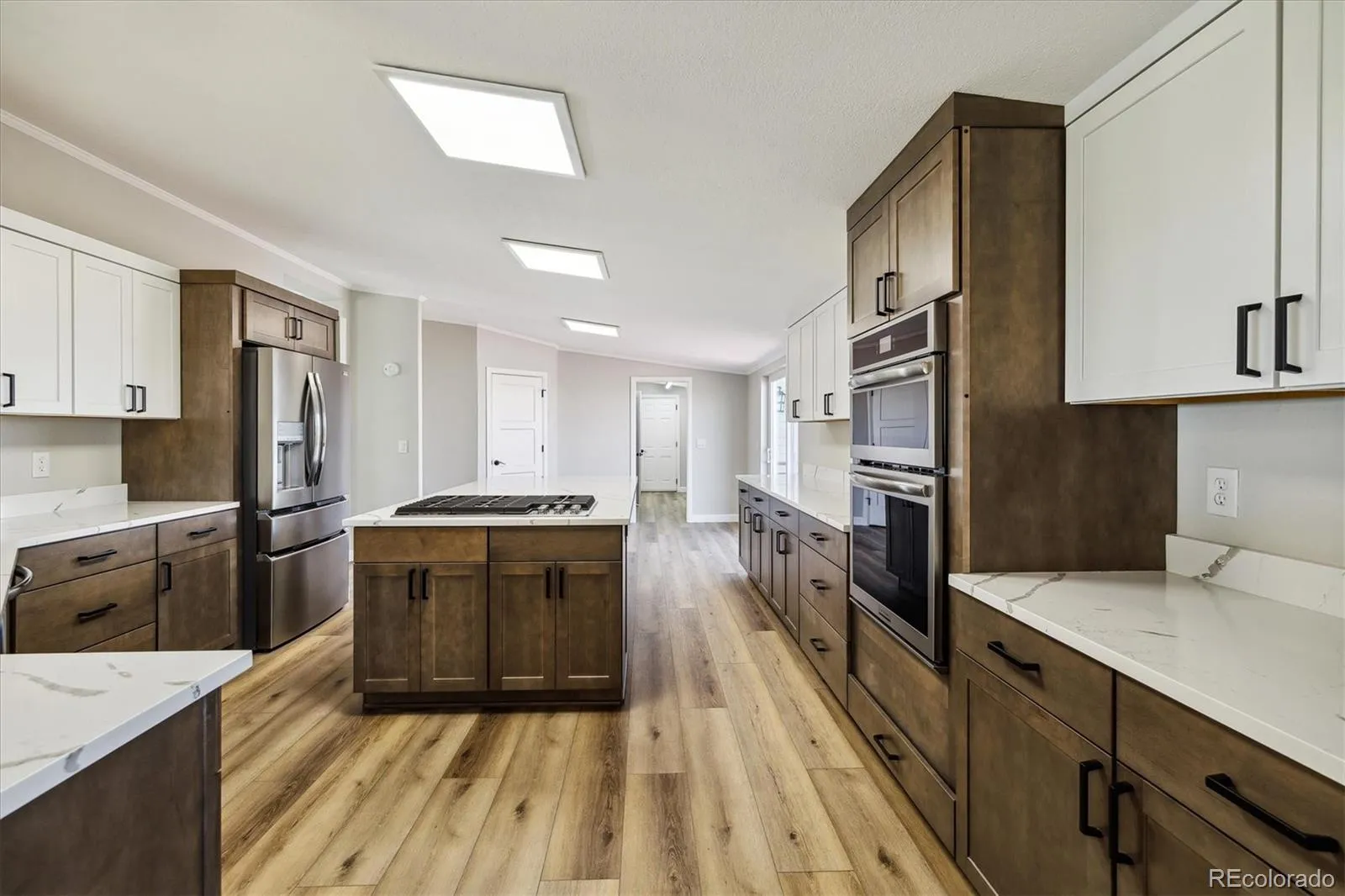 Inside, everything is brand new from floor to ceiling — just bring your furniture and move right in! The sellers have thoughtfully updated every detail of this 4-bedroom home, including all-new flooring, fresh paint, modern light fixtures, and new interior doors. The stunning kitchen is truly the heart of the home, featuring a large custom island, tons of storage, and brand new cabinetry — perfect for gathering and entertaining. You’ll love the lighted walk-in pantry with built-in shelving.