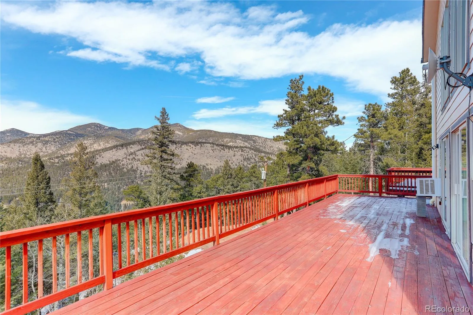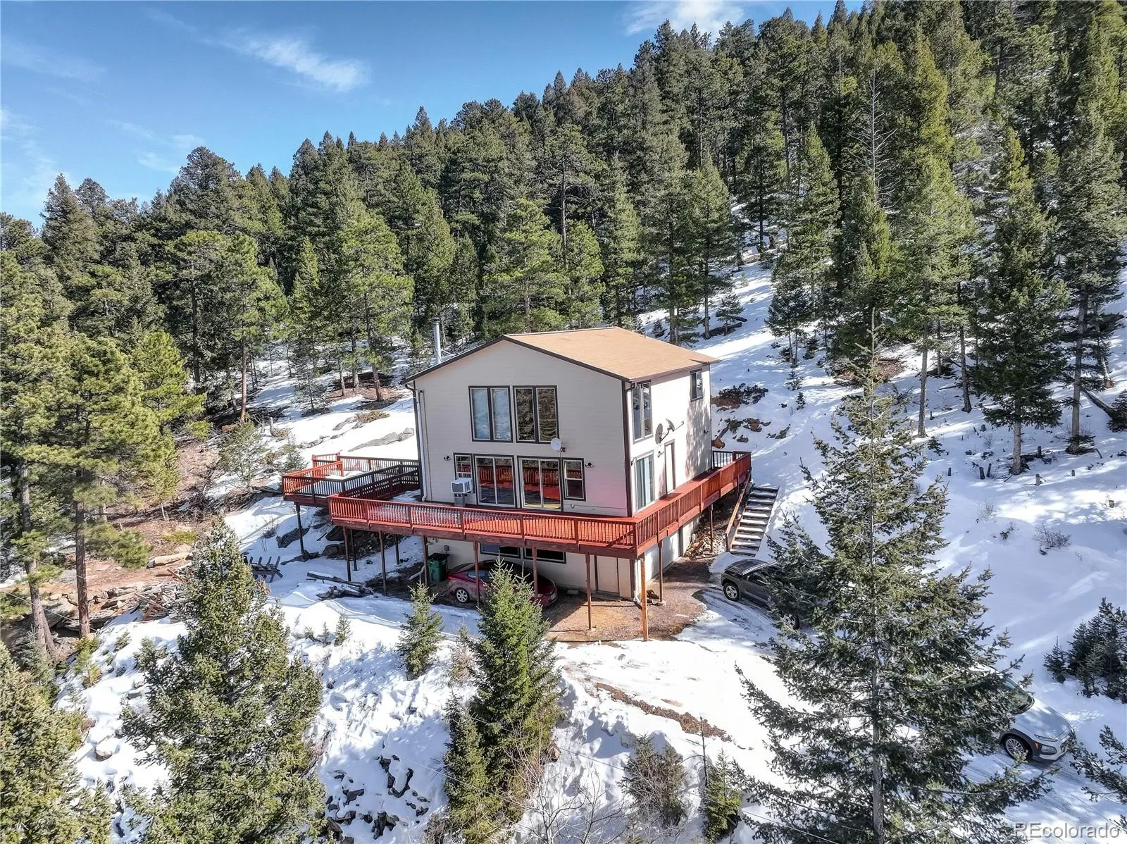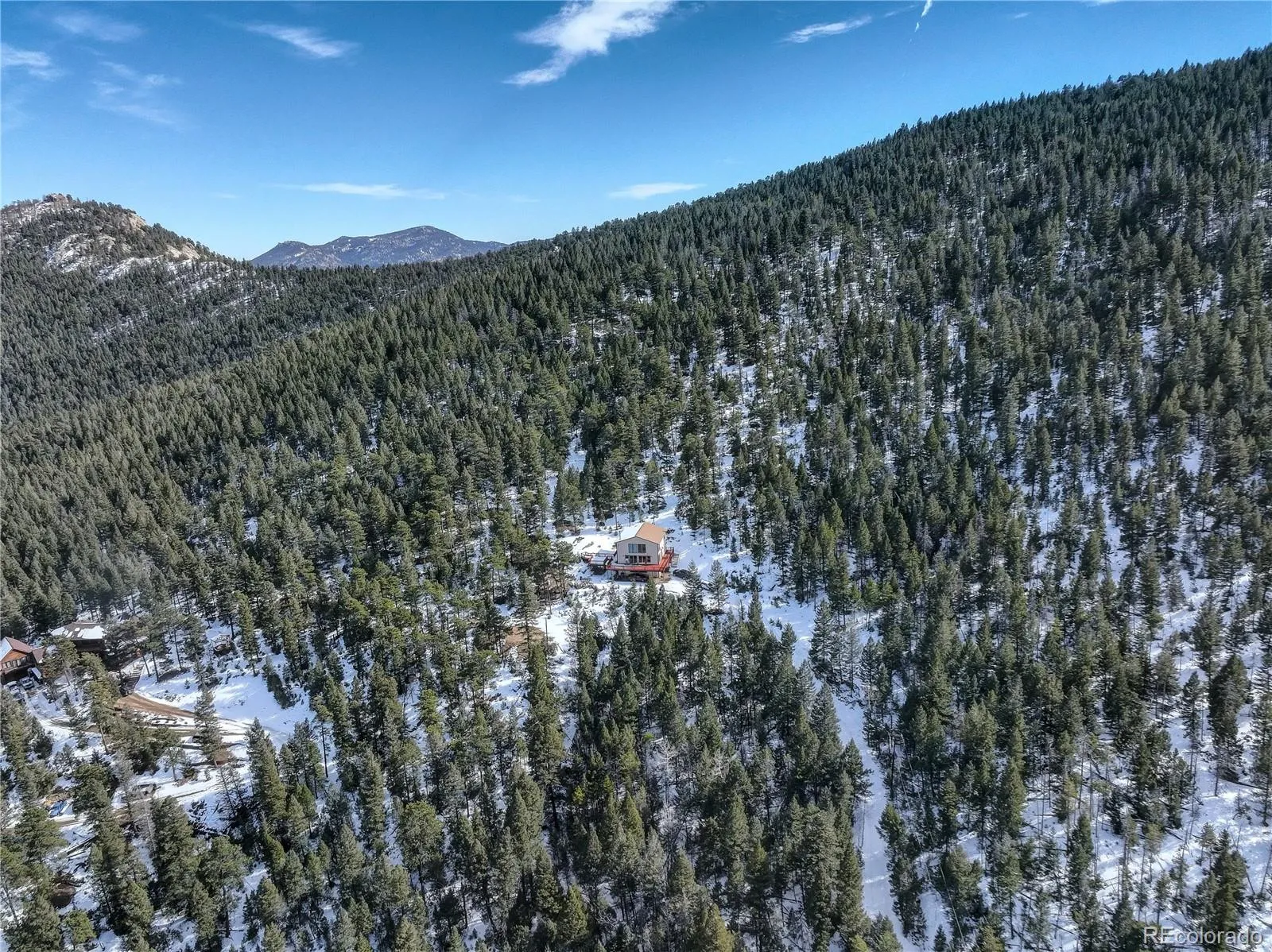 Discover this charming 2-story mountain hideaway perched high above Upper Bear Creek Road, offering spectacular views overlooking the Evergreen Valley. Sitting at an elevation of approximately 8,000 feet, this unique property includes both the main home and a second lot—together totaling over 7 acres—and backing to 700+ acres of open space and Denver Mountain Park.