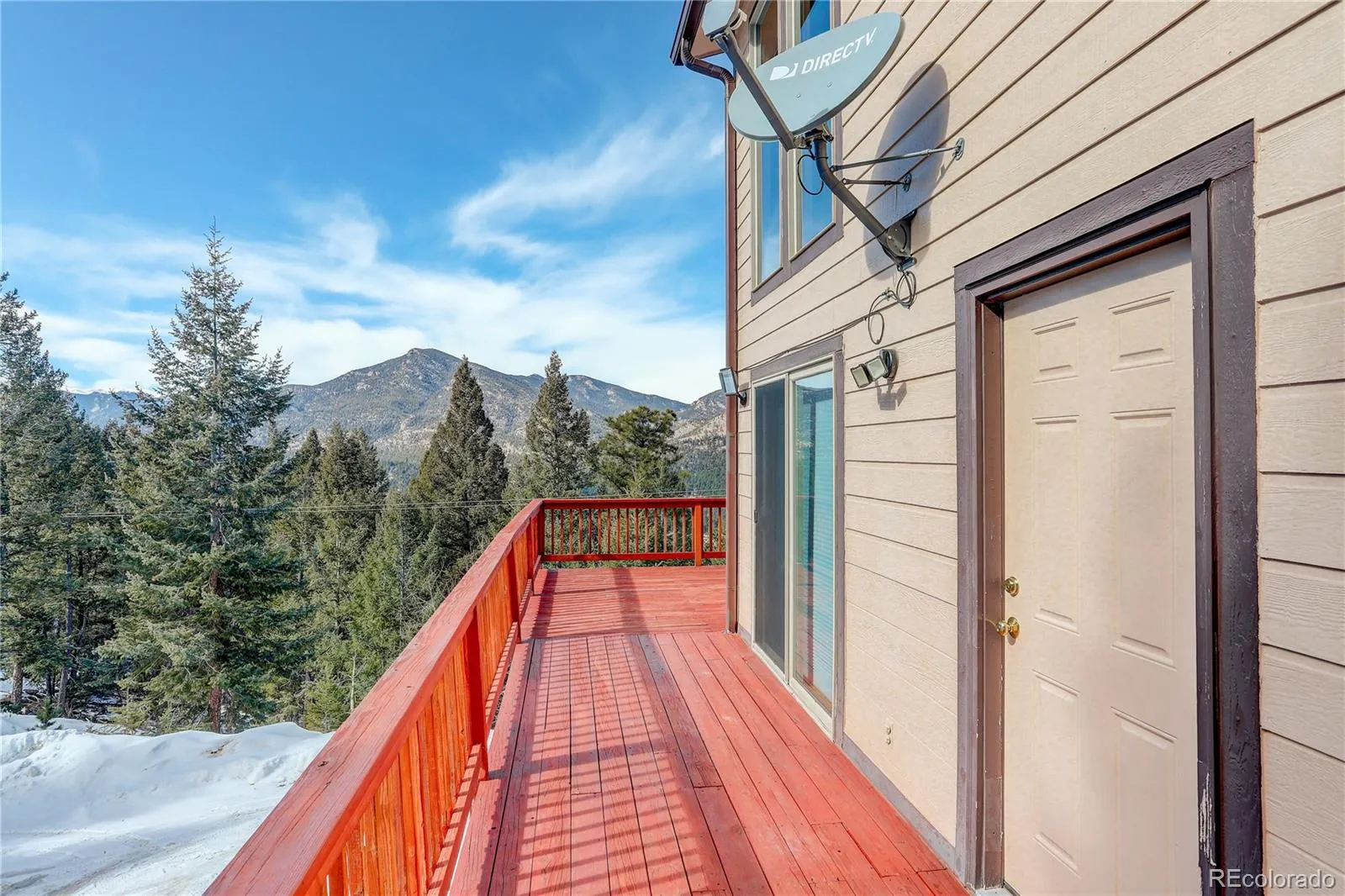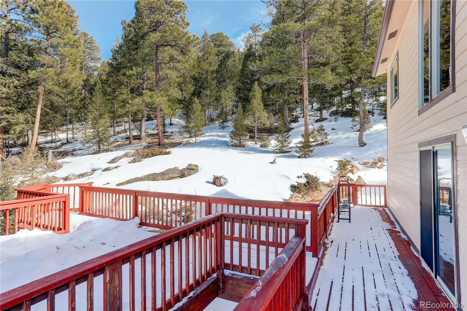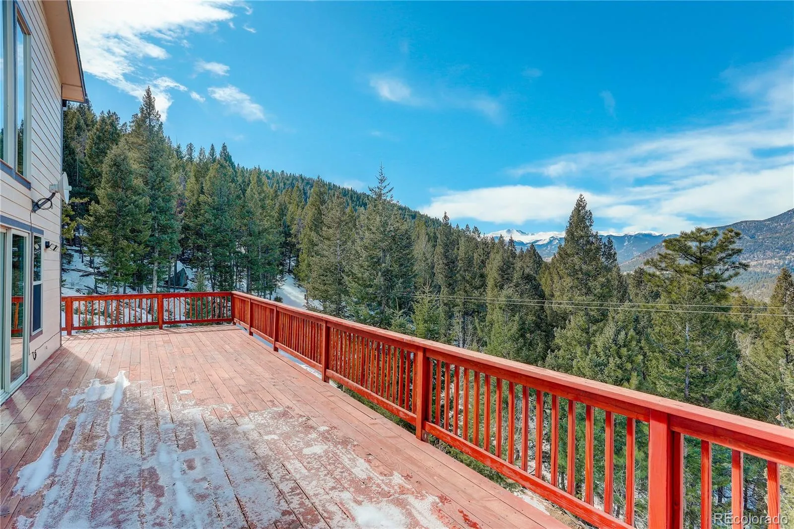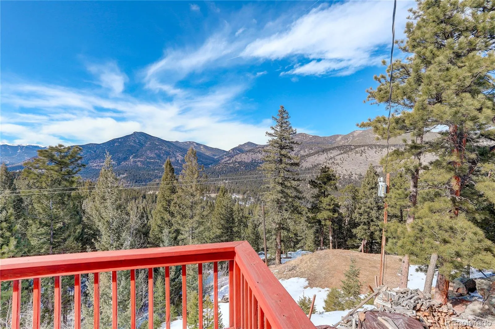 Discover this charming 2-story mountain hideaway perched high above Upper Bear Creek Road, offering spectacular views overlooking the Evergreen Valley. Sitting at an elevation of approximately 8,000 feet, this unique property includes both the main home and a second lot—together totaling over 7 acres—and backing to 700+ acres of open space and Denver Mountain Park.