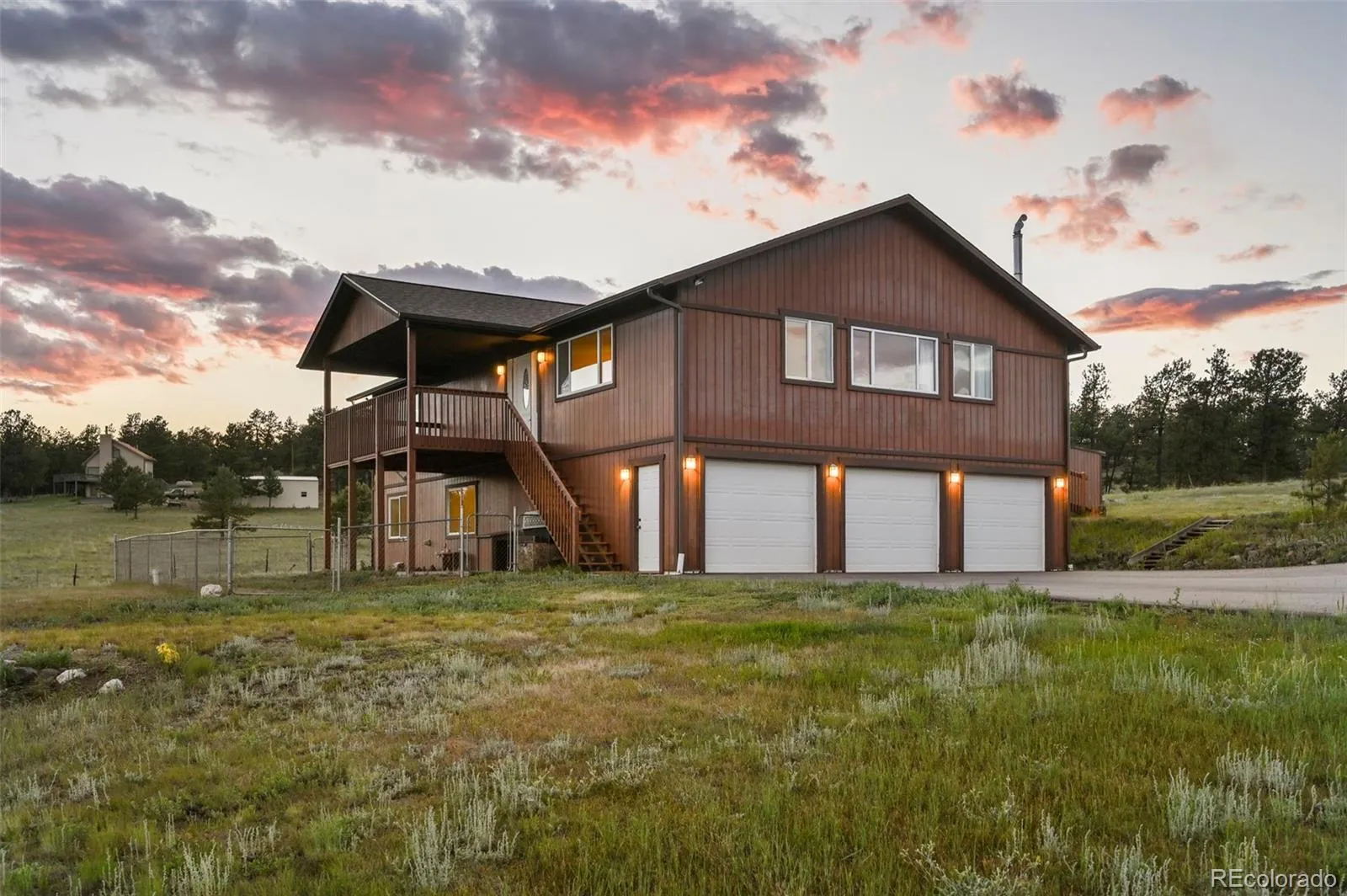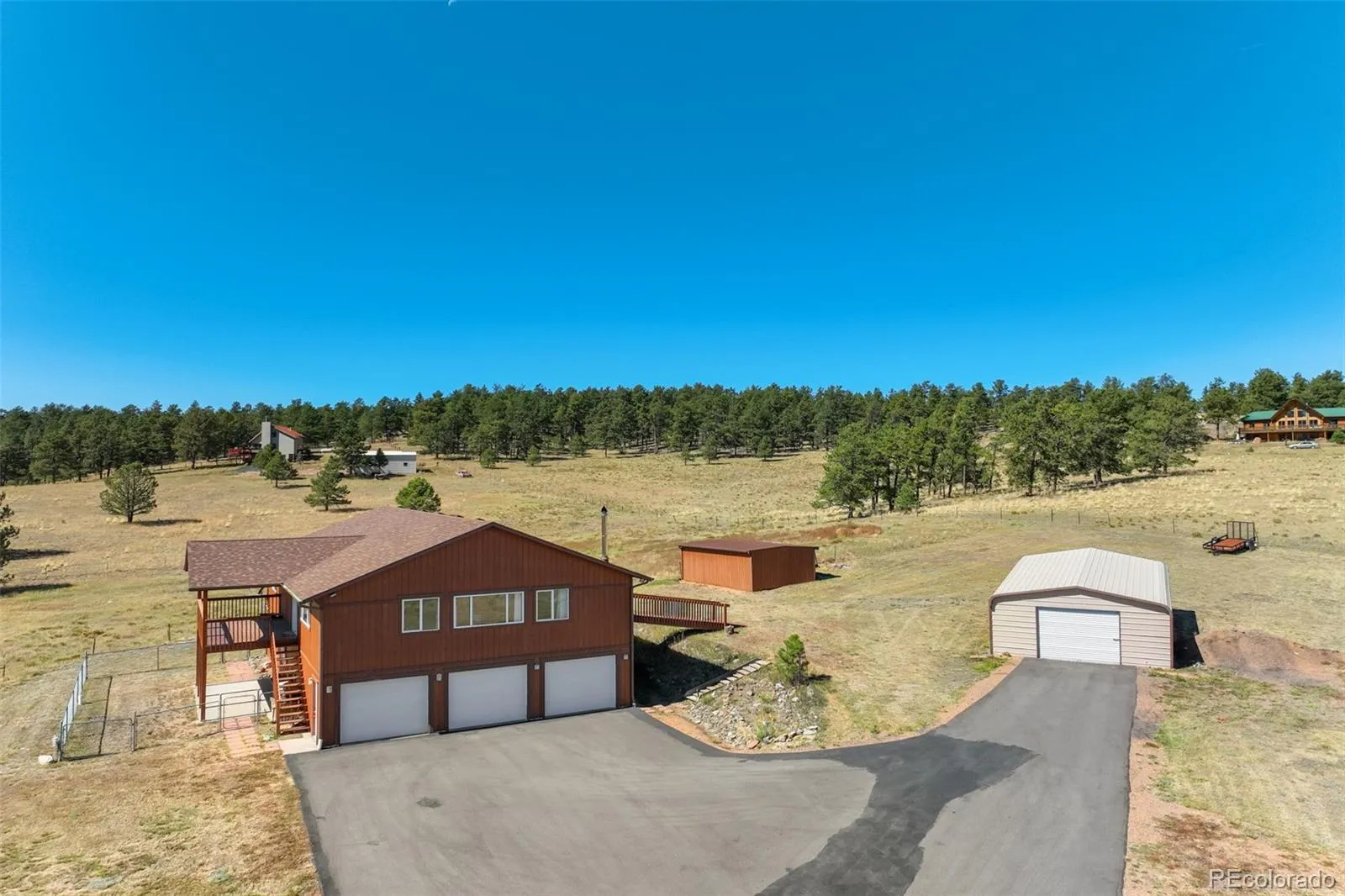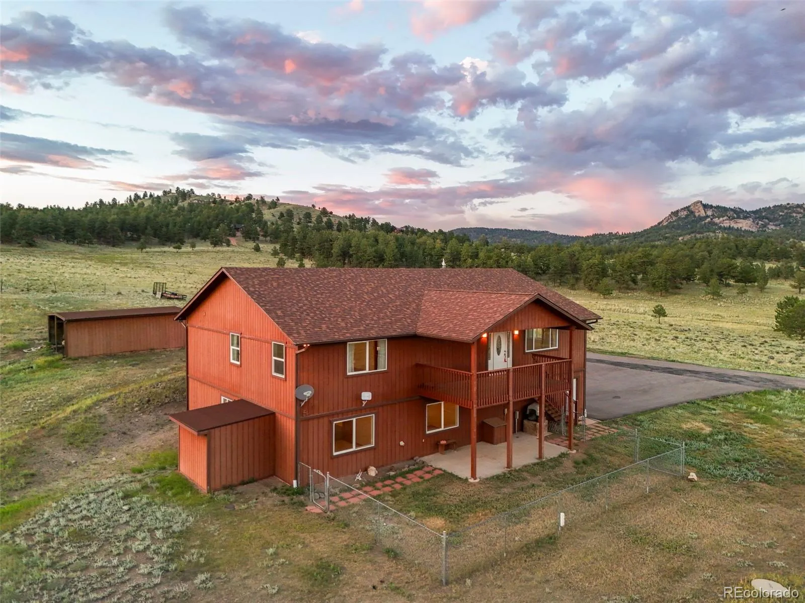 As you approach this picturesque mountain retreat, set on over 11 acres, you’ll immediately be struck by mountain views and dramatic rock formations. The large, covered front porch invites you to sit and take in the peaceful surroundings. Stepping inside, you’ll be greeted by a wall of windows in the living room, where natural light floods the space, perfectly framing the Pikes Peak view. The cozy warmth of a pellet stove creates an inviting atmosphere. As you move through the home, you’ll find the oversized master bedroom—a true retreat—with an ensuite bathroom featuring a freestanding shower and a luxurious soaking tub, where you can relax and recharge. The large kitchen, adorned with beautiful hardwood floors, provides ample space for both cooking and entertaining, with plenty of room to gather and create lasting memories. Downstairs, you’ll find a secondary living space. With it’s own separate access, full bathroom, and additional guest bedrooms, family and friends can stay with peace and privacy. Outside, you’ll discover ramp access to the upper level, making it easily accessible. The paved driveway, fabulous for snow removal, leads to a spacious 3-car attached garage, along with an additional 1-car detached garage, providing plenty of space for vehicles and storage. Two sheds offer even more room for tools, hobbies, or outdoor gear, and the fenced yard includes a dedicated dog run, perfect for your furry friends to roam freely. Classic cedar siding and a brand new roof make this home attractive and reliable. Coveted southern exposure and low utility bills! With sensible covenants, this property offers the freedom to truly make it your own. Just a short drive from Florissant Fossil Beds National Monument, it blends the peacefulness of mountain living with the convenience of nearby attractions. This isn’t just a home; it’s a lifestyle waiting to be embraced. Take a tour today and experience the mountain views and tranquility that could soon be yours!